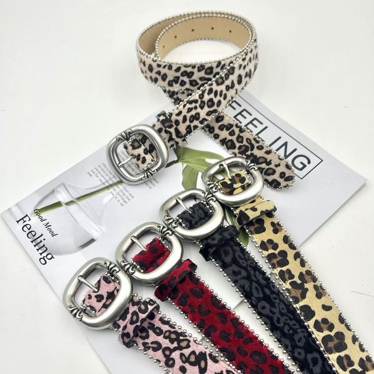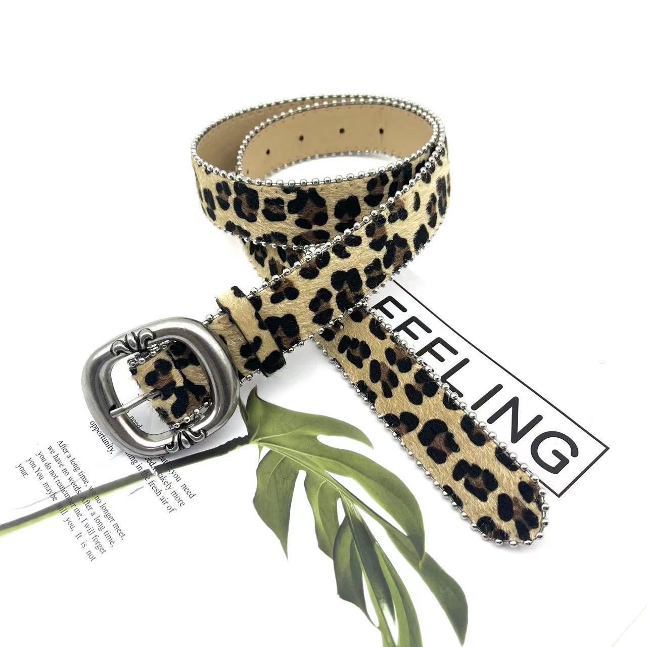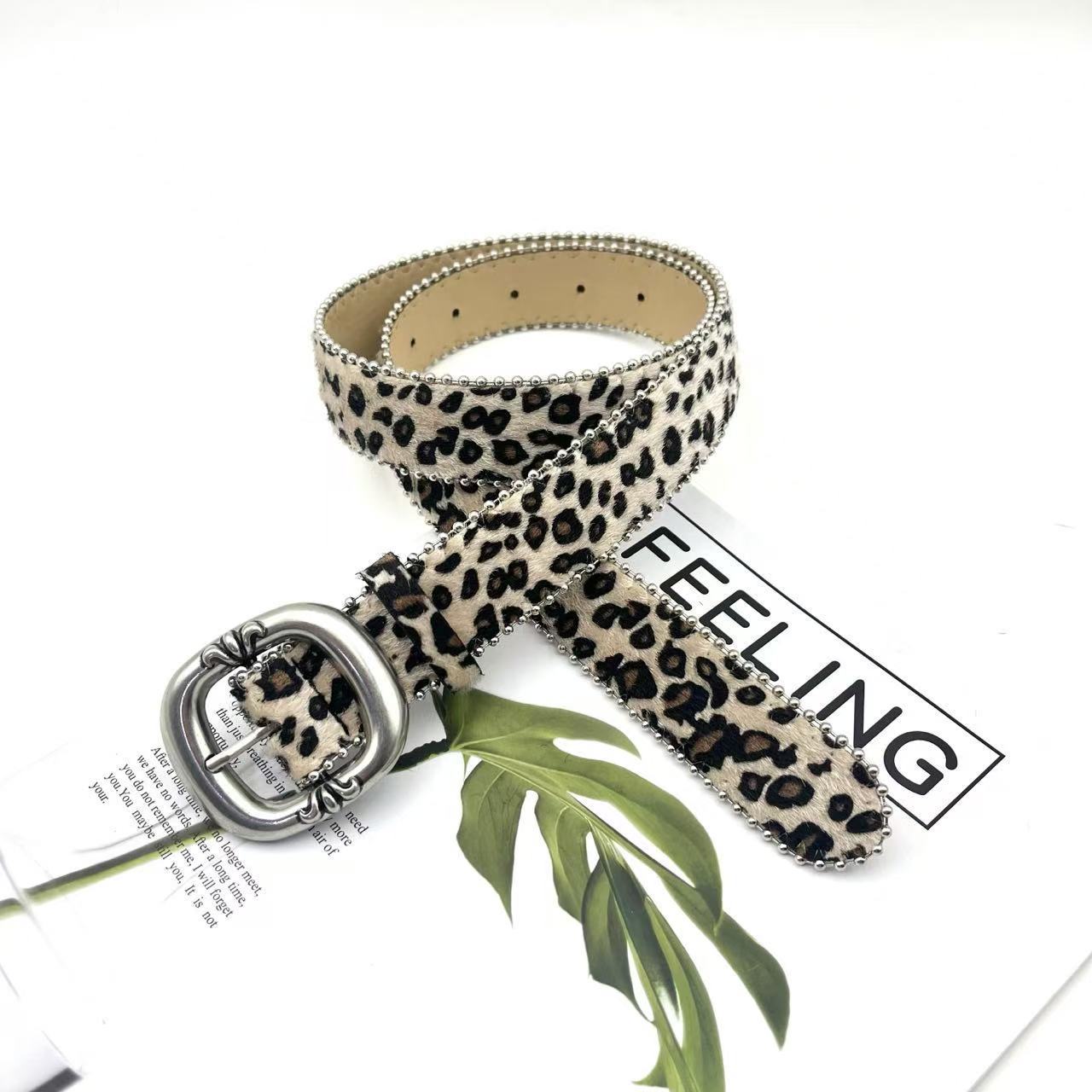 레오파드 프린트 말헤어 시리즈 벨트 고대 실버 라운드 버클 레오파드 프린트 벨트 여성용 y2k 청바지 스커트 액세서리 패션 올 매치스토어 가기