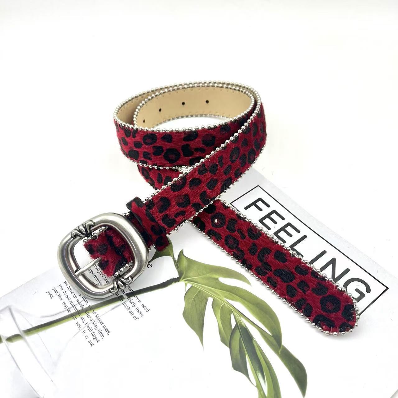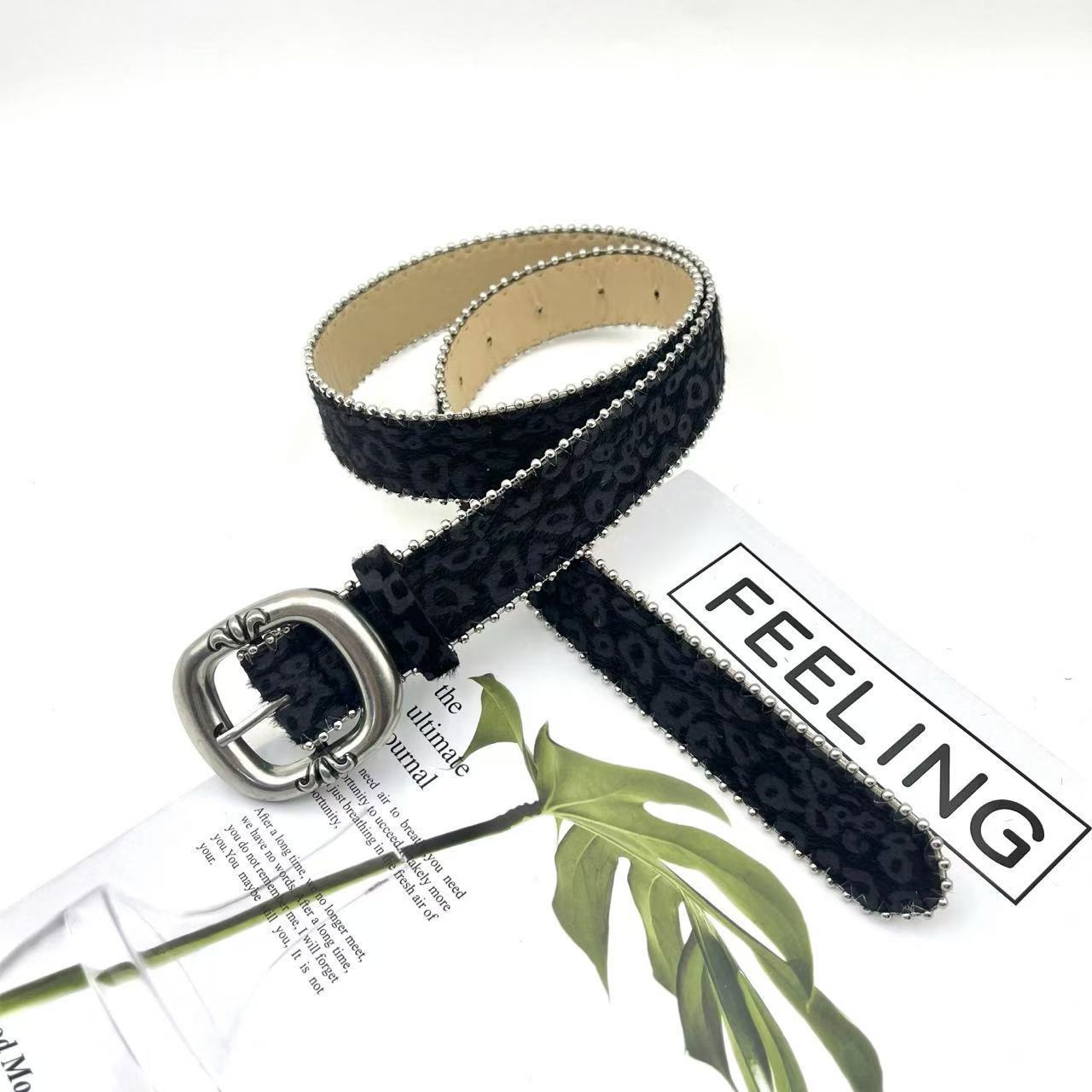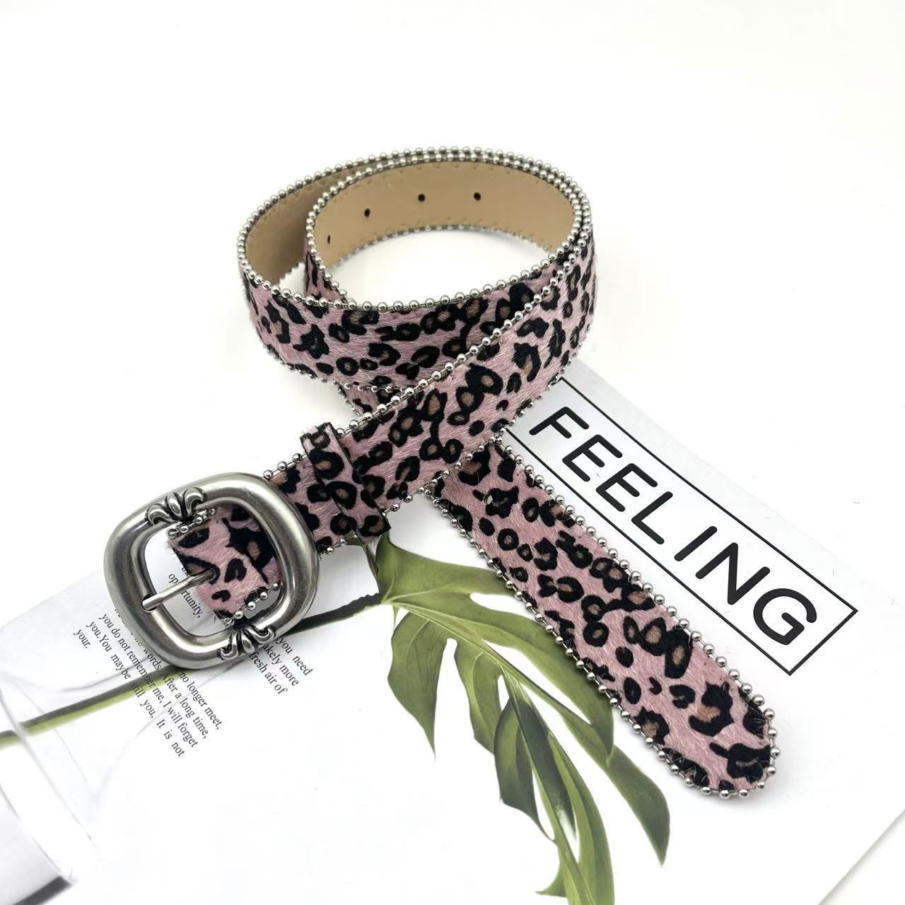 레오파드 프린트 말헤어 시리즈 벨트 고대 실버 라운드 버클 레오파드 프린트 벨트 여성용 y2k 청바지 스커트 액세서리 패션 올 매치스토어 가기