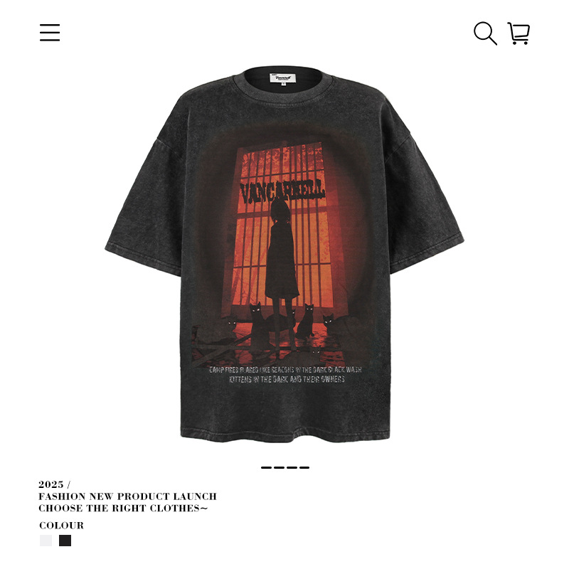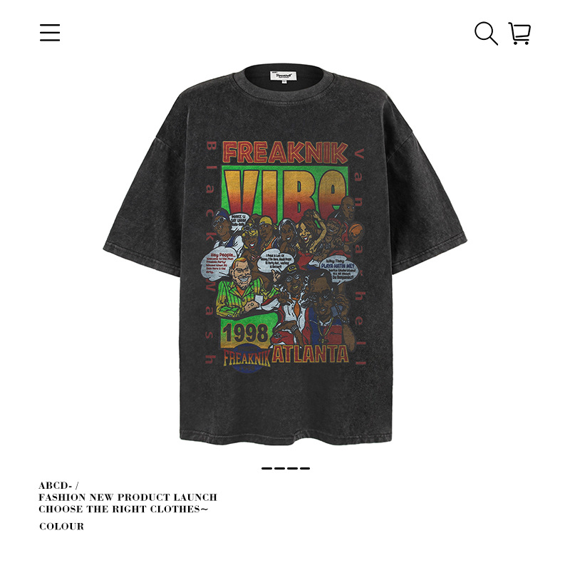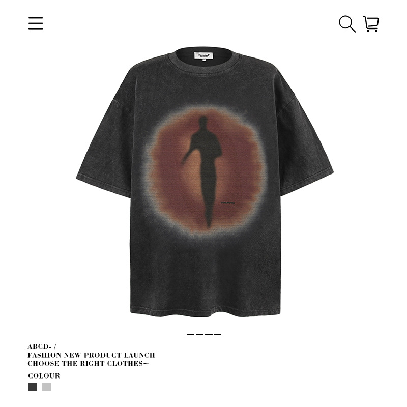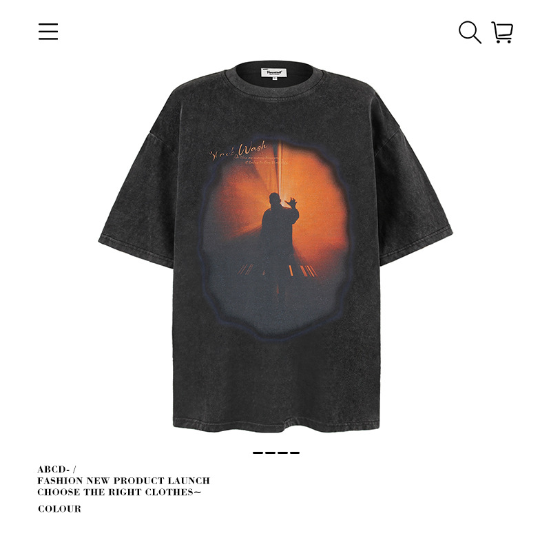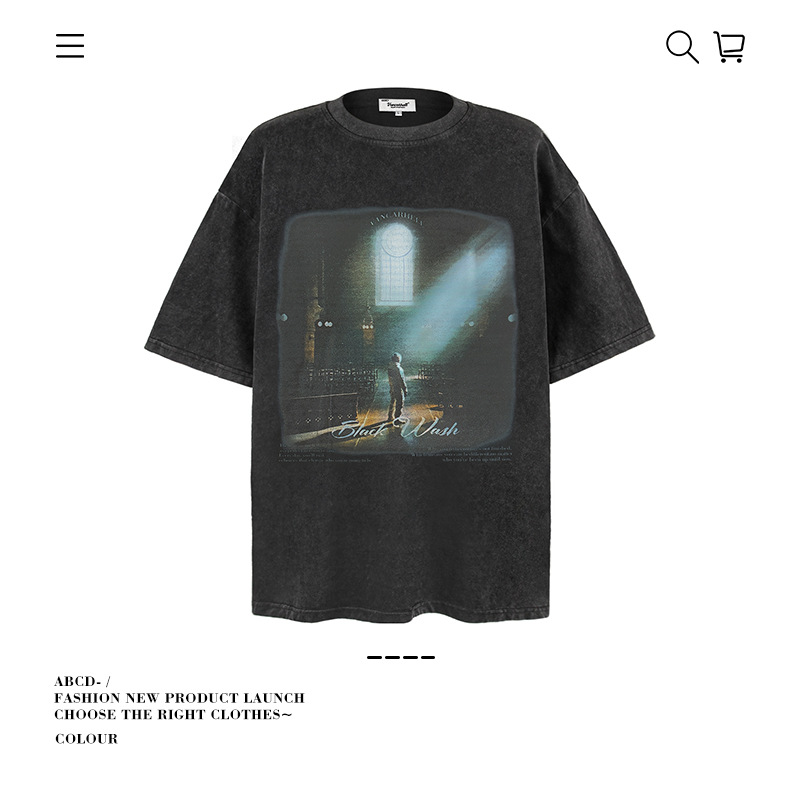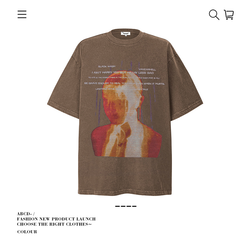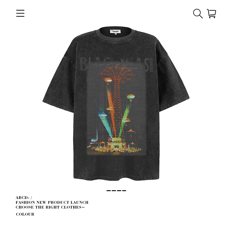 2025 여름 남성 크로스 보더 워시 반팔 티셔츠 남성 루즈 헤비 코튼 프린트 인 트렌디 브랜드 플러스 사이즈 남성 의류스토어 가기