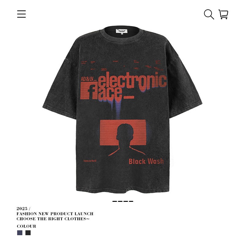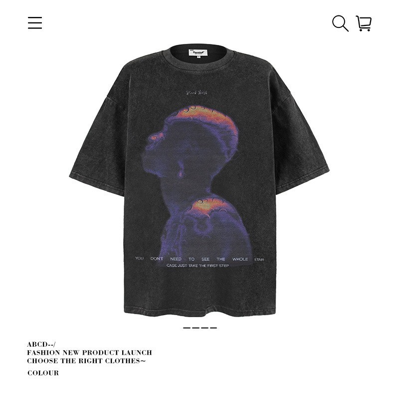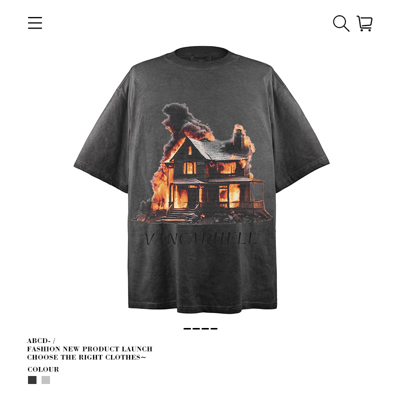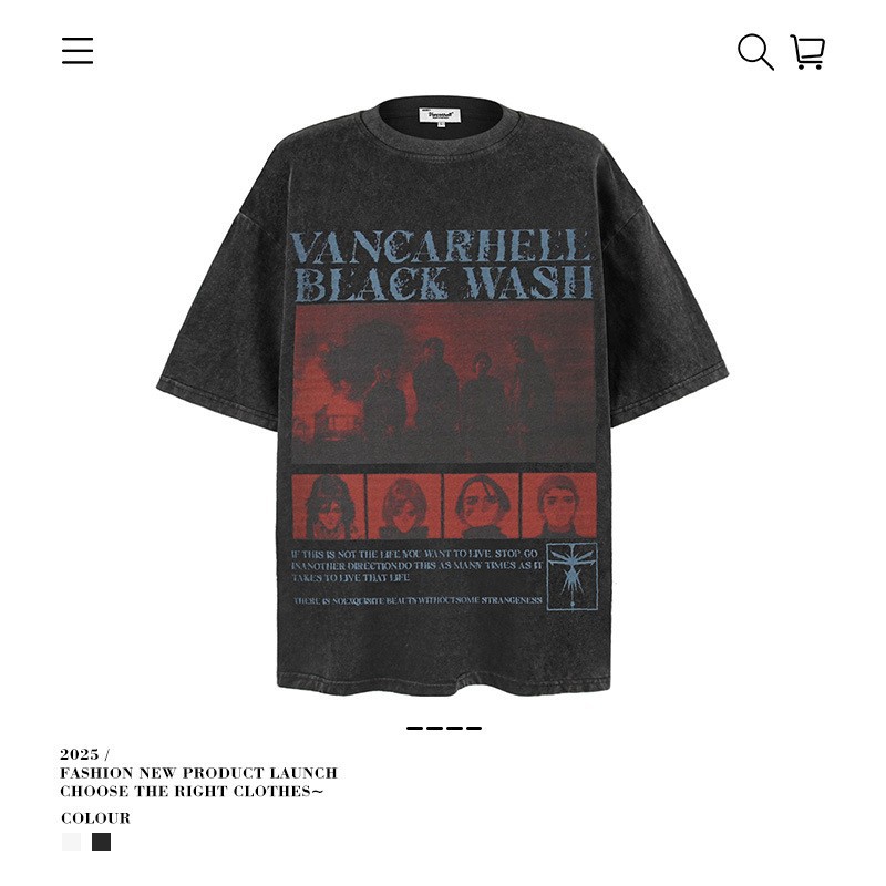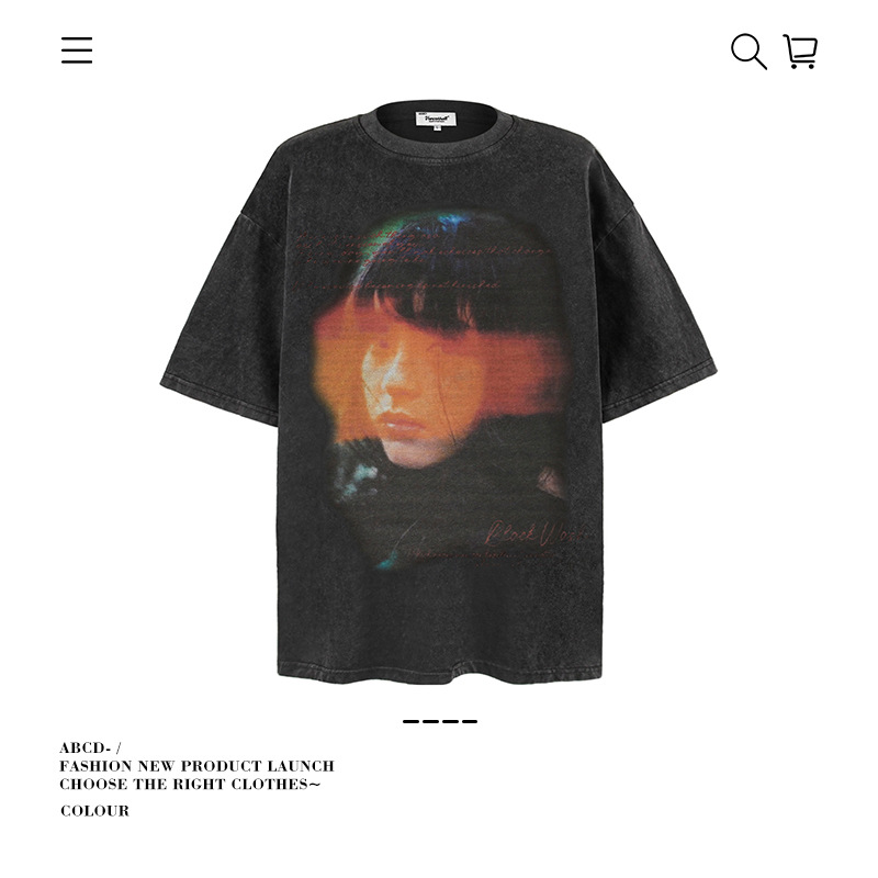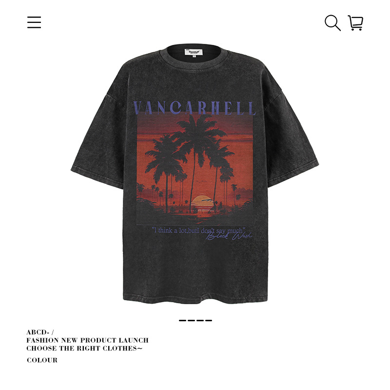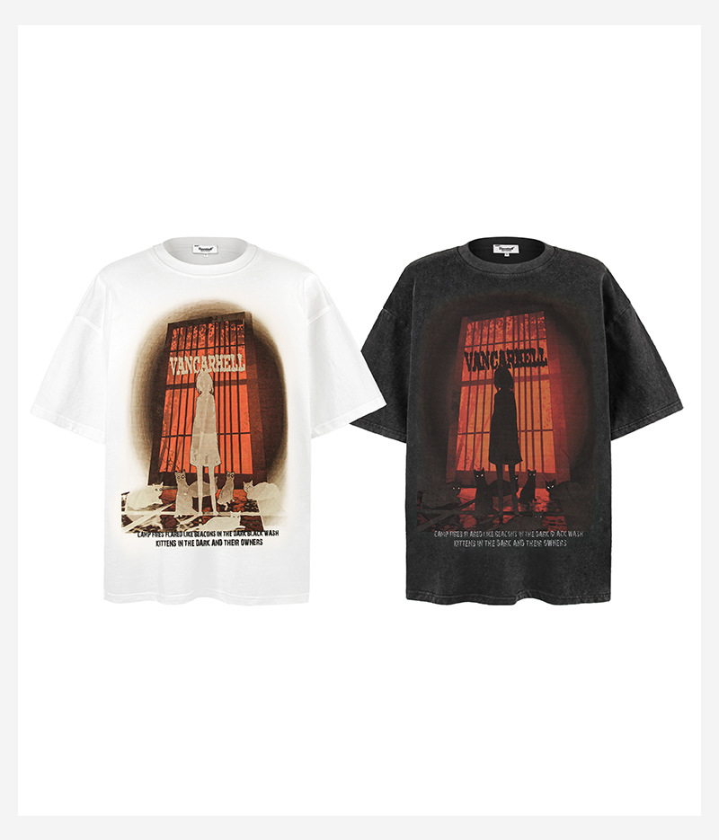 2025 여름 남성 크로스 보더 워시 반팔 티셔츠 남성 루즈 헤비 코튼 프린트 인 트렌디 브랜드 플러스 사이즈 남성 의류스토어 가기