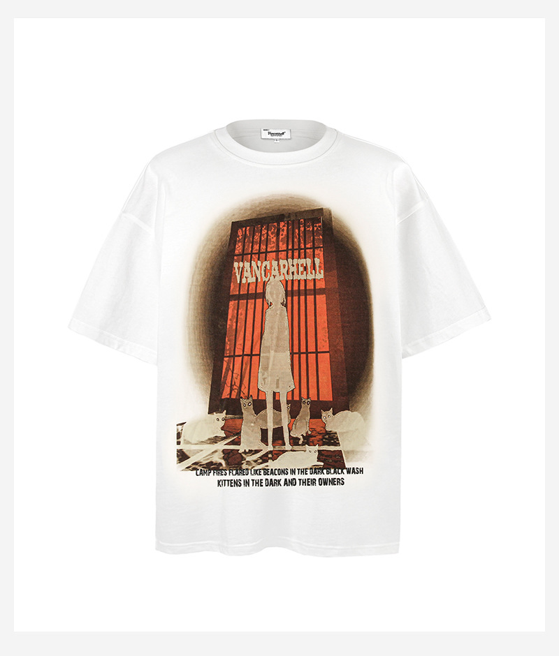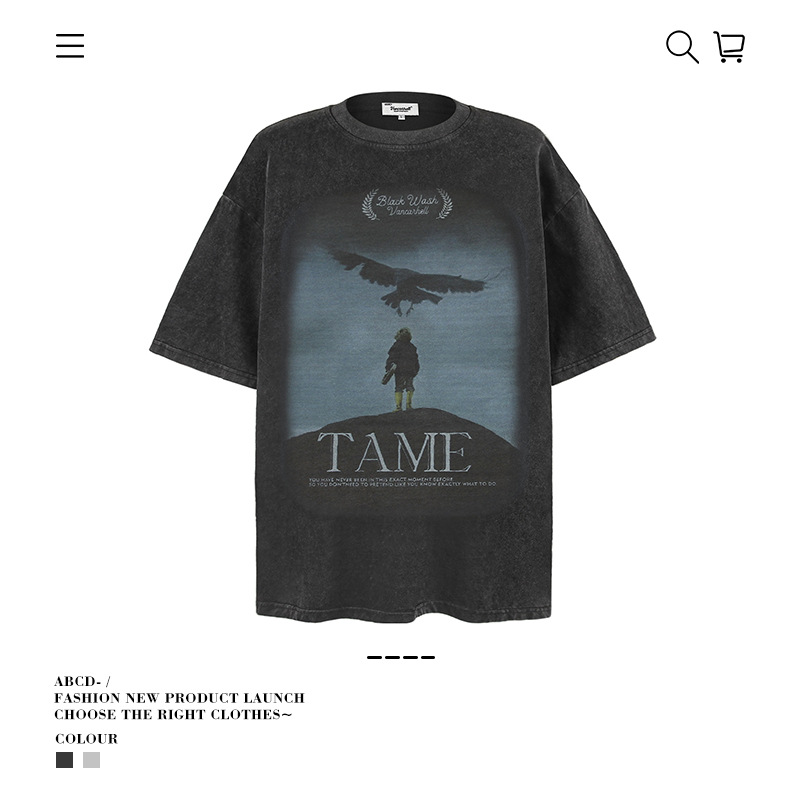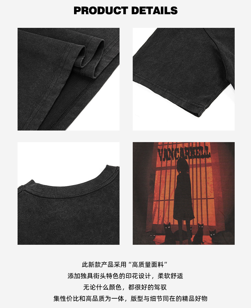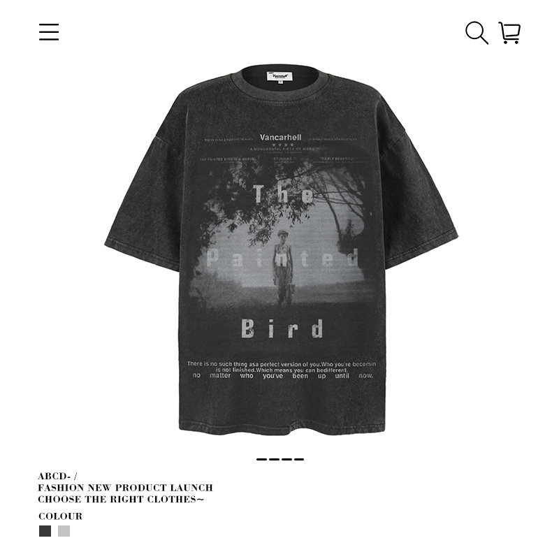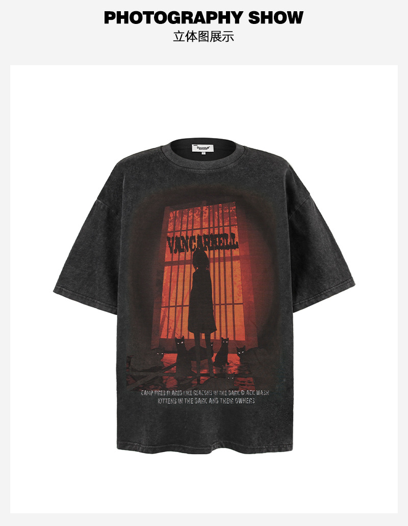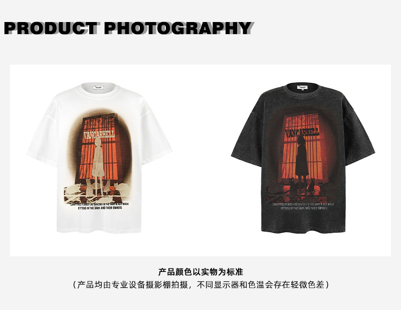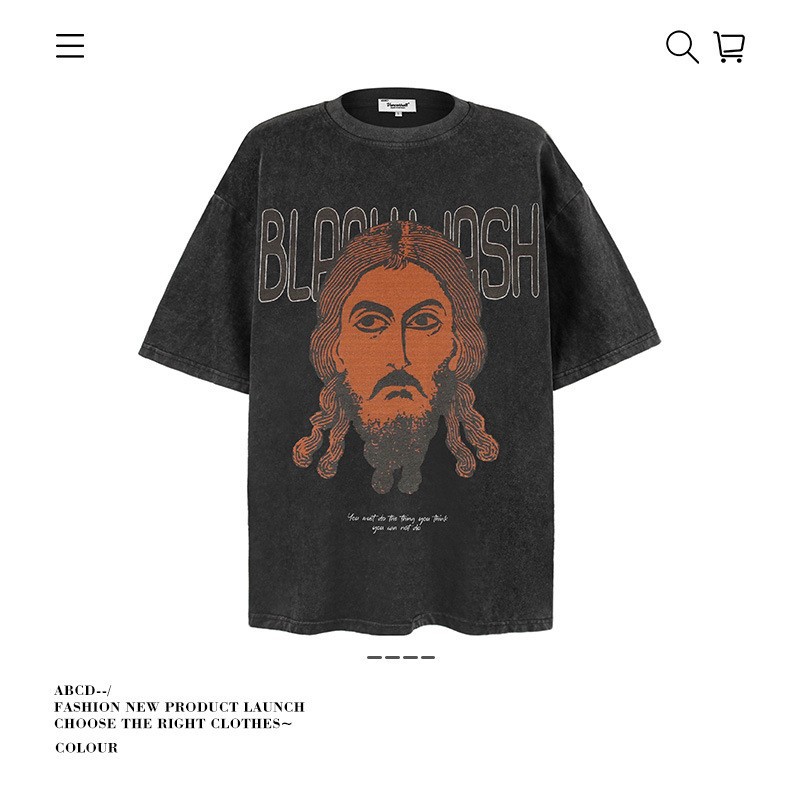 2025 여름 남성 크로스 보더 워시 반팔 티셔츠 남성 루즈 헤비 코튼 프린트 인 트렌디 브랜드 플러스 사이즈 남성 의류스토어 가기