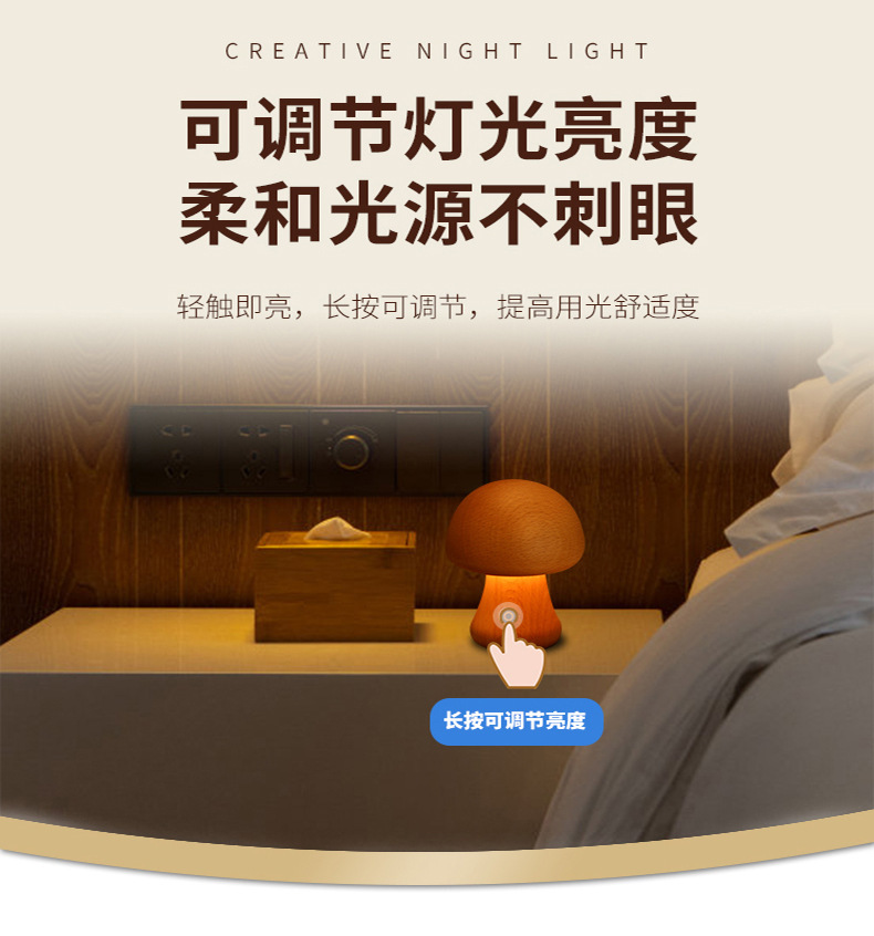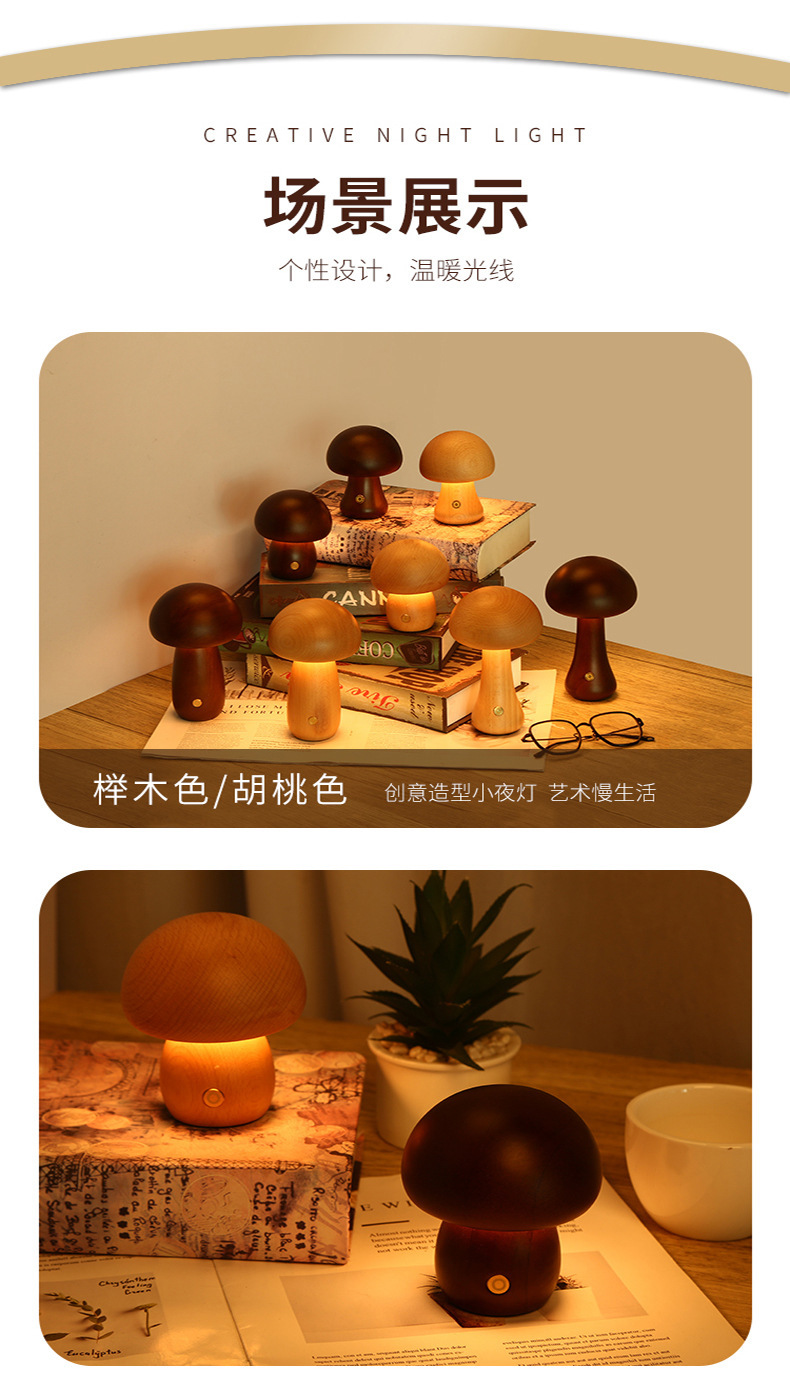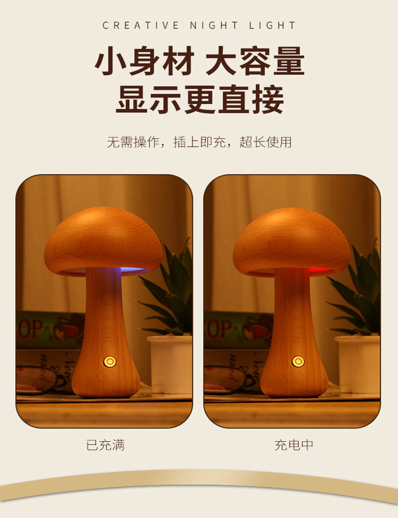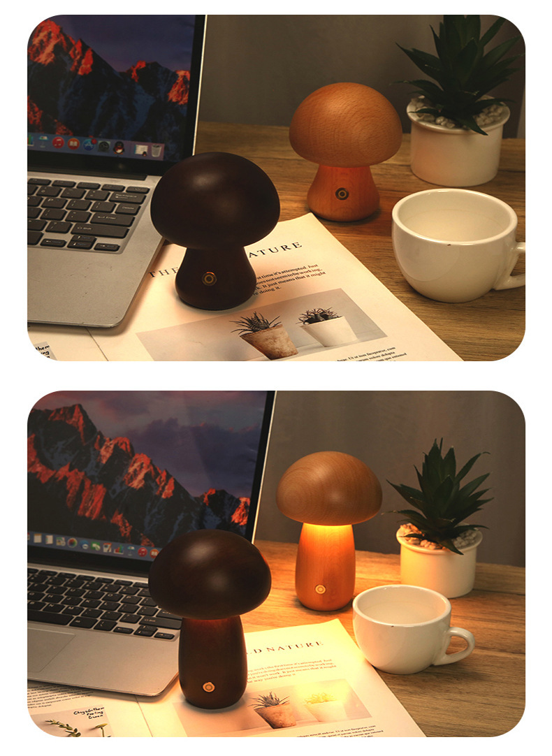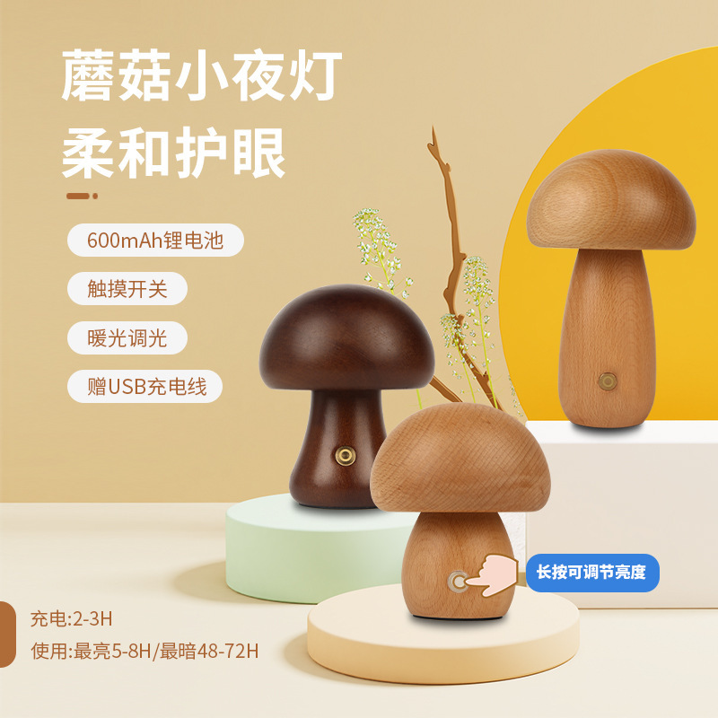 나무 버섯 램프 침실 분위기 수면 밤 빛 고급 감각 LED 버섯 충전식 테이블 램프