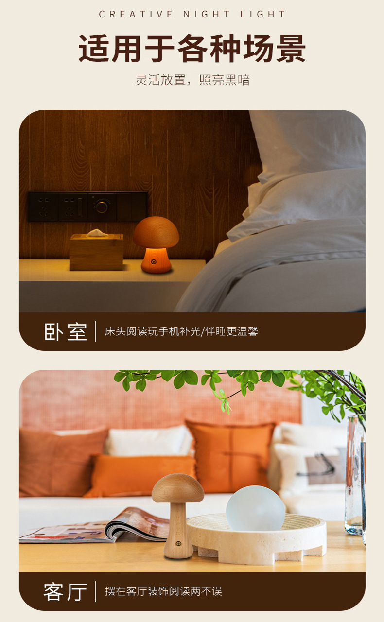 나무 버섯 램프 침실 분위기 수면 밤 빛 고급 감각 LED 버섯 충전식 테이블 램프스토어 가기