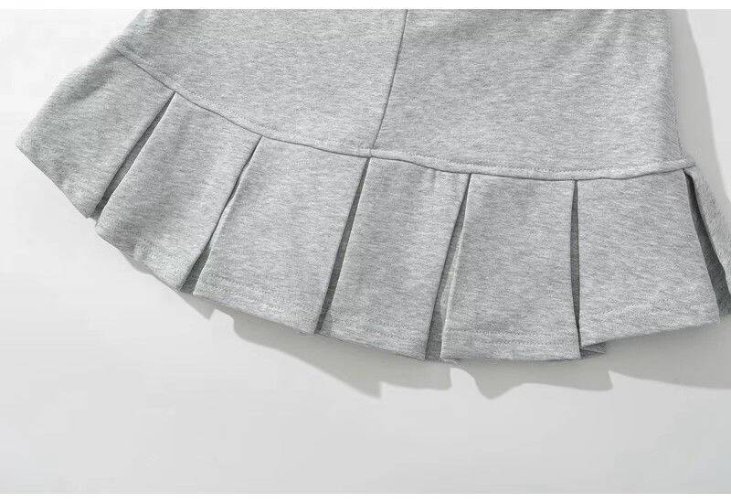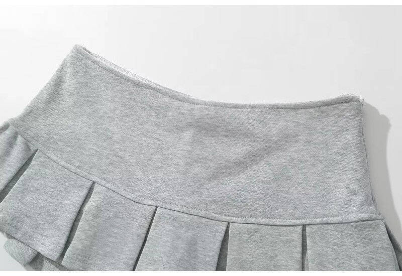 여름 섹시걸 섹시 하이웨이스트 와이드 플리츠 미니스커트 달콤하고 섹시한 노출방지 그레이 플리츠 스커트 Y2K 섹시걸