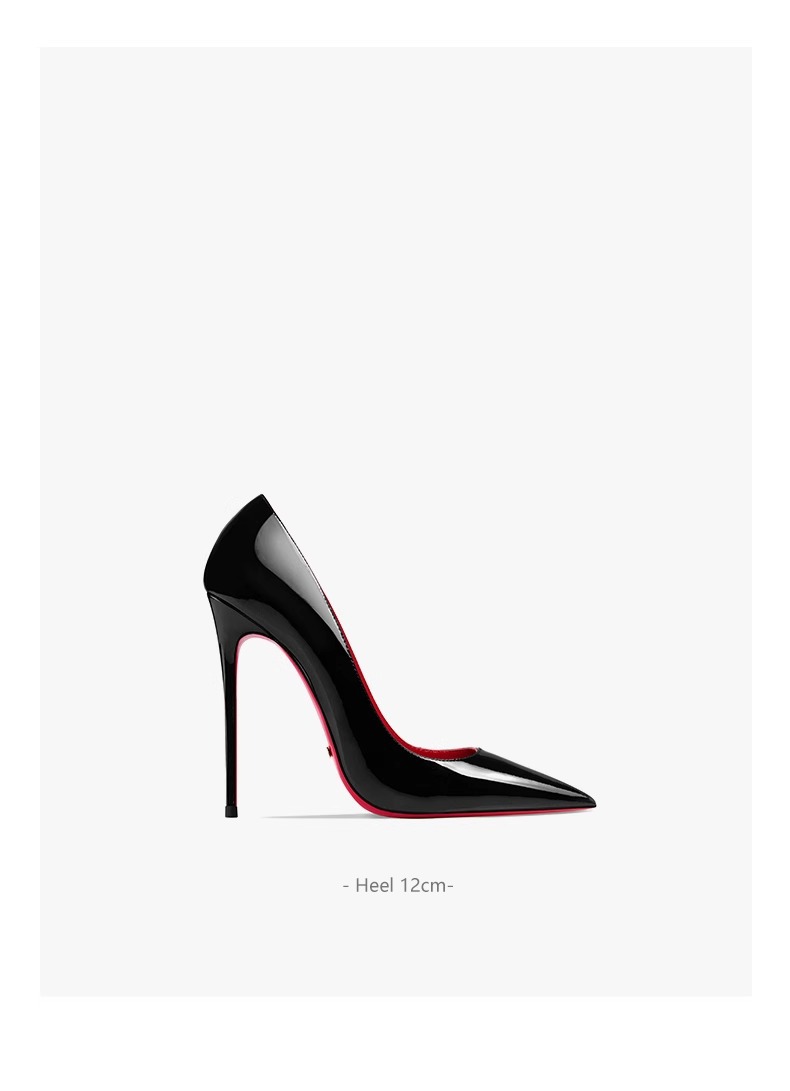 빨간색 바닥 하이힐 여성 특허 가죽 2024 새로운 통근 기질 섹시한 스틸레토 신발 12CM 세련되고 다재다능함스토어 가기
