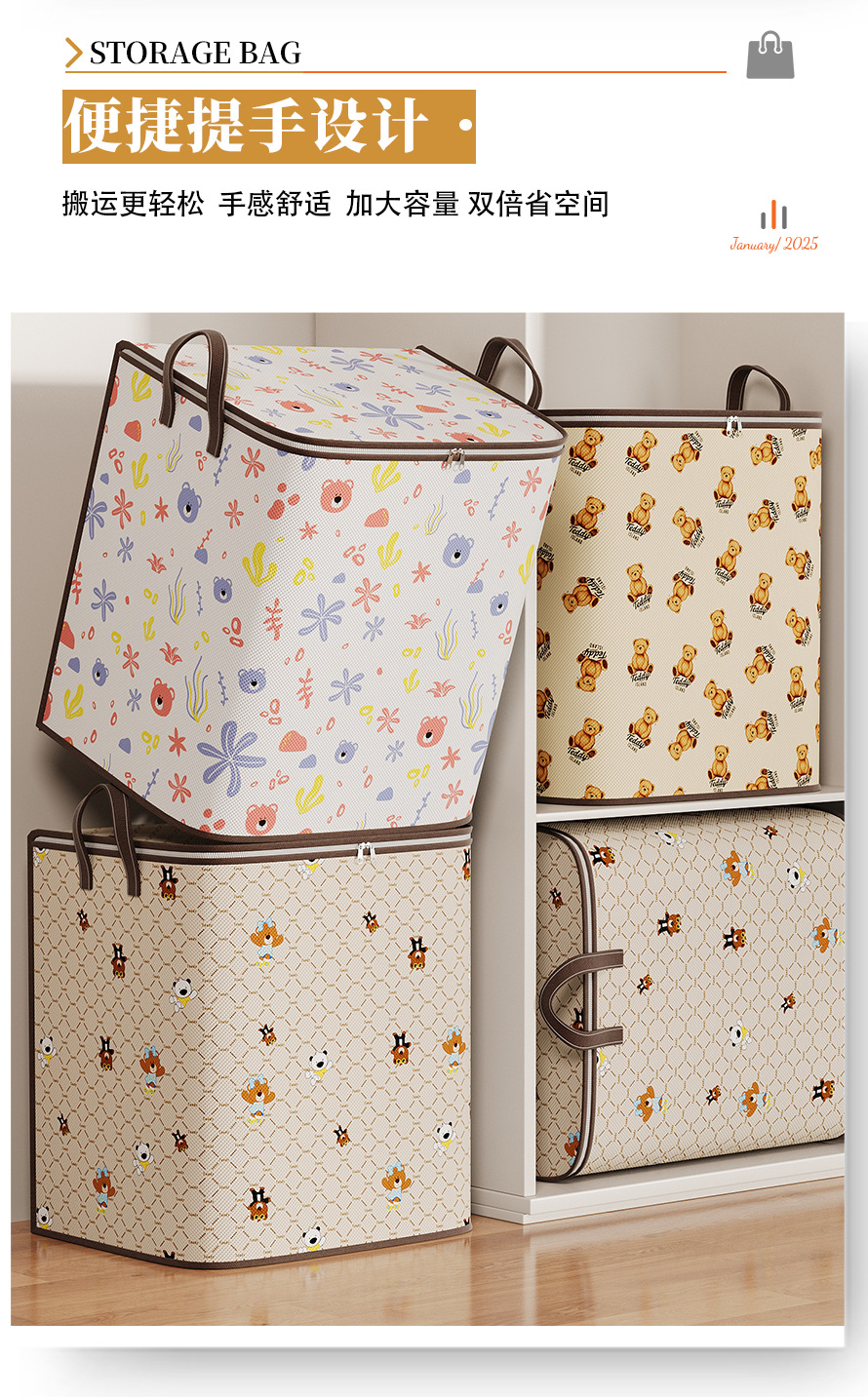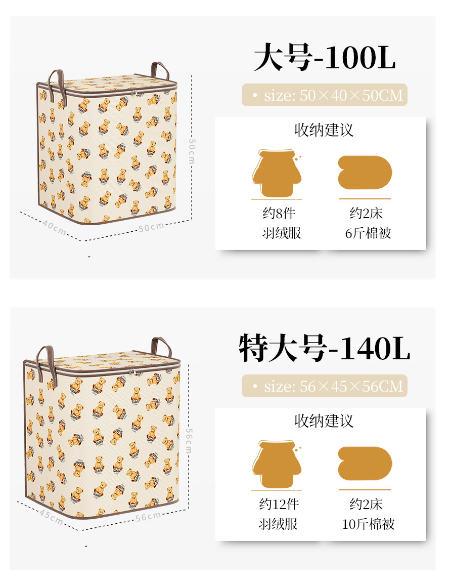 테디 베어 옷 퀼트 접이식 부직포 보관 가방 침실 옷장 보관 상자 장난감 보관 가방스토어 가기
