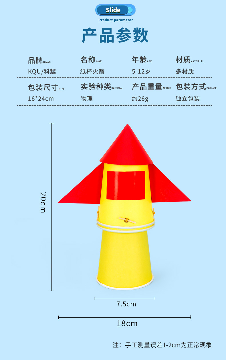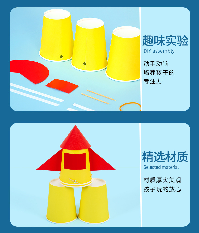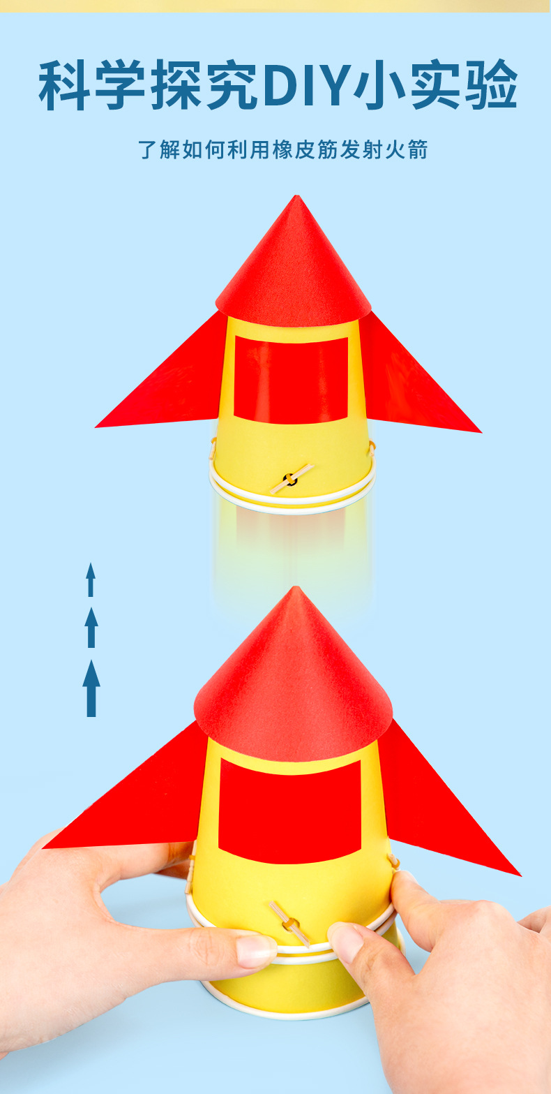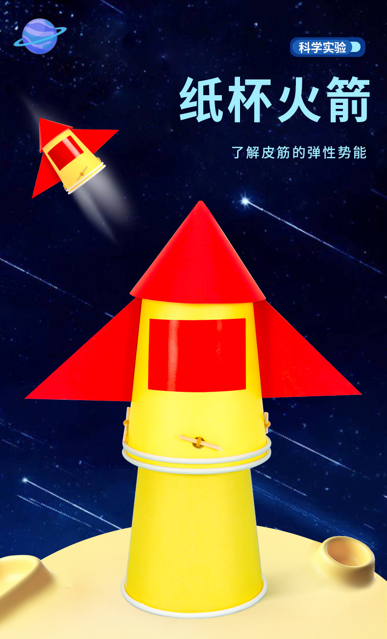 과학 실험 diy 종이컵 로켓 기술 작은 만드는 고무 밴드 탄성 에너지 어린이 수제 발명 세트스토어 가기