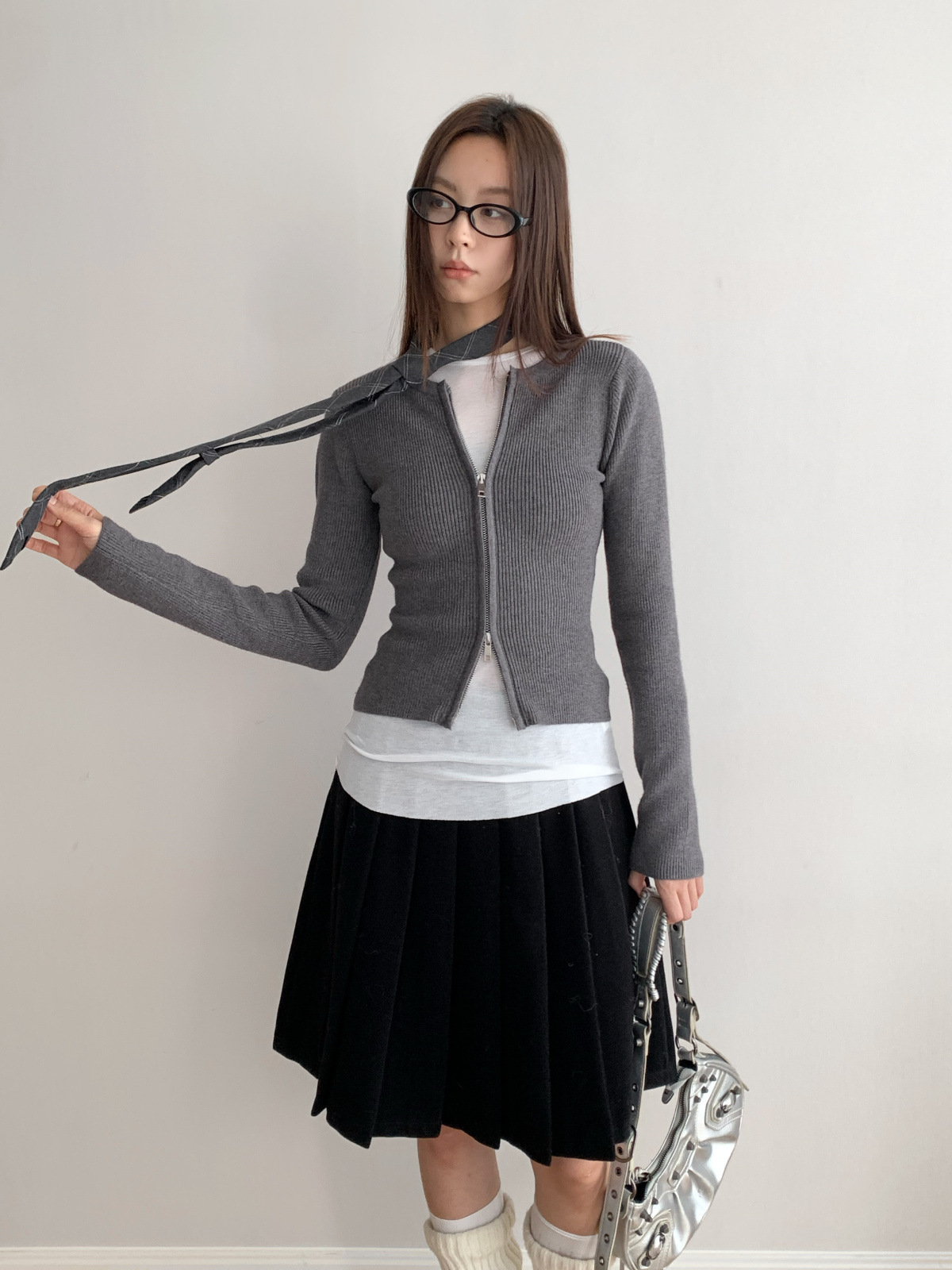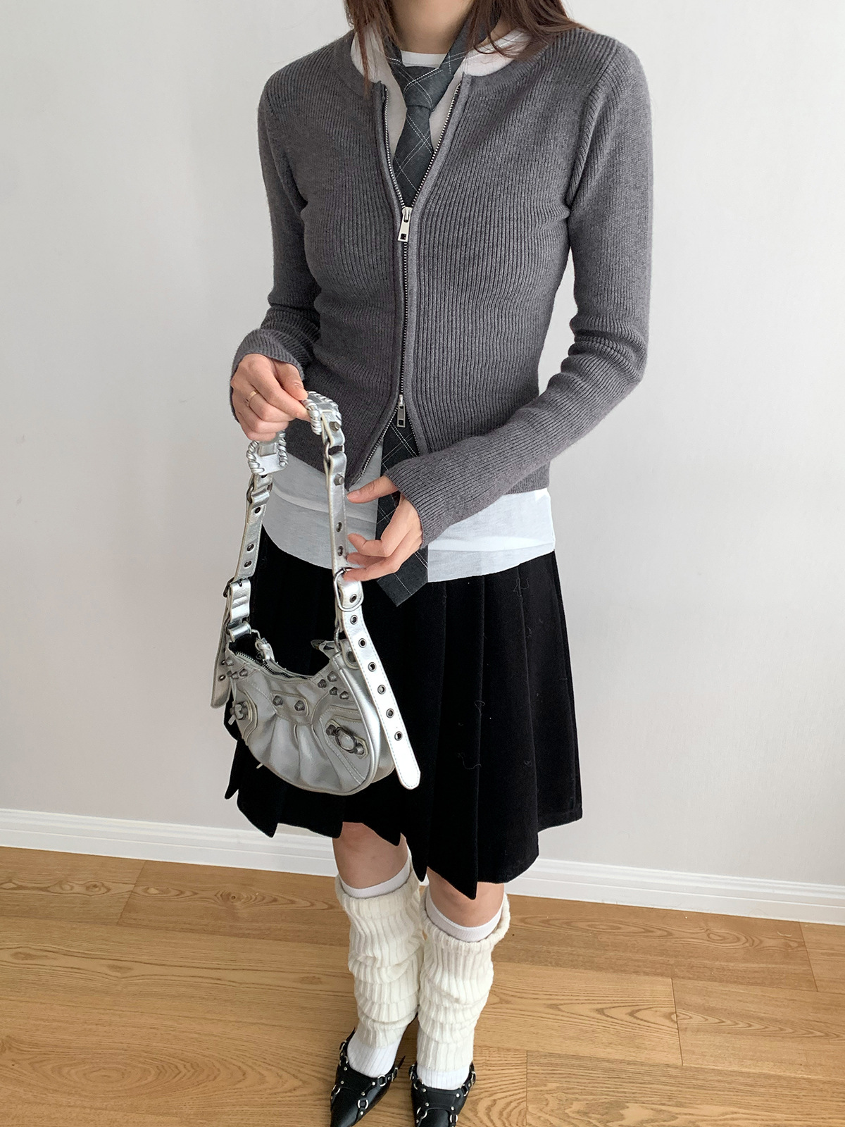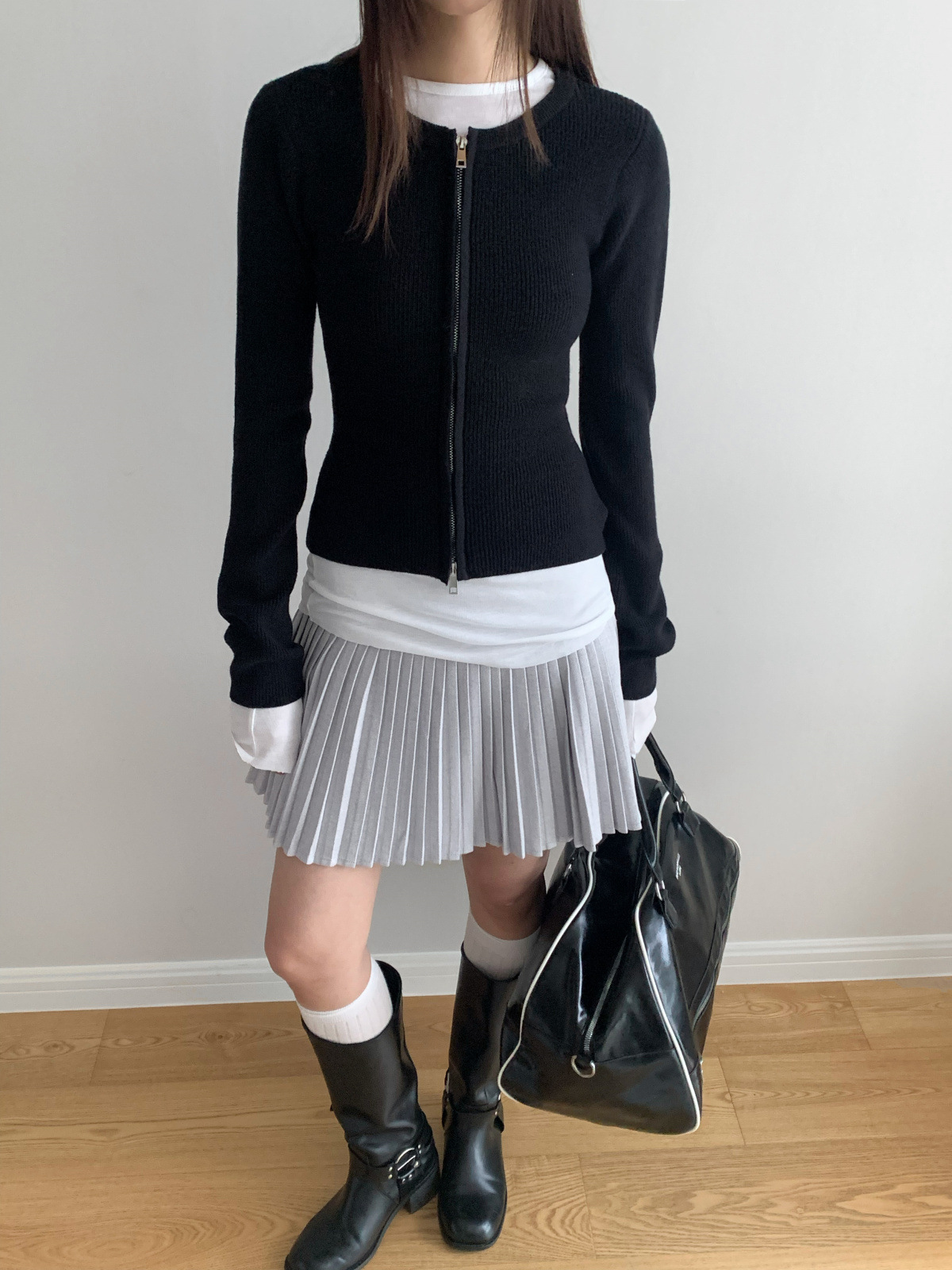 도로시 가을과 겨울 새로운 한국 종이 사람들 디자인 센스 더블 지퍼 슬림 핏 짧은 슬림 룩 라운드 넥 스웨터스토어 가기