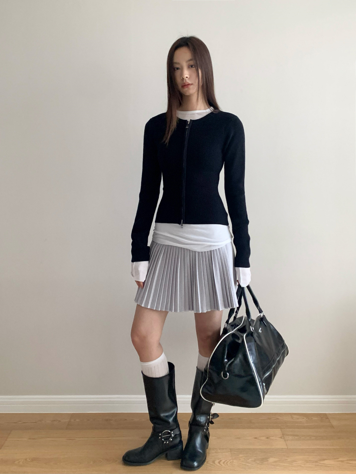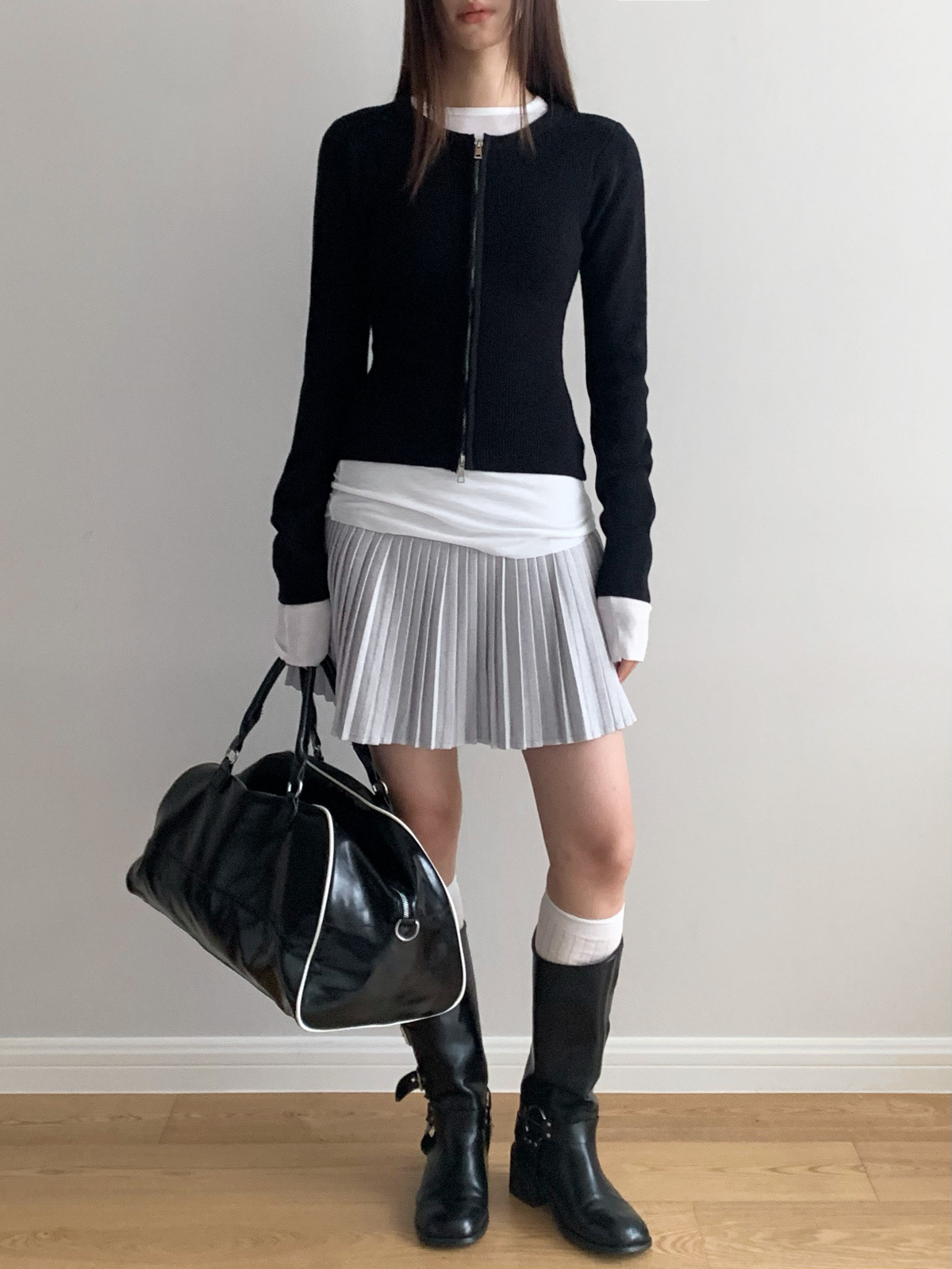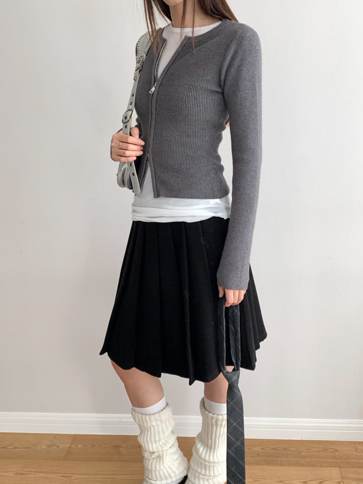 도로시 가을과 겨울 새로운 한국 종이 사람들 디자인 센스 더블 지퍼 슬림 핏 짧은 슬림 룩 라운드 넥 스웨터스토어 가기