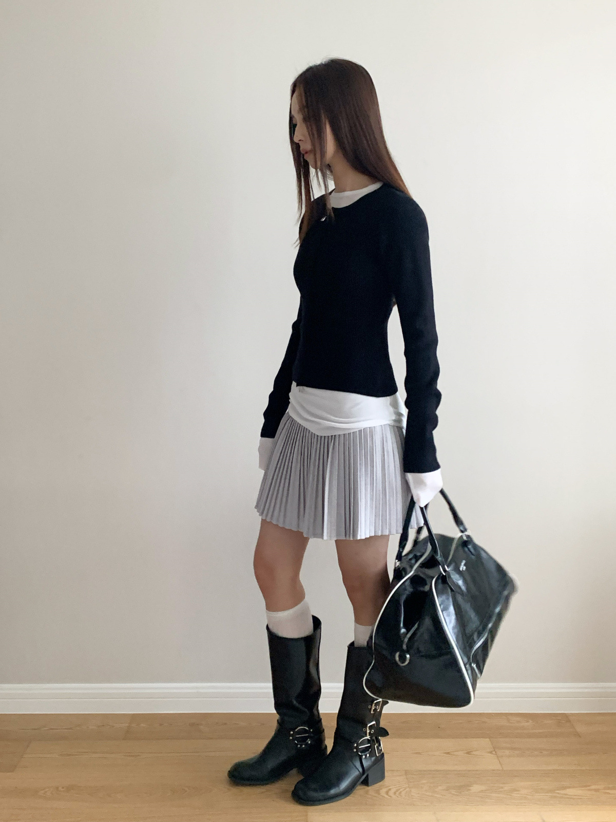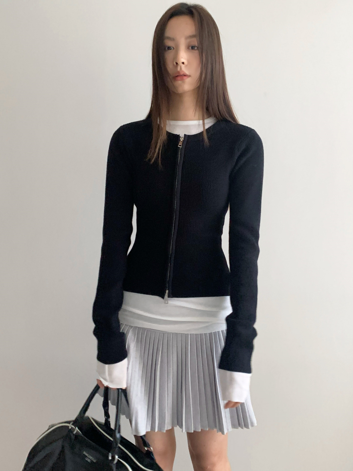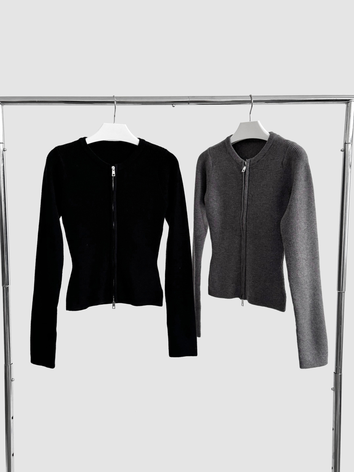 도로시 가을과 겨울 새로운 한국 종이 사람들 디자인 센스 더블 지퍼 슬림 핏 짧은 슬림 룩 라운드 넥 스웨터