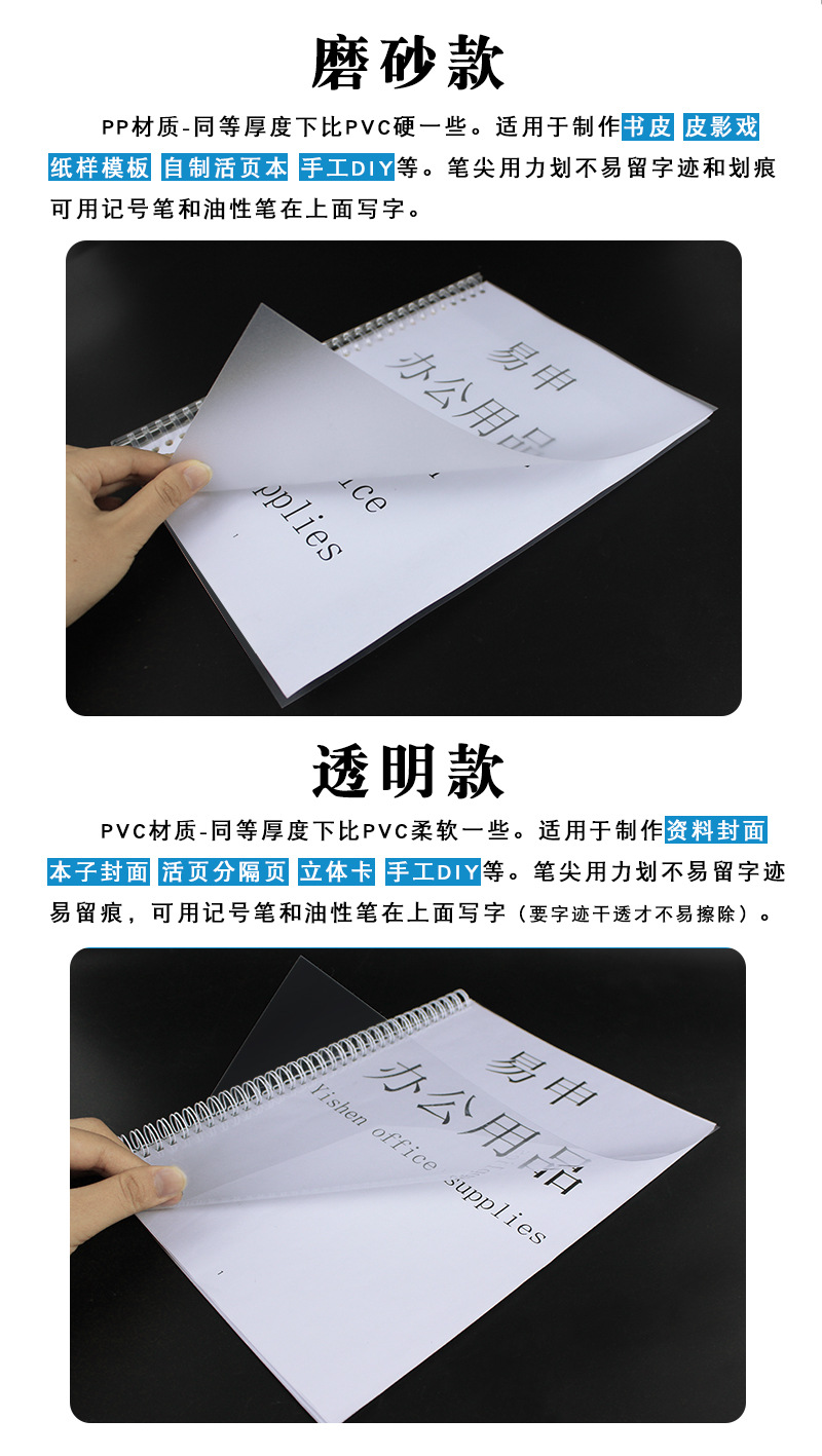 바인딩 필름 애완 동물 문서 부드러운 커버 종이 a4 투명 젖빛 pp 종이 pvc 클립 스트립 느슨한 잎 플라스틱 커버 a3스토어 가기