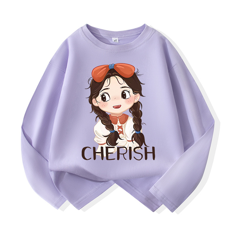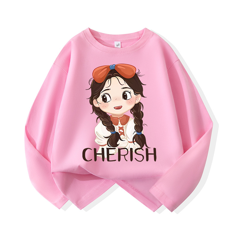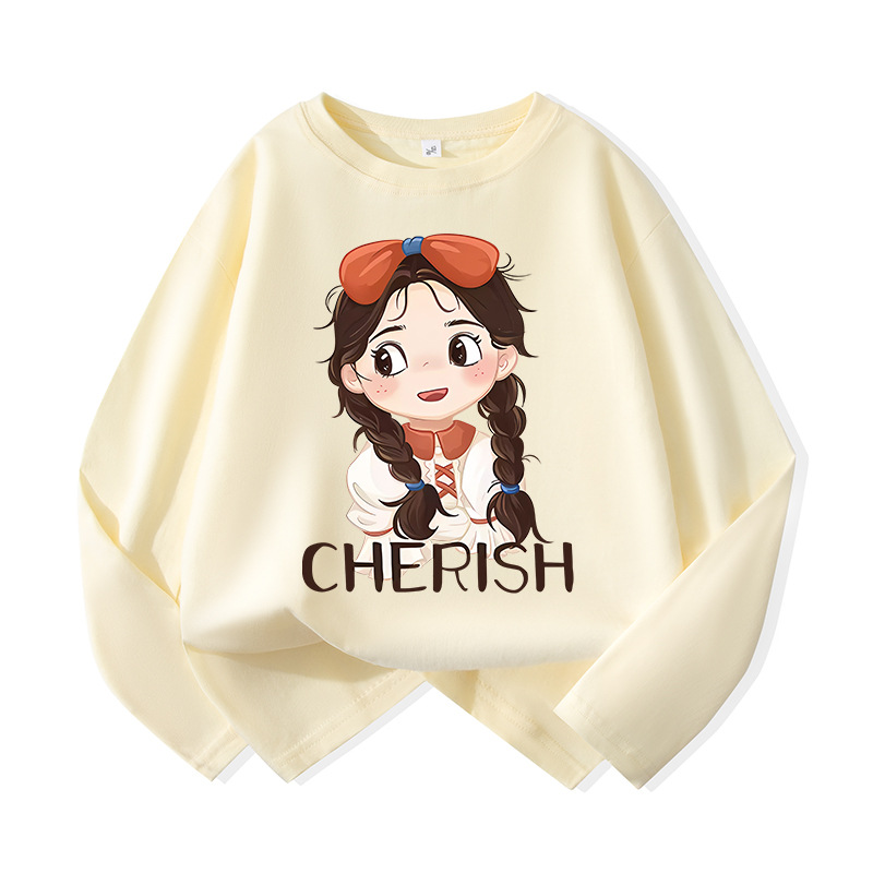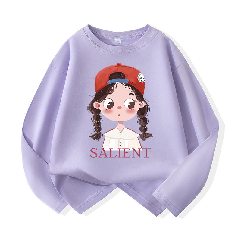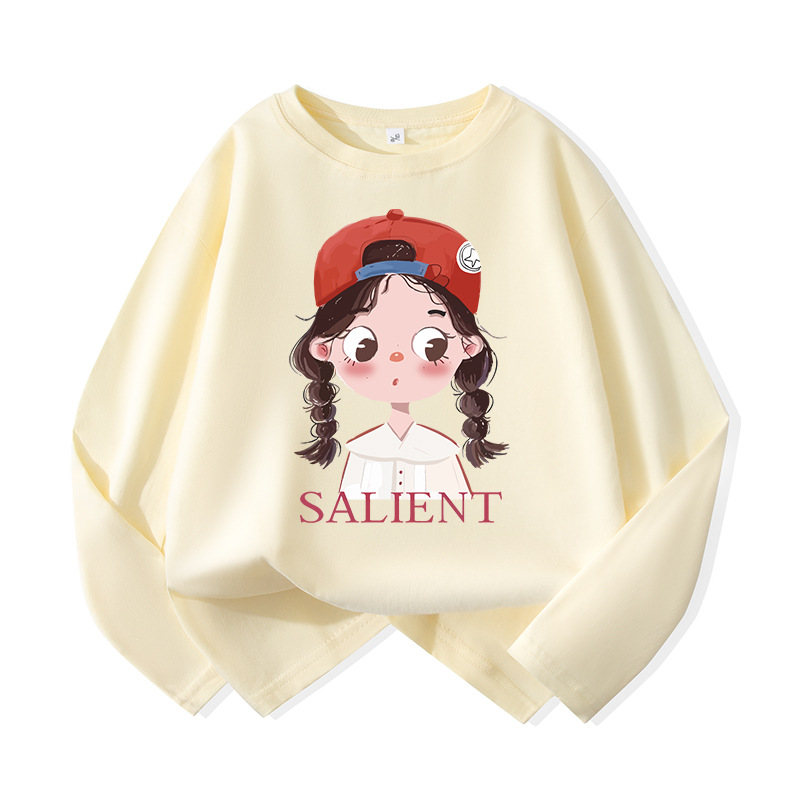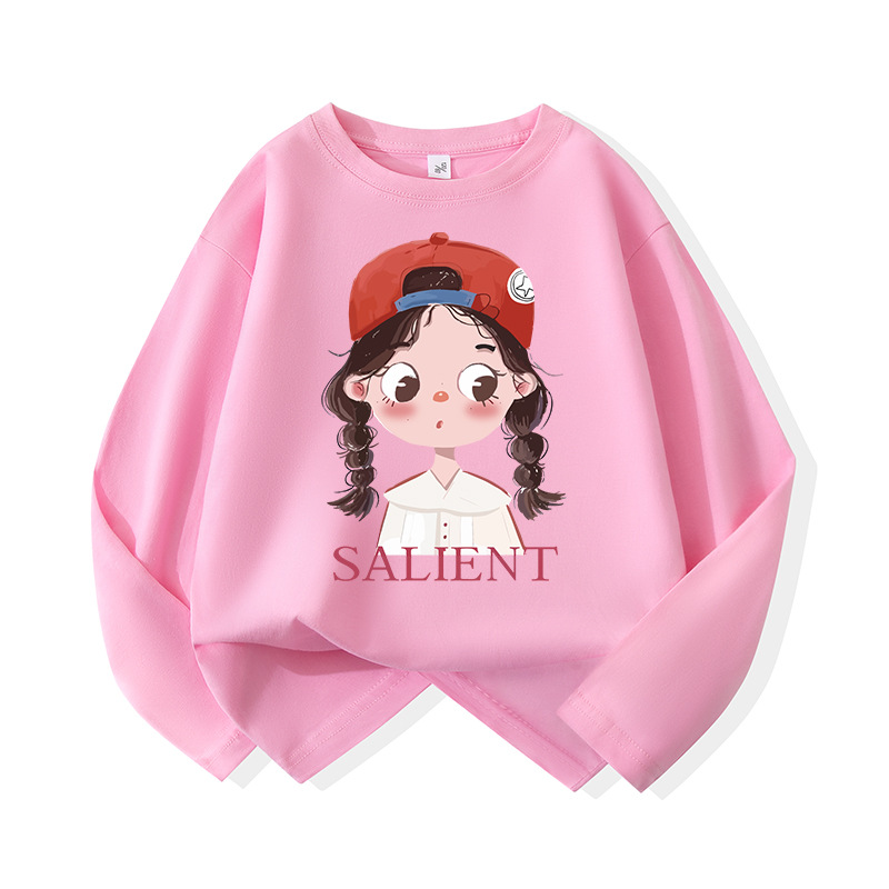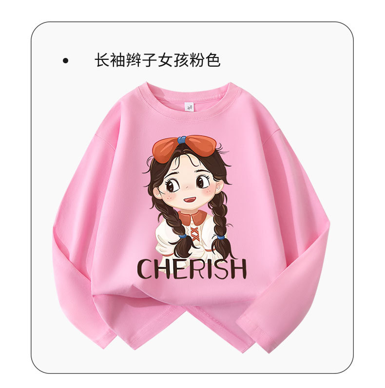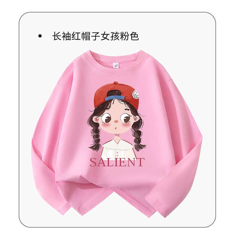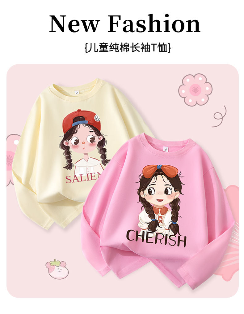 소녀 긴팔 티셔츠 순면 2024 새 봄 가을 옷 대형 아동복 어린이 서양식 소녀 탑베이스 셔츠스토어 가기
