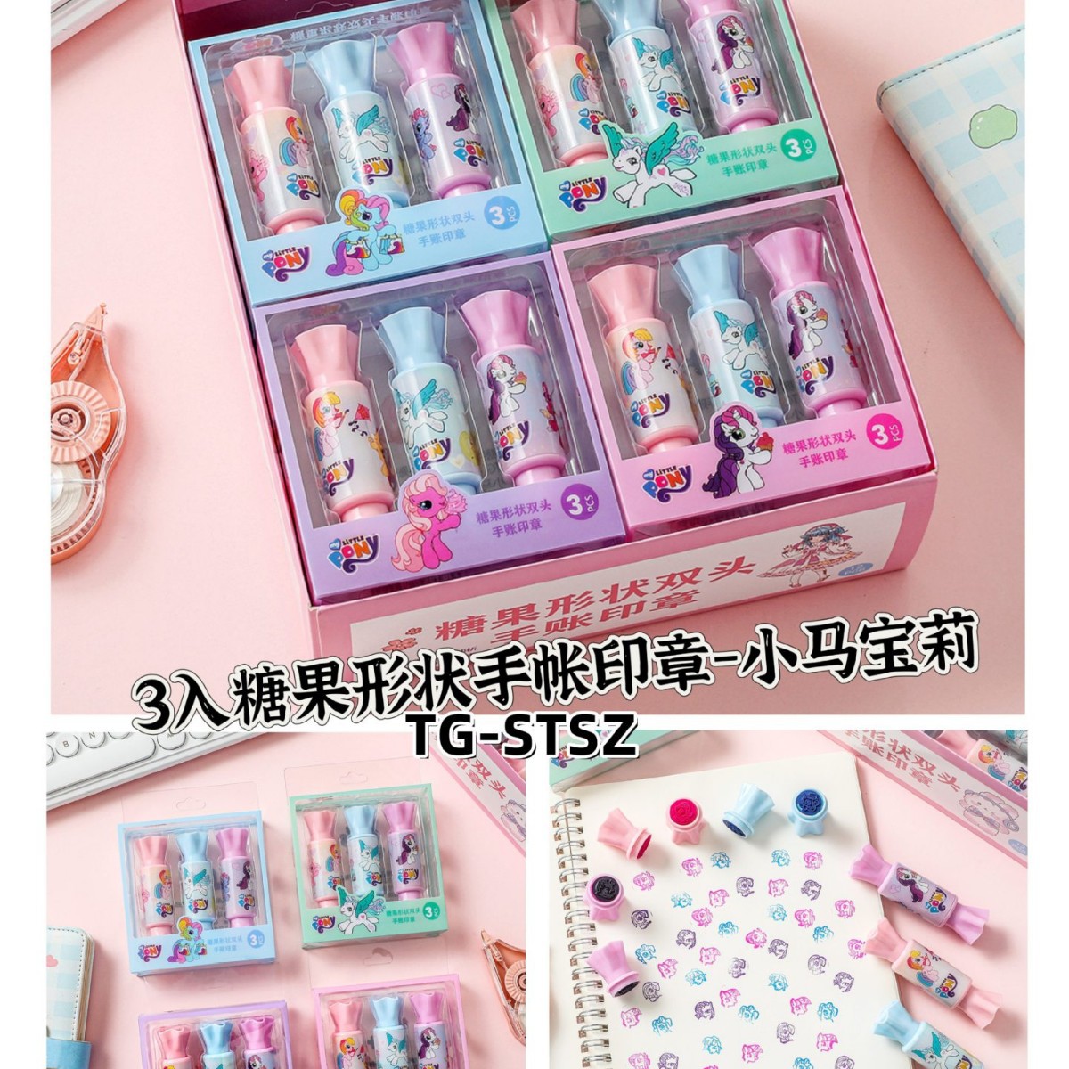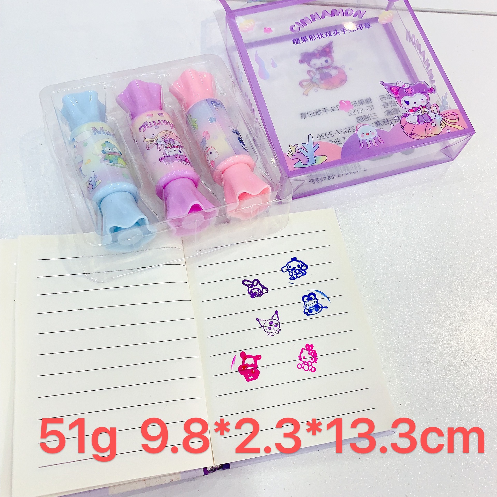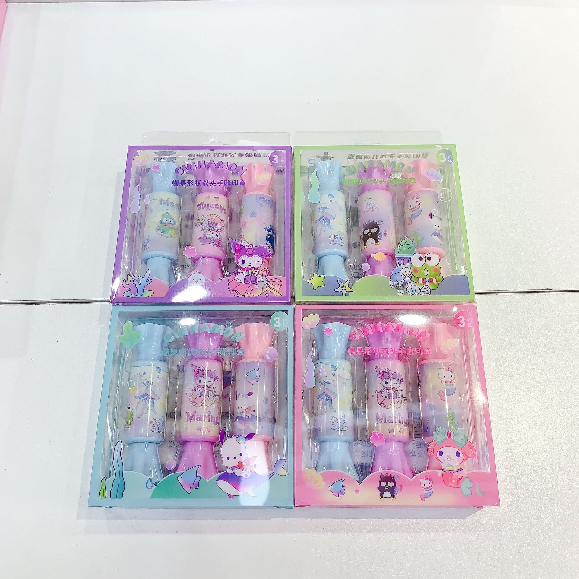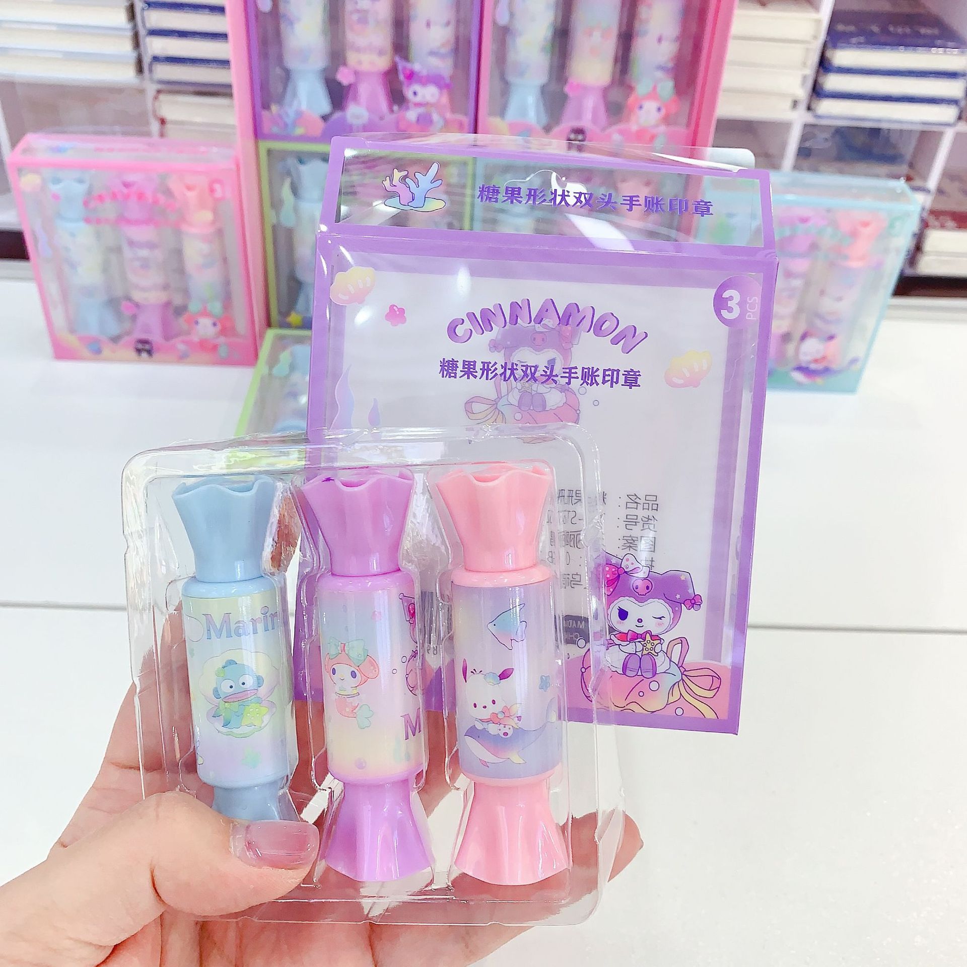 새로운 산리오 캔디 모양 양방향 핸드북 스탬프 학생 핸드북 귀여운 스탬프 작은 장난감 3팩
