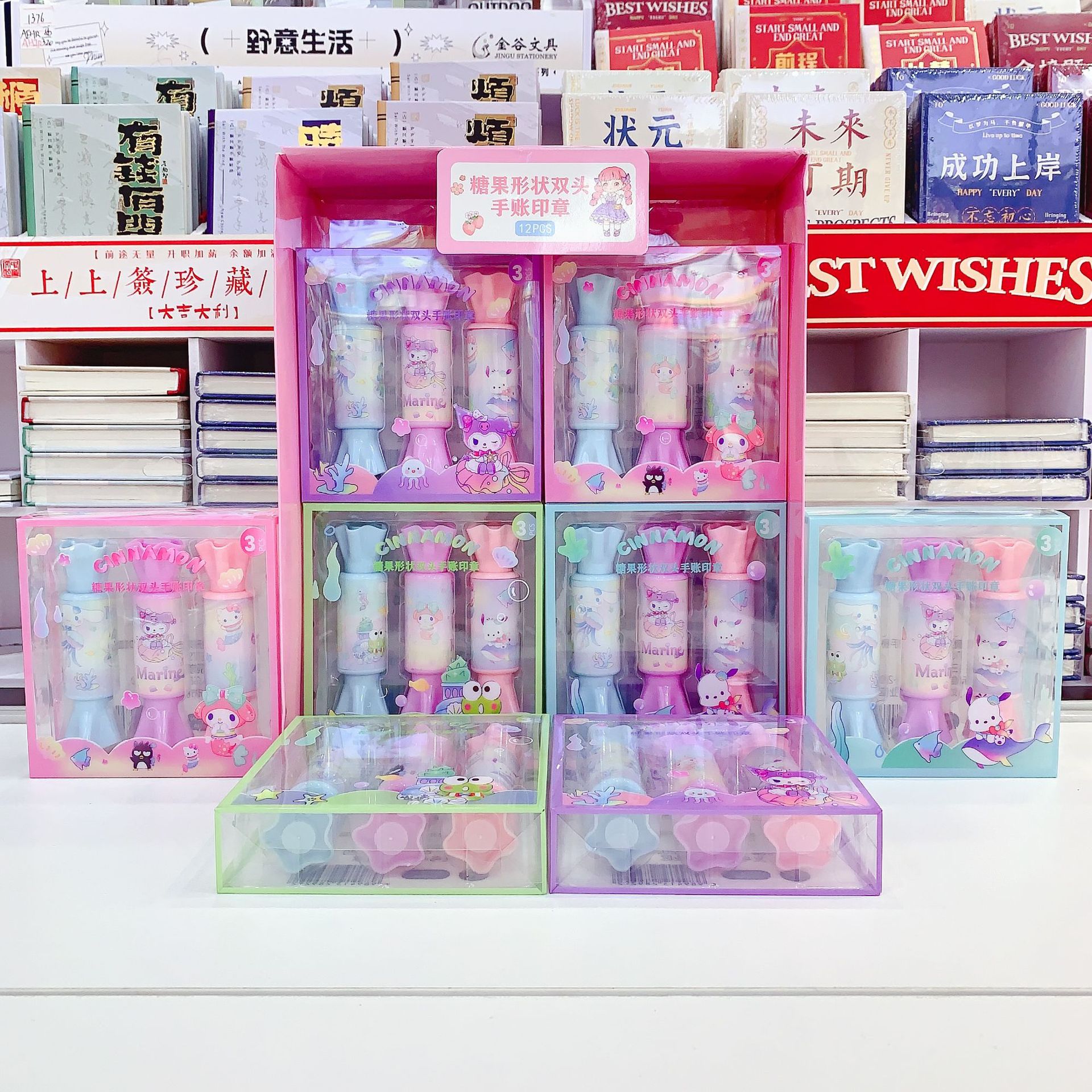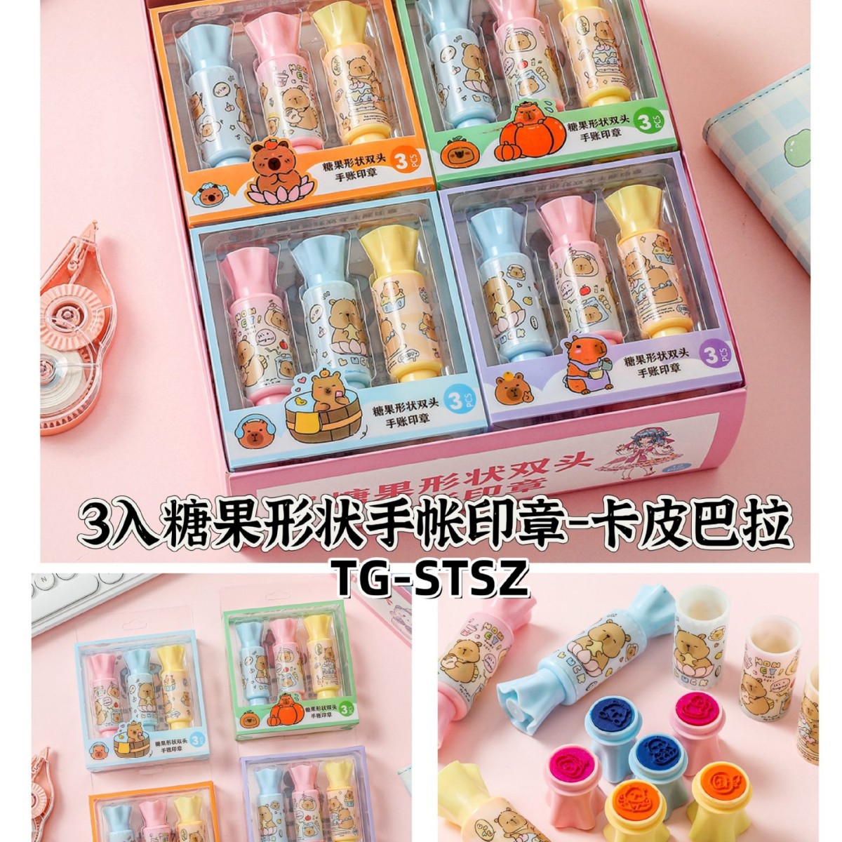 새로운 산리오 캔디 모양 양방향 핸드북 스탬프 학생 핸드북 귀여운 스탬프 작은 장난감 3팩스토어 가기