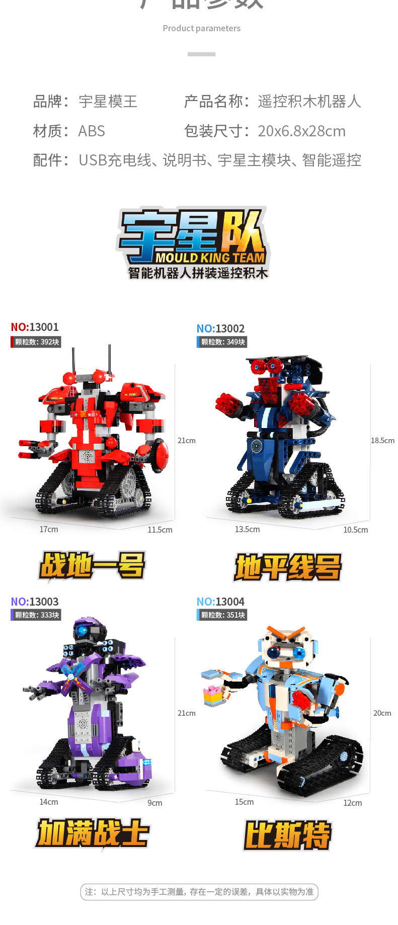Yuxing 모델 왕 13001-13004 원격 제어 지능형 프로그래밍 로봇 조립 건물 블록 과학 및 교육 건물 블록