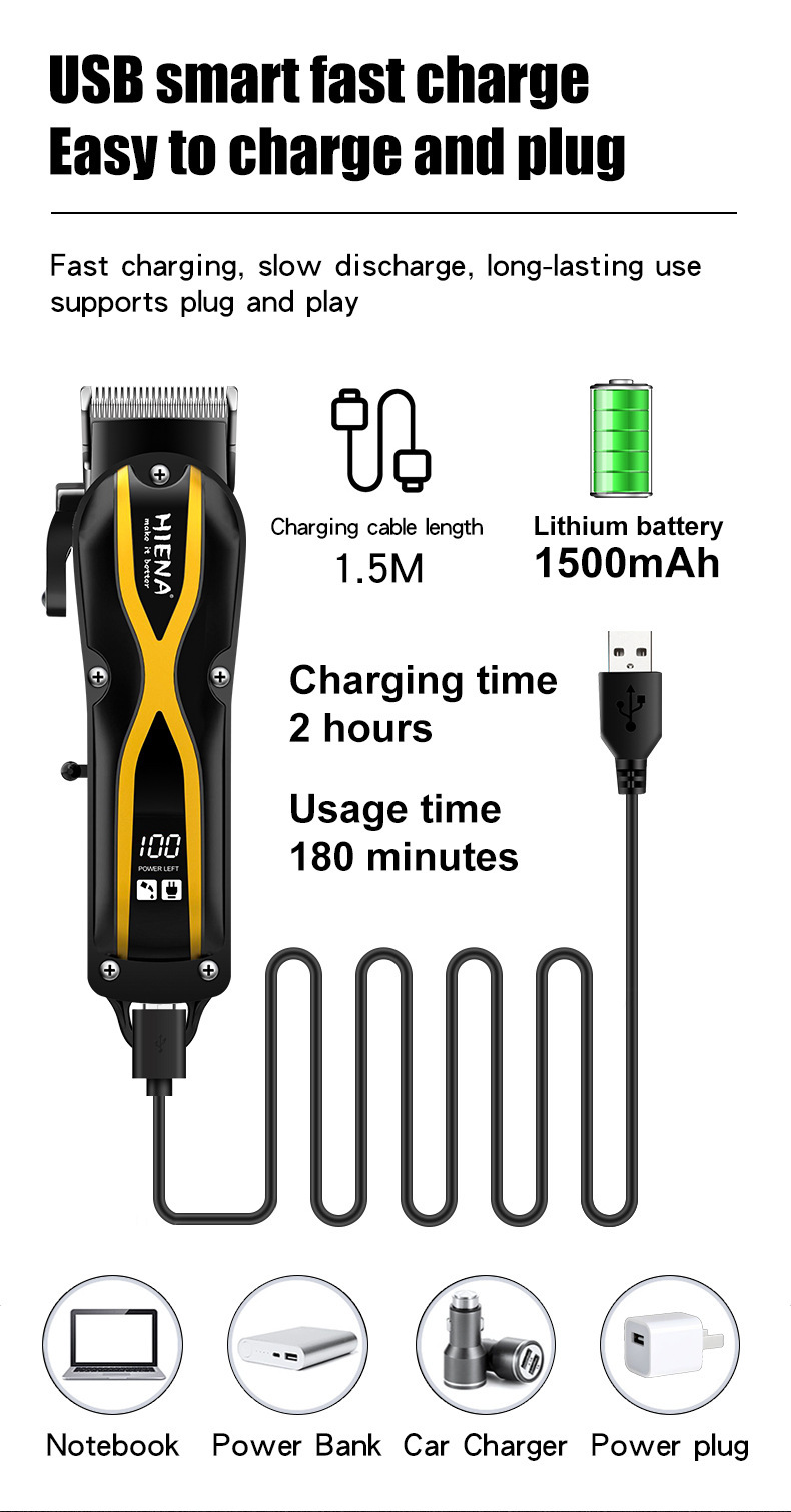 HIENA/HIENA 다채로운 헤어 클리퍼 오일 헤드 전기 헤어 클리퍼 대머리 전기 클리퍼 USB 충전식스토어 가기