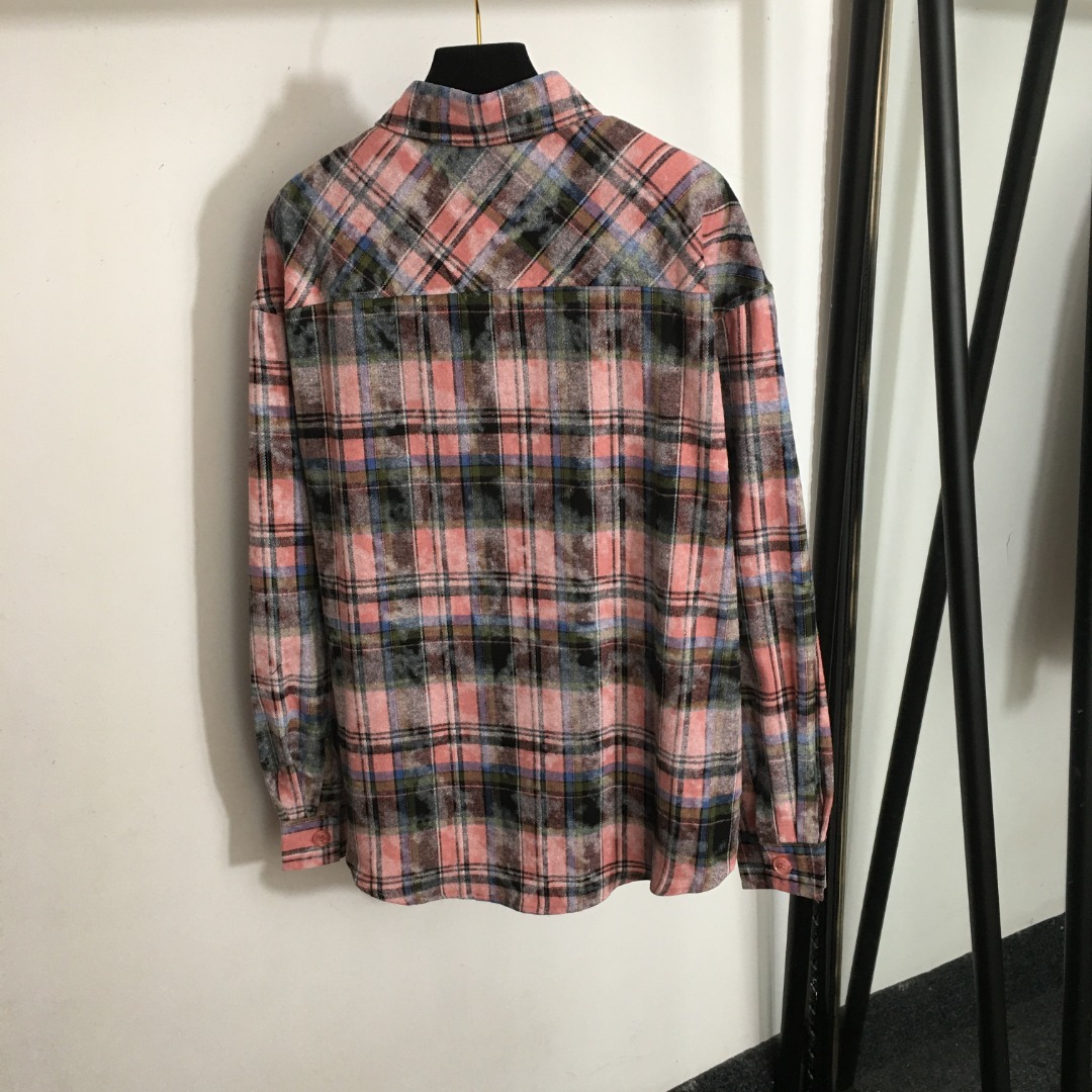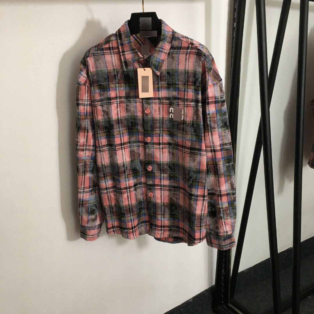 2025년 신상품 레터링 로고 프린트 포켓 배색 체크무늬 빈티지 스타일 긴팔 라펠 카디건 셔츠