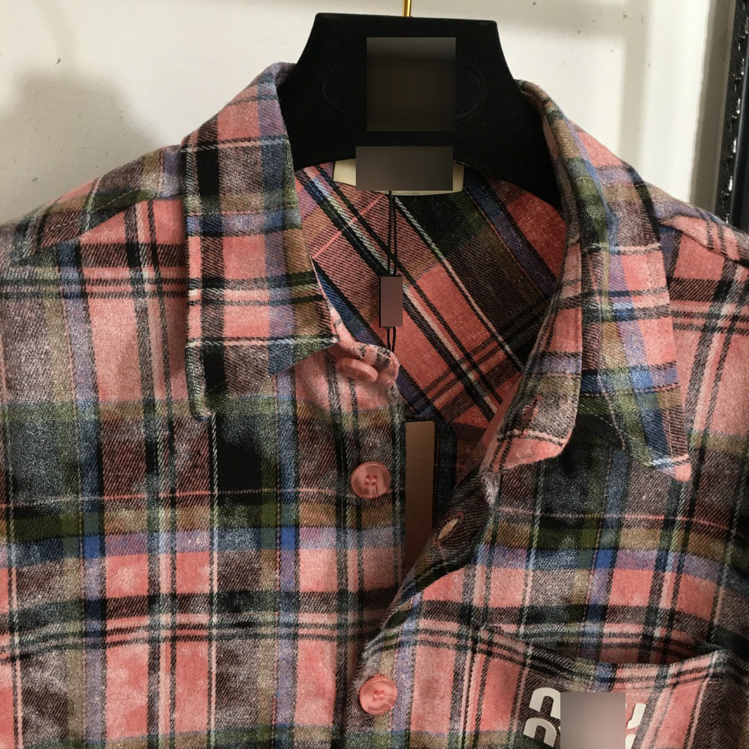 2025년 신상품 레터링 로고 프린트 포켓 배색 체크무늬 빈티지 스타일 긴팔 라펠 카디건 셔츠스토어 가기