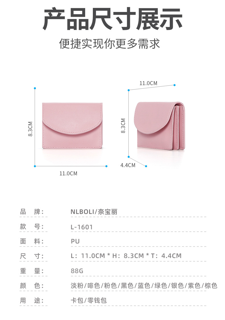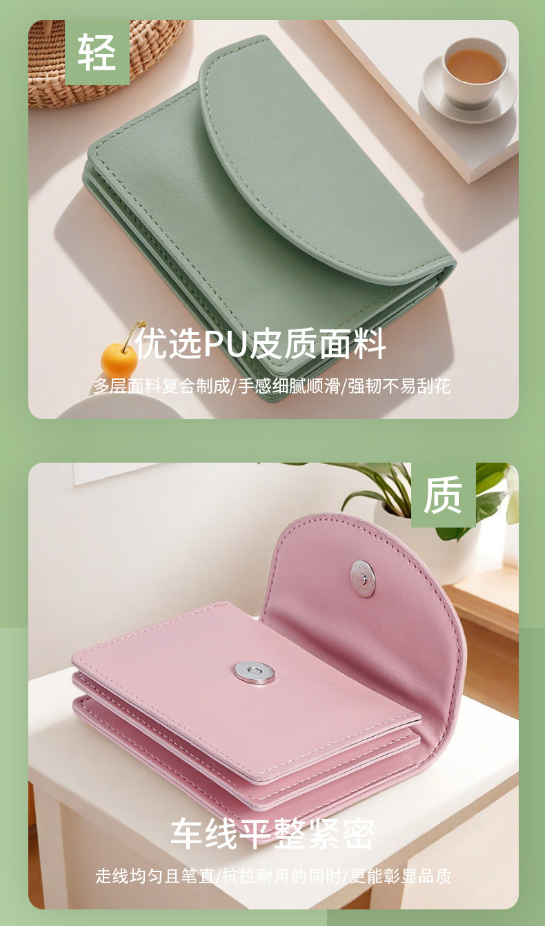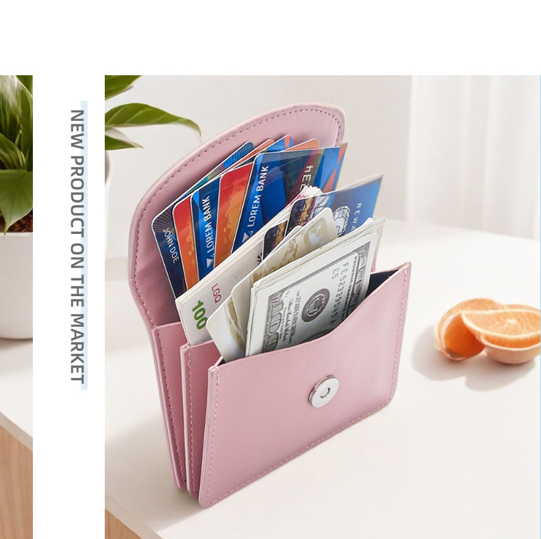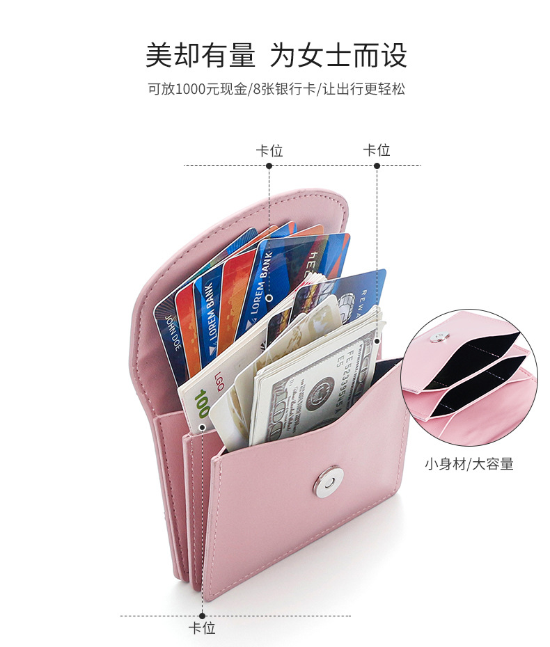 한국 스타일 새로운 여성 지갑, 단색 간단한 카드 가방 다기능 휴대용 가방 대용량 동전 지갑스토어 가기