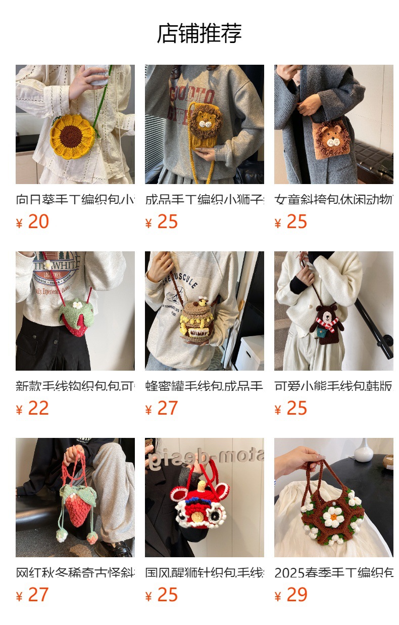 Sean 니트 양모 가방 수제 짠 가방 귀여운 만화 양고기 짠 가방 어깨 크로스 백 여성용스토어 가기