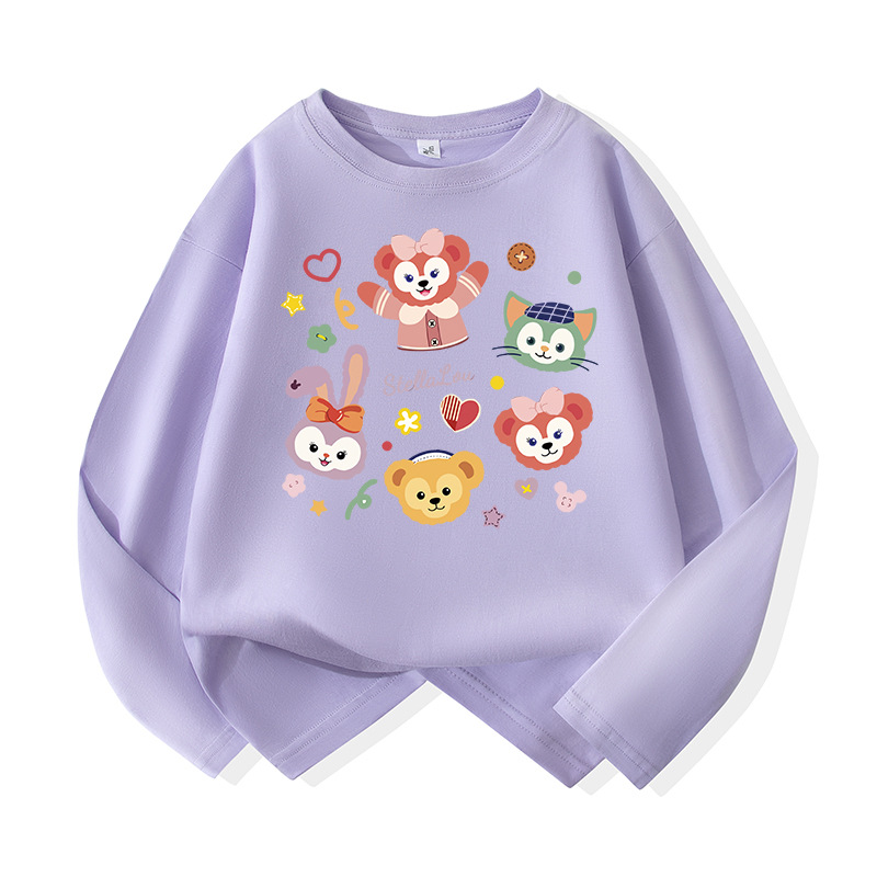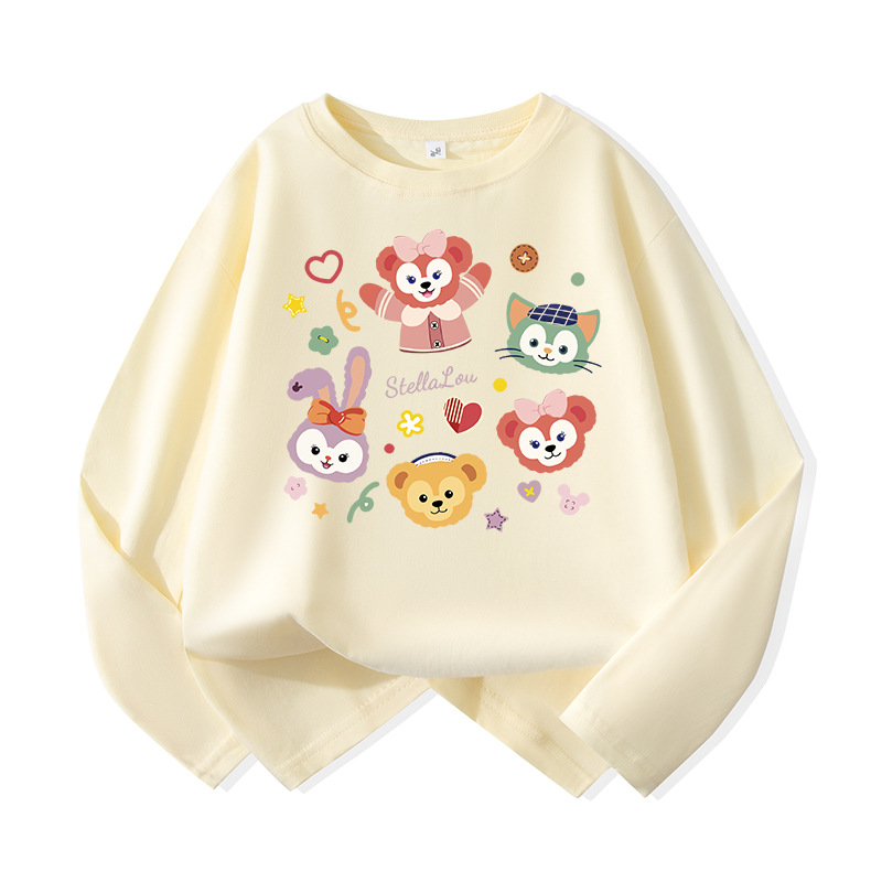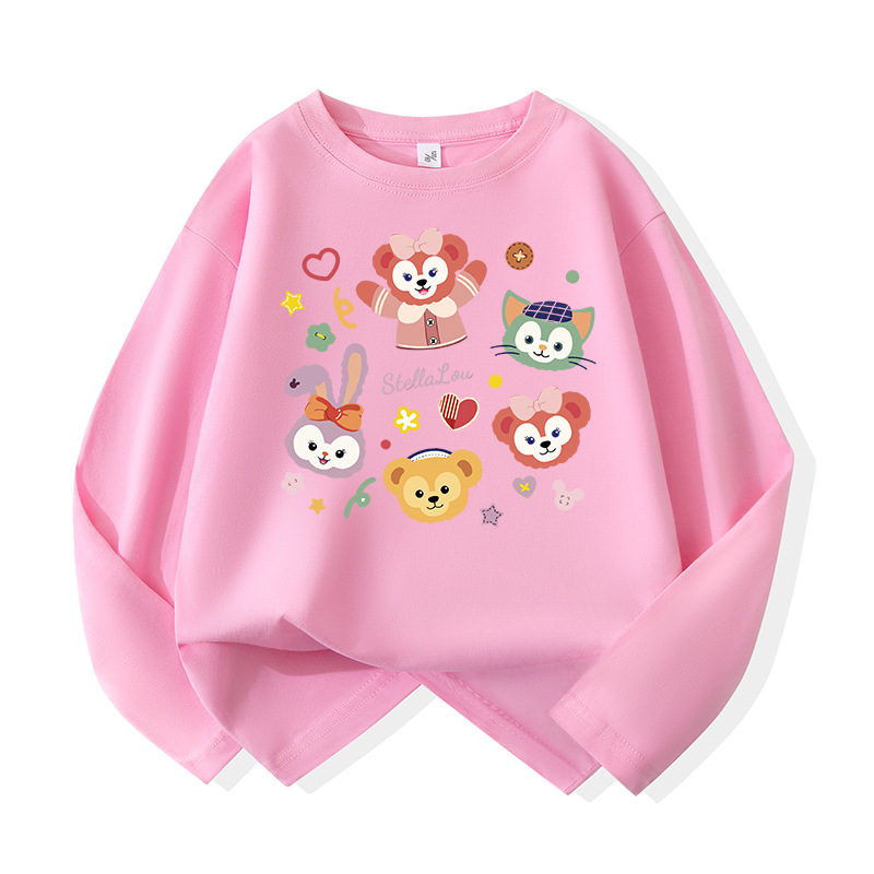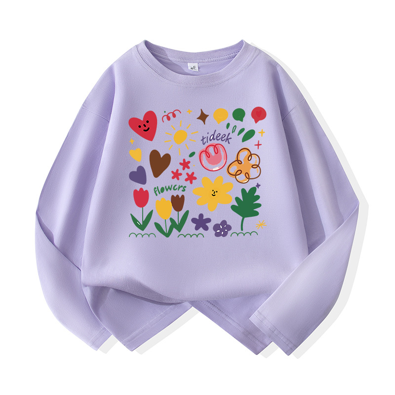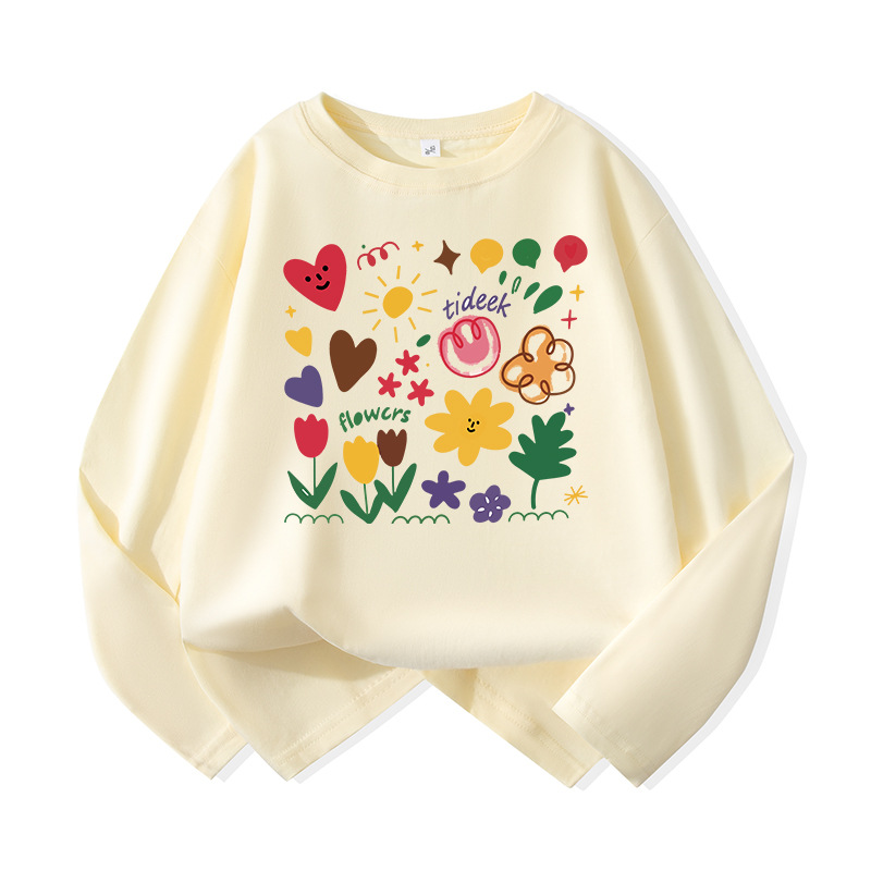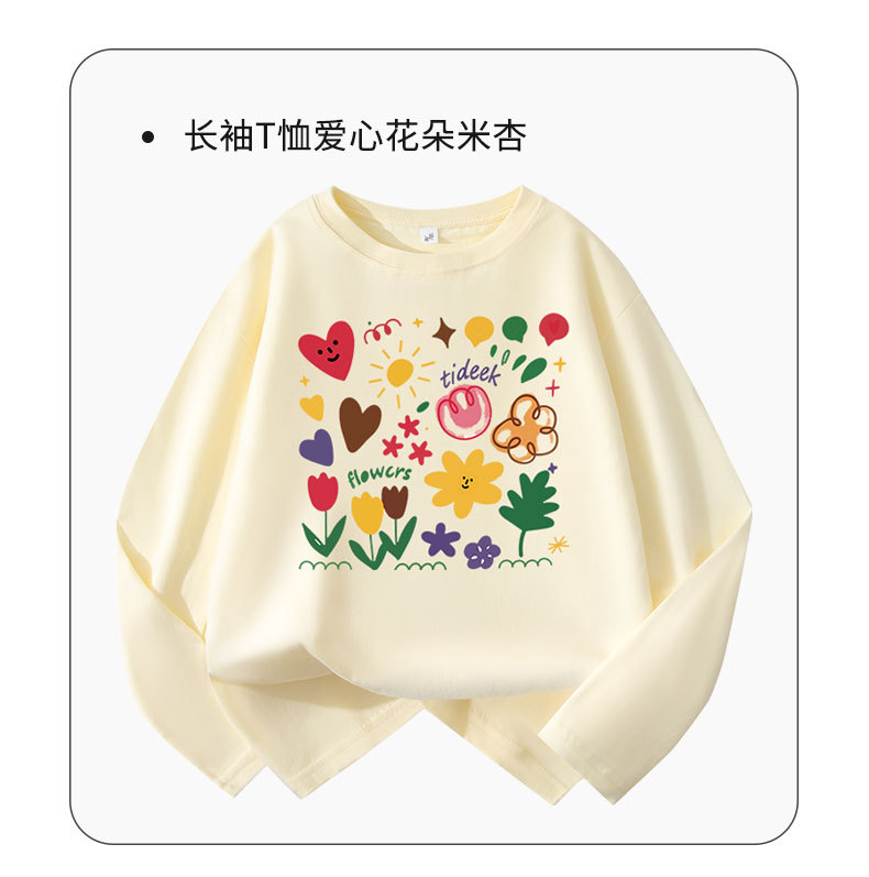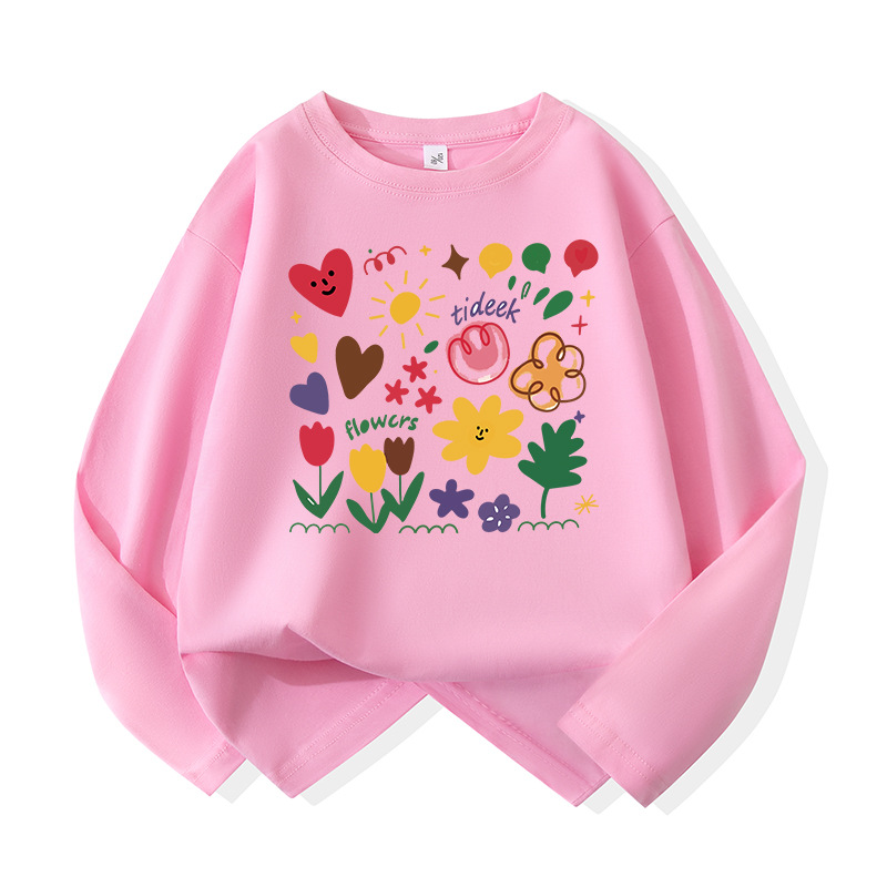 어린이용 순면 긴팔 티셔츠 2026년 신상 중대형 아동용 귀여운 옷 여아용 스타일리쉬 루즈핏 라운드넥 상의