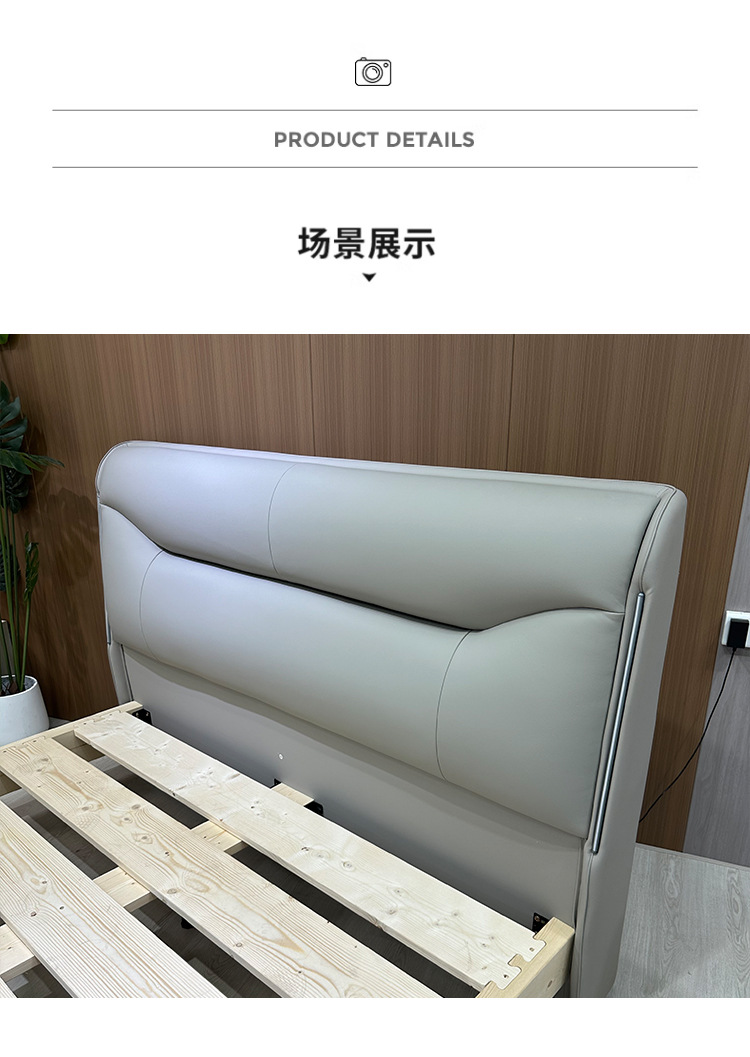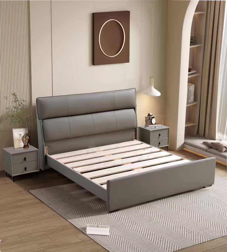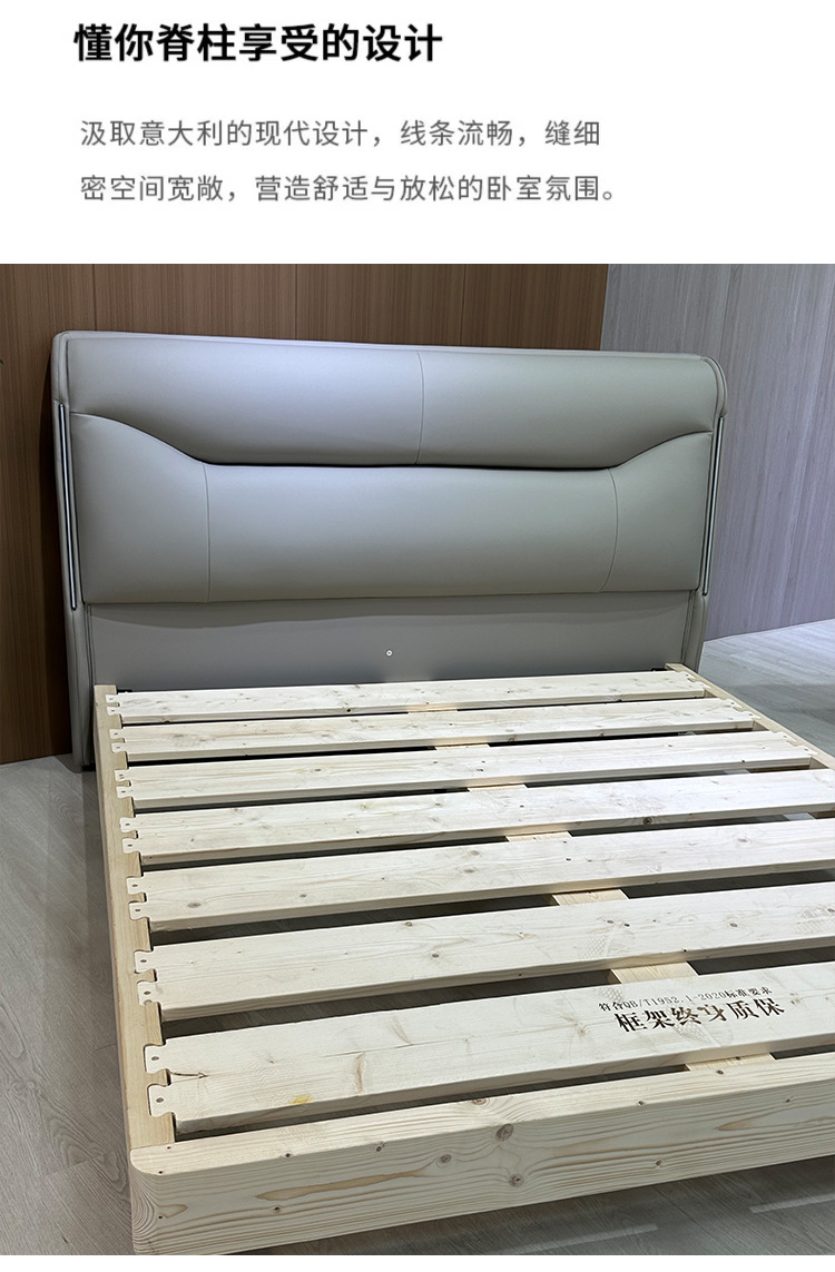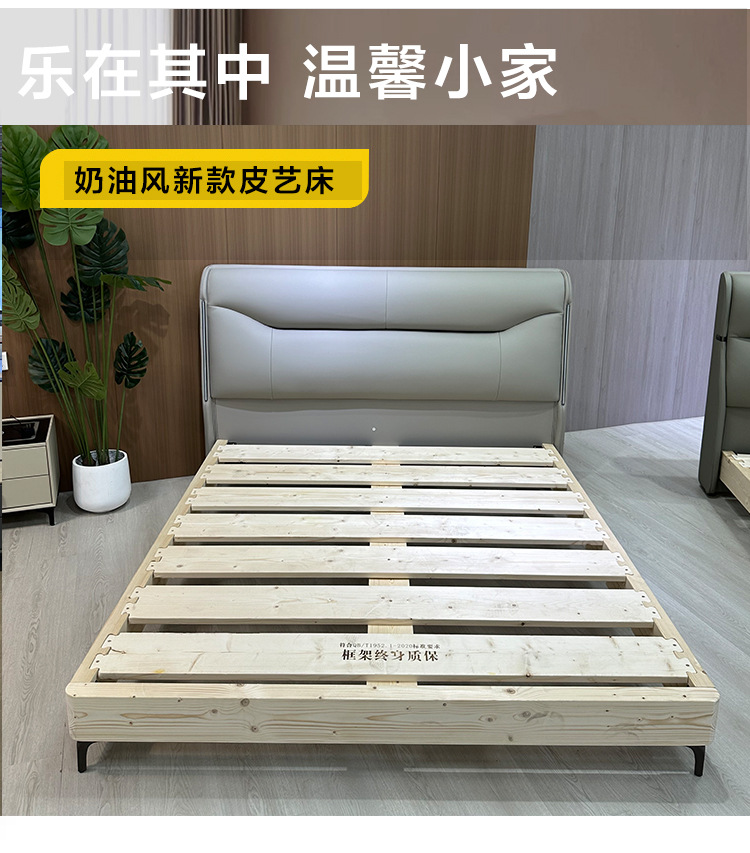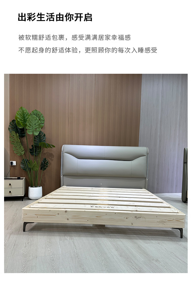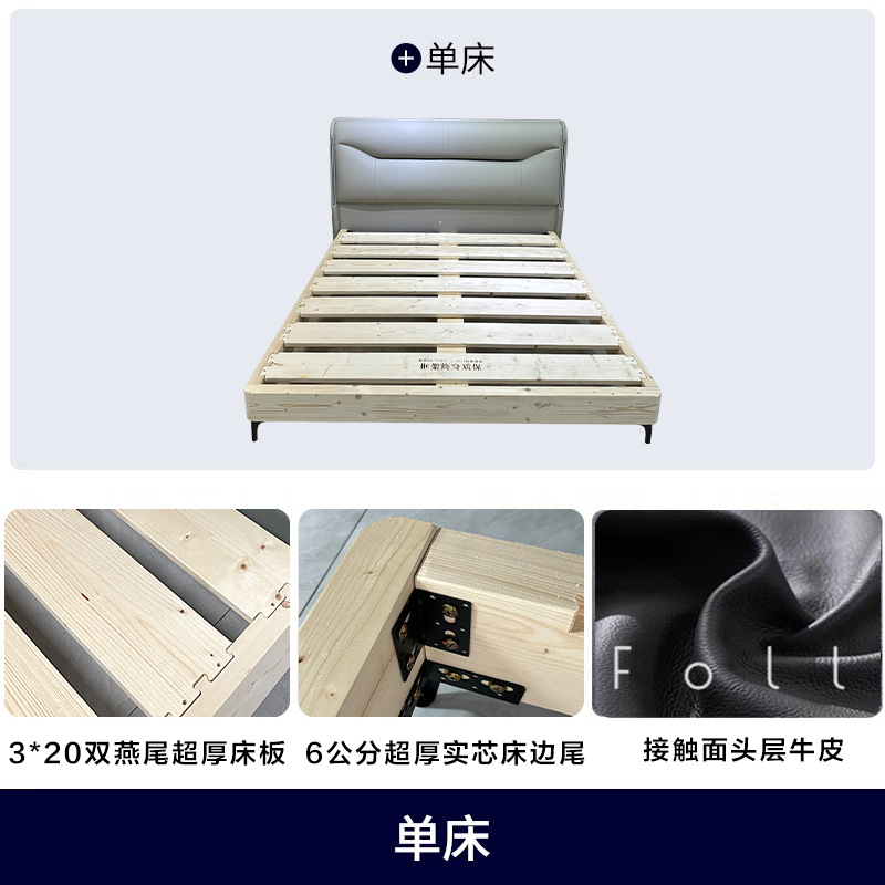 정품 가죽 침대 더블 헤드 레이어 소 가죽 1.8m 마스터 침실 대형 침대 홈 크림 스타일 현대 간단한 하이 엔드 웨딩 침대스토어 가기