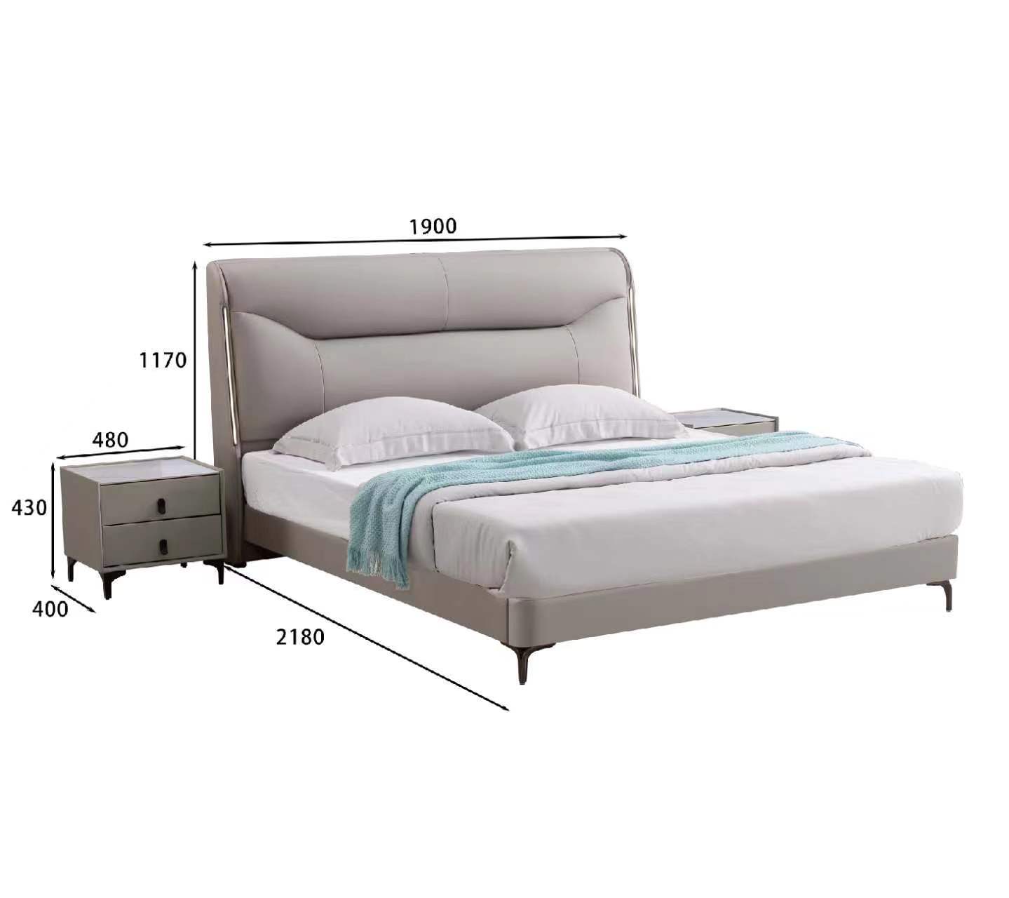정품 가죽 침대 더블 헤드 레이어 소 가죽 1.8m 마스터 침실 대형 침대 홈 크림 스타일 현대 간단한 하이 엔드 웨딩 침대