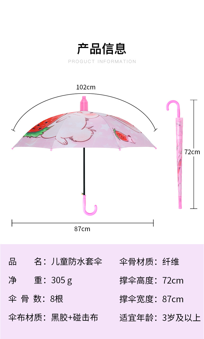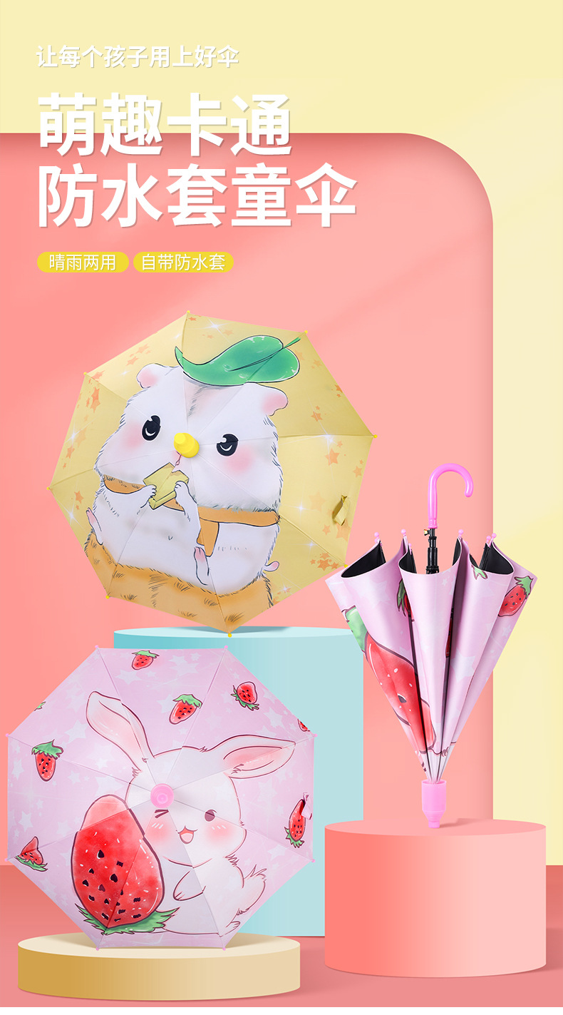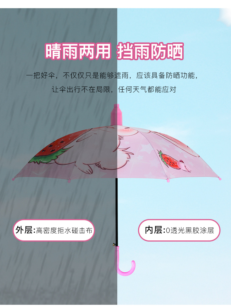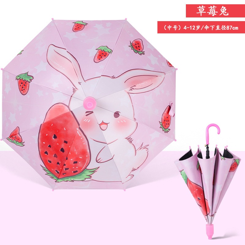 딸기 토끼 만화 어린이 우산 소년 소녀 안전 방수 자동 긴 손잡이 우산 도매 안전 우산스토어 가기