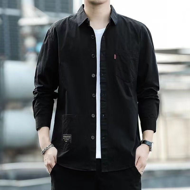 봄 새 셔츠 남자의 긴팔 작업복 셔츠 남자의 단색 캐주얼 탑 남자의 얇은 하이 엔드 셔츠스토어 가기