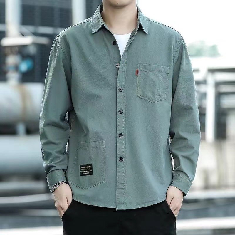 봄 새 셔츠 남자의 긴팔 작업복 셔츠 남자의 단색 캐주얼 탑 남자의 얇은 하이 엔드 셔츠