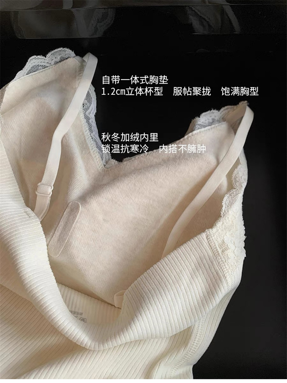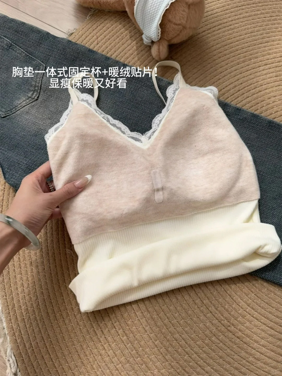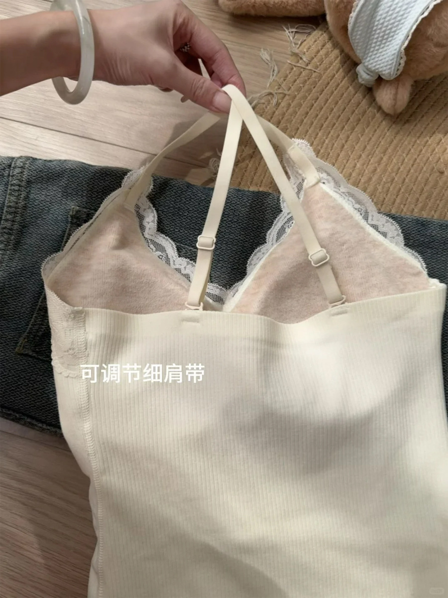 가슴 패드가 고정된 여성용 가을 겨울 캐시미어 레이스 서스펜더 보온 조끼, 두꺼운 따뜻한 이너 레이어, 슬림 보온 의류스토어 가기