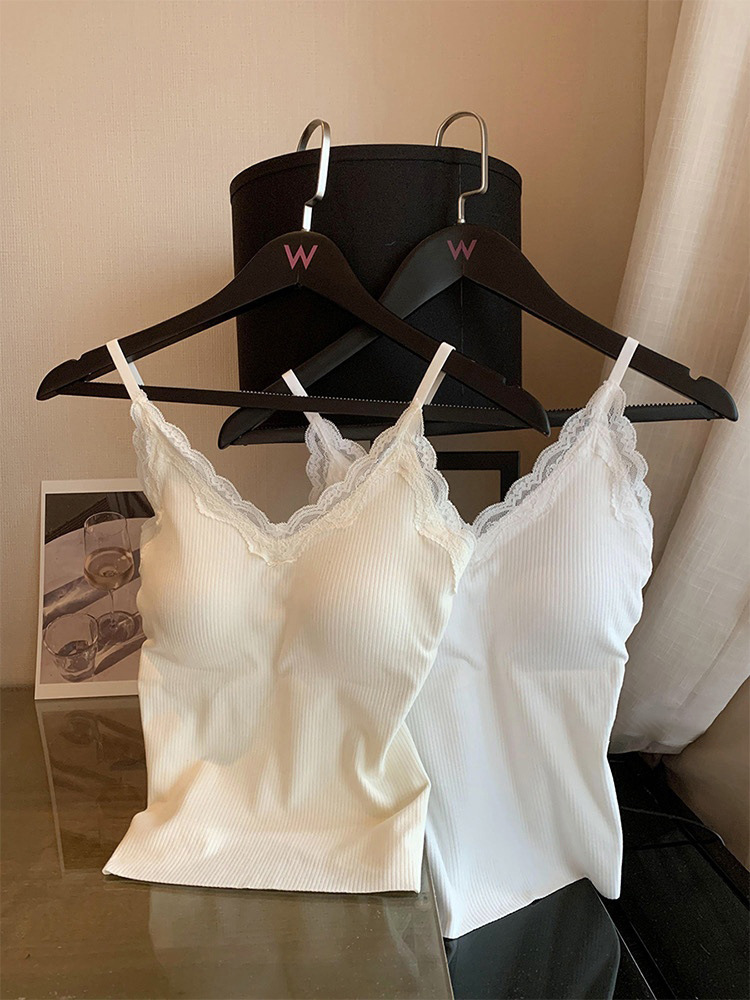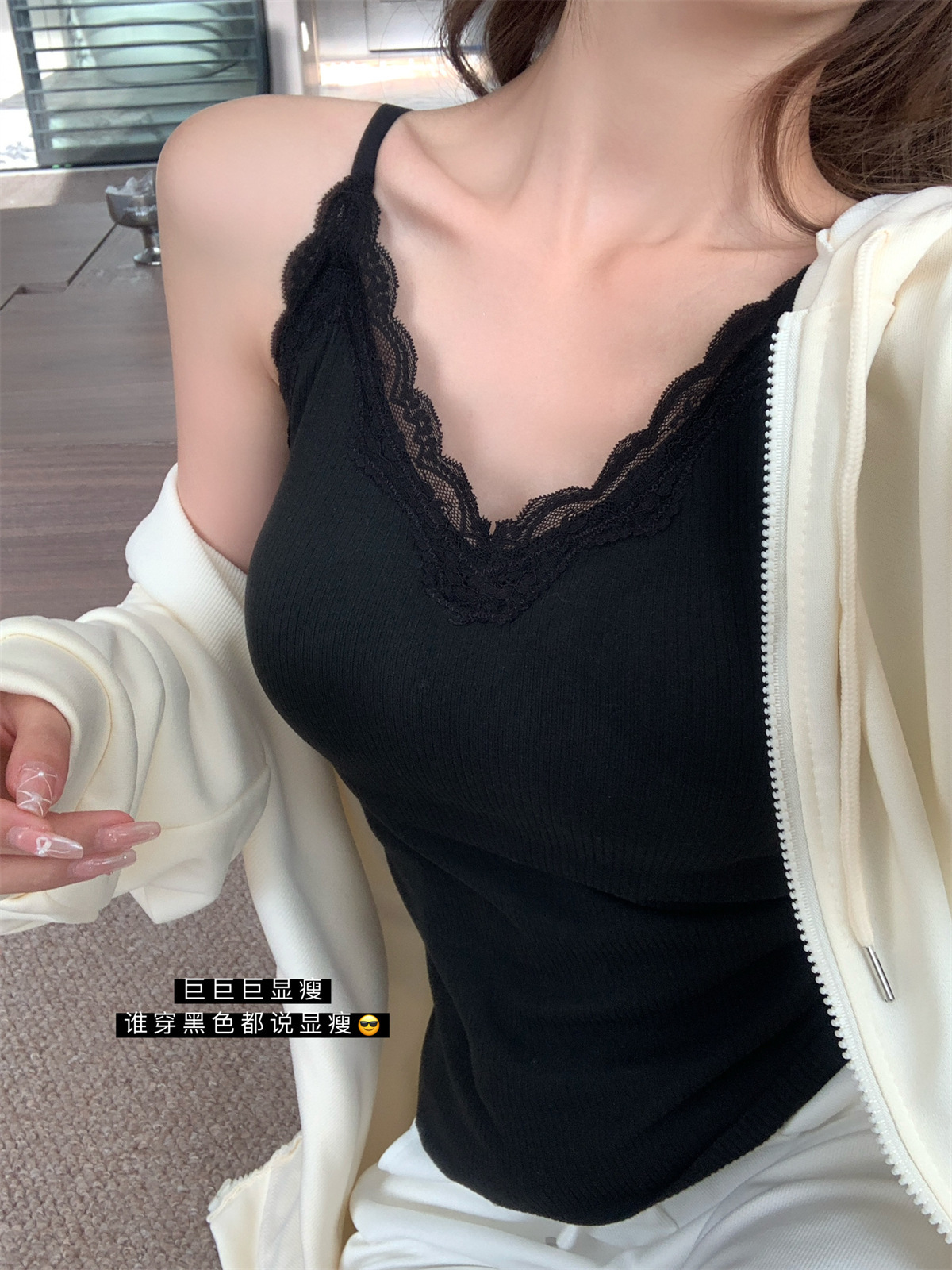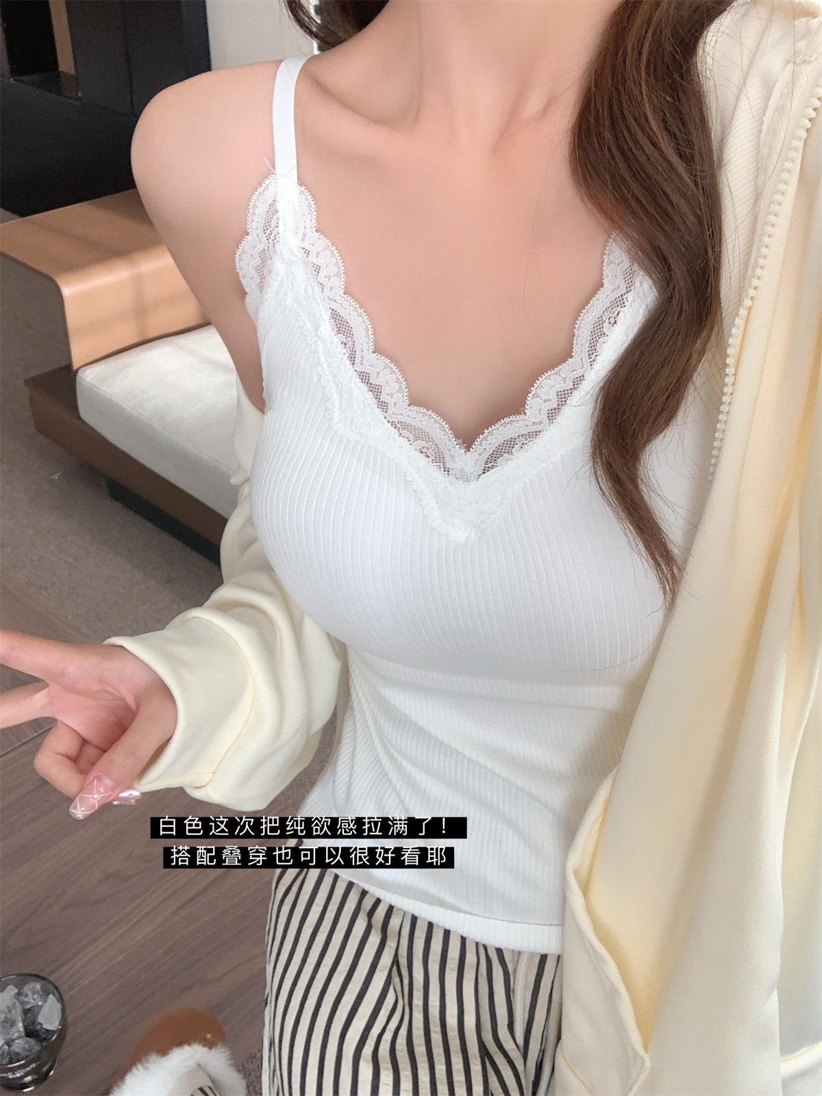 가슴 패드가 고정된 여성용 가을 겨울 캐시미어 레이스 서스펜더 보온 조끼, 두꺼운 따뜻한 이너 레이어, 슬림 보온 의류스토어 가기