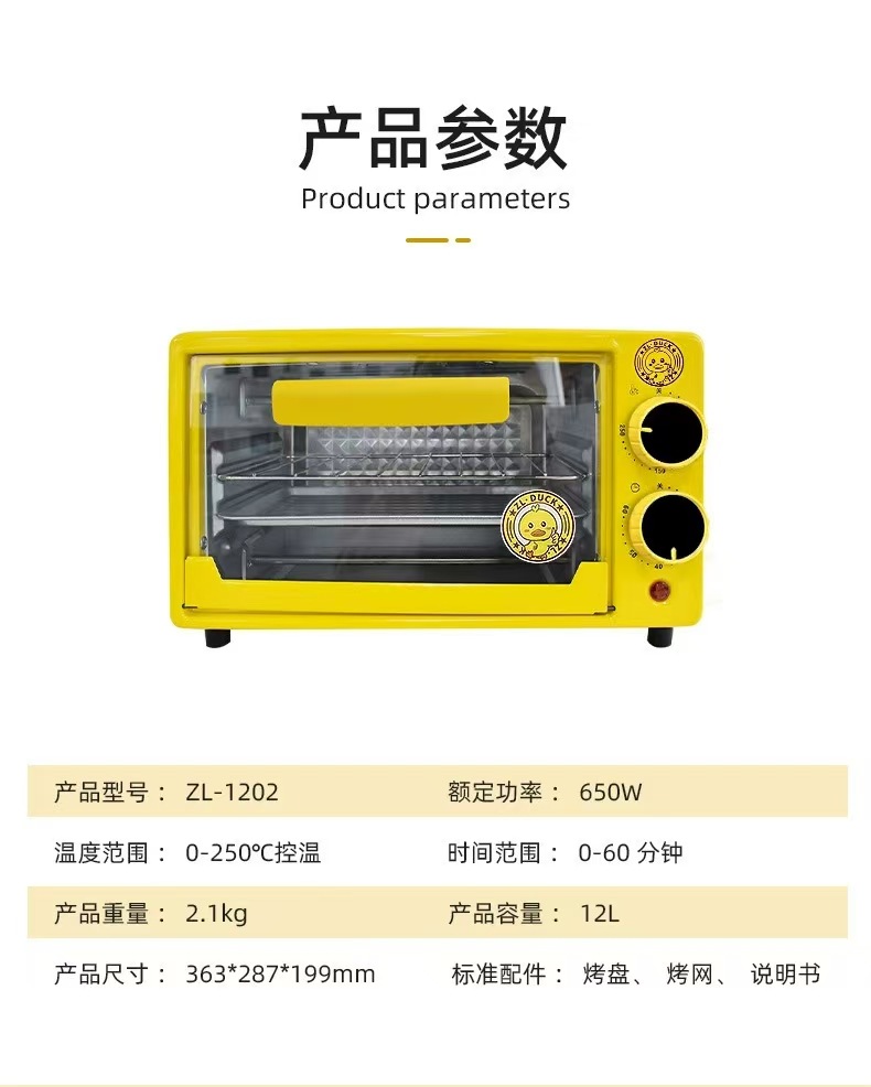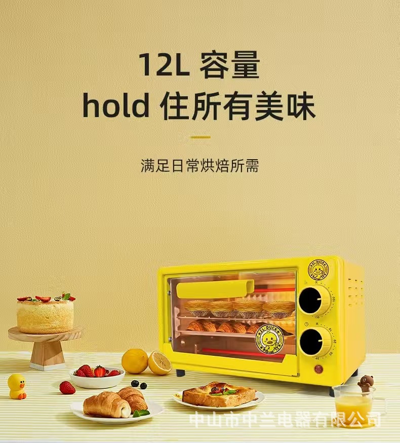 작은 노란색 오리 가정용 오븐 다기능 미니 12L 베이킹 오븐 선물 도매 타이밍 작은 오븐스토어 가기