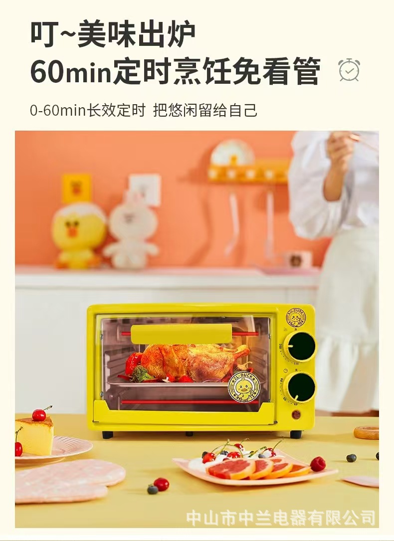 작은 노란색 오리 가정용 오븐 다기능 미니 12L 베이킹 오븐 선물 도매 타이밍 작은 오븐
