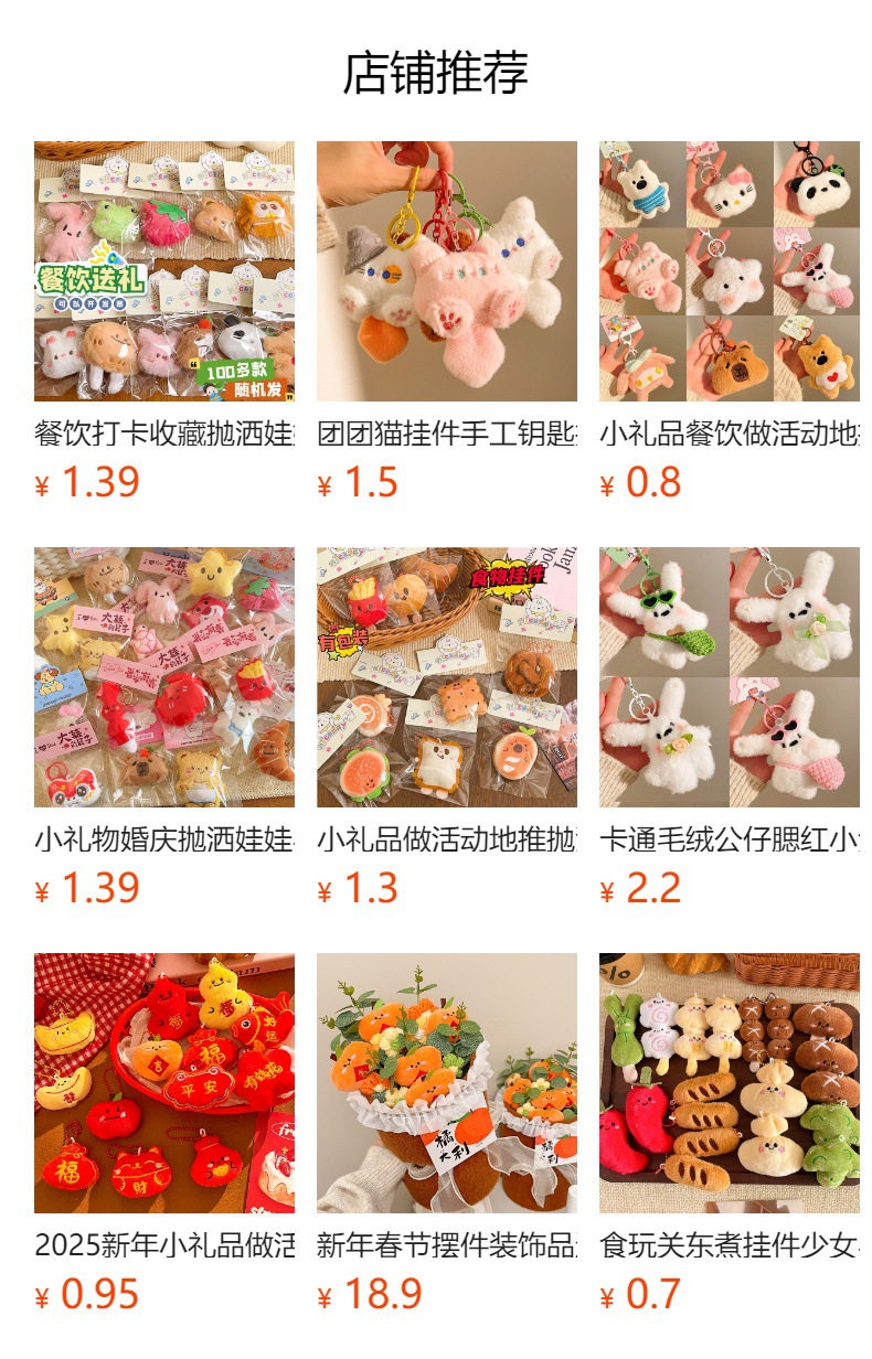 행사 홍보용 작은 선물, 야시장 판매용 귀여운 봉제 인형 키링, 장식용 인형, 배낭 인형, 열쇠고리스토어 가기
