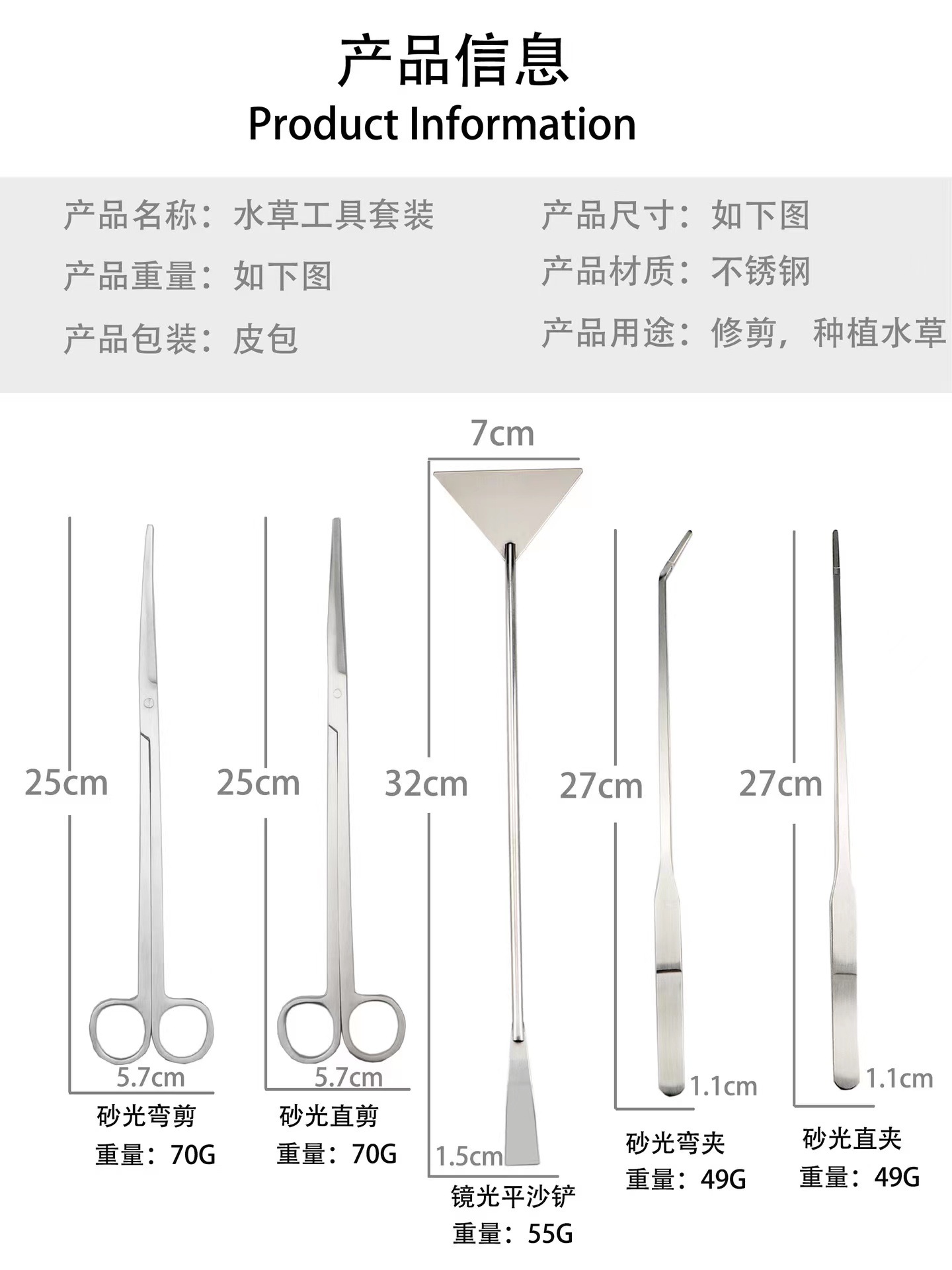 스테인리스 수초 가위, 수초 수조 해초 다듬기 도구 세트, 수초 가위 4종 세트, 도구 세트
