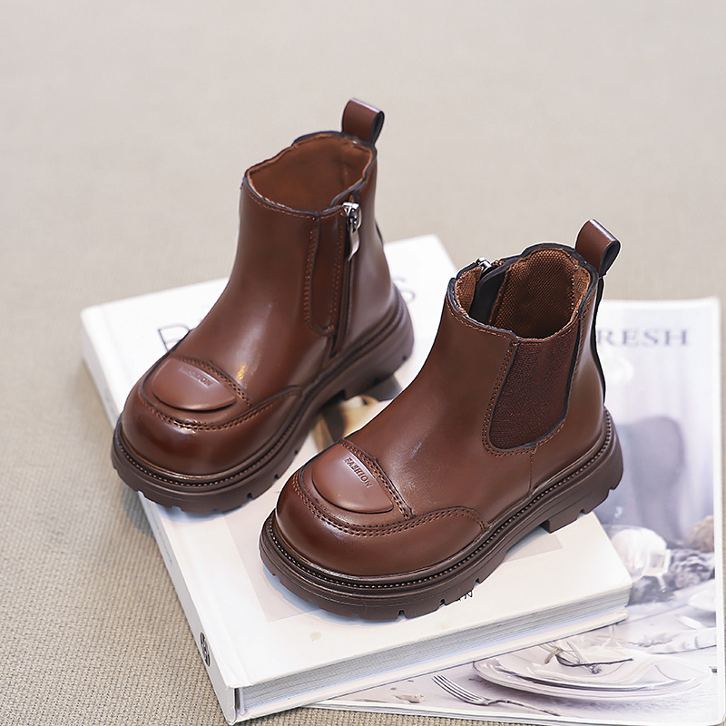 소녀 부츠 작은 짧은 부츠 2024 새로운 봄과 가을 검은 어린이 마틴스 기모 여성 보물 신발 가을 겨울 가죽 신발