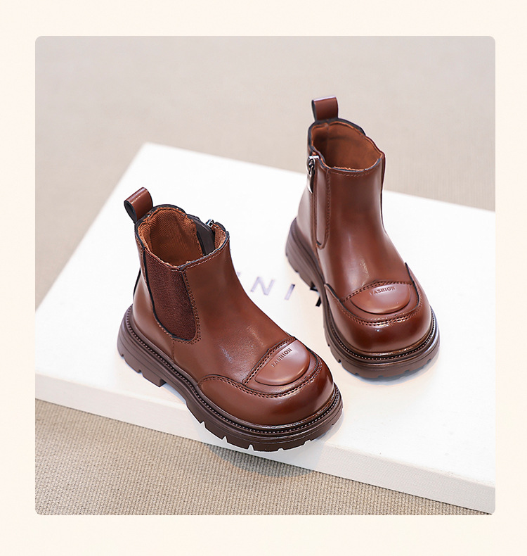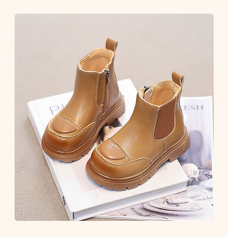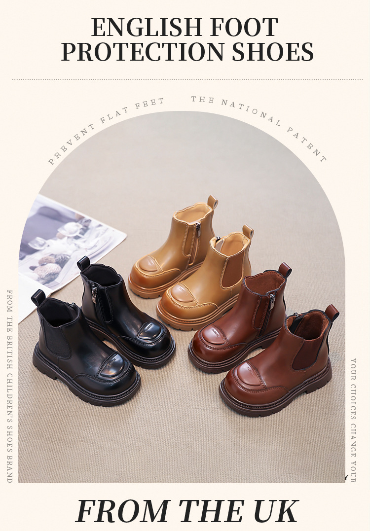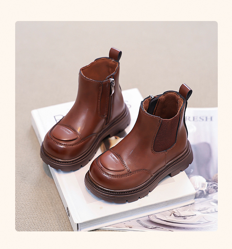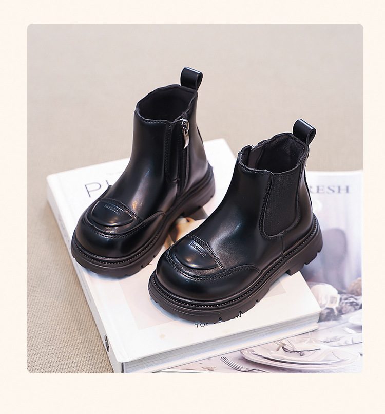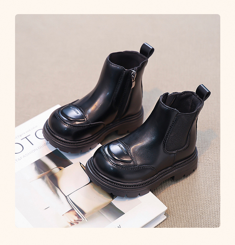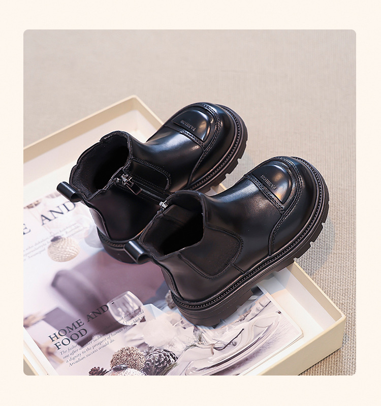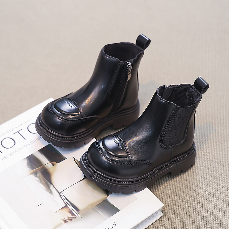 소녀 부츠 작은 짧은 부츠 2024 새로운 봄과 가을 검은 어린이 마틴스 기모 여성 보물 신발 가을 겨울 가죽 신발스토어 가기