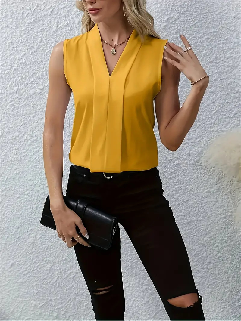 (재고 있음) 유럽 및 미국 해외 여성 의류 독립 사이트 인기 상품 브이넥 민소매 탑 봄 여름 단색 셔츠 상의