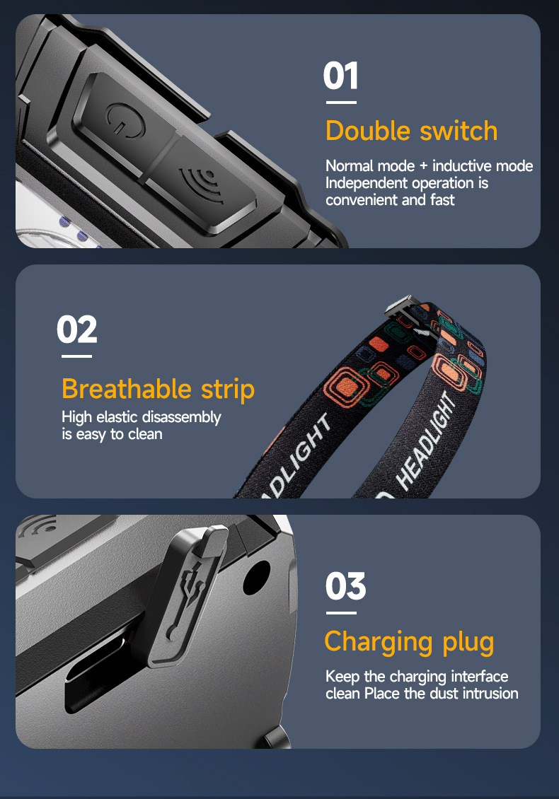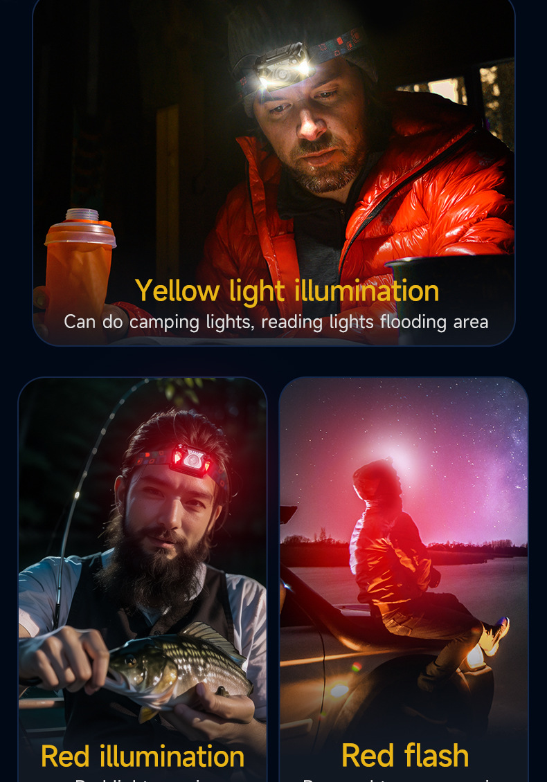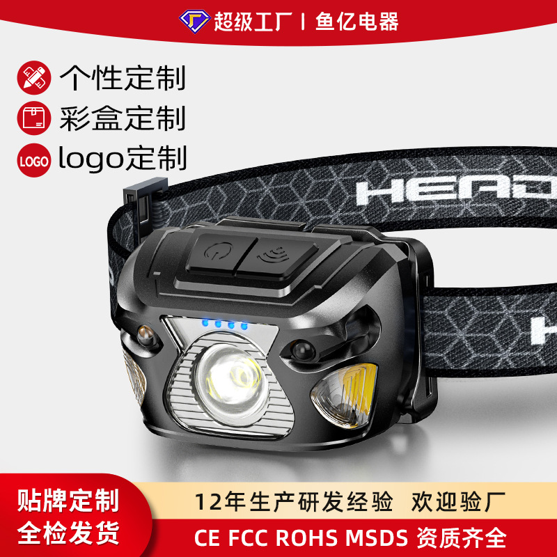 강한 빛 led 유도 usb 충전 긴 수명 낚시 헤드 라이트 미니 빨간 머리 장착 야외 승마 작업 조명