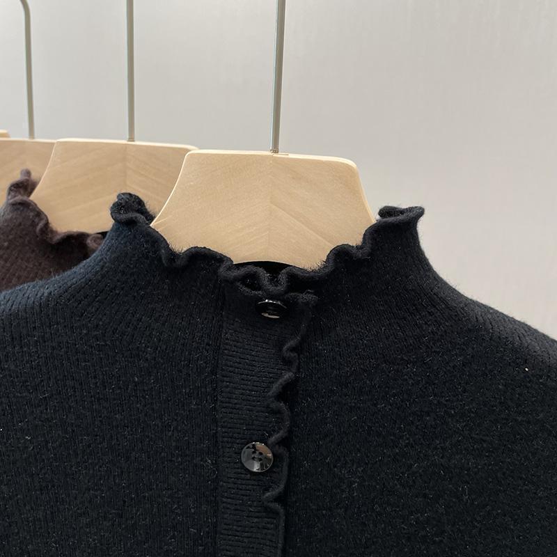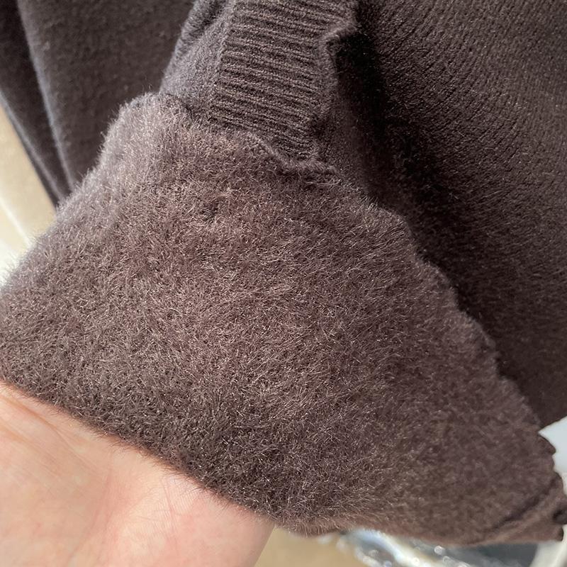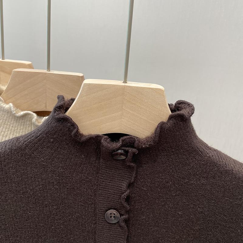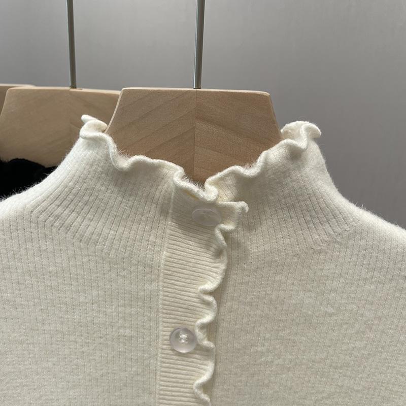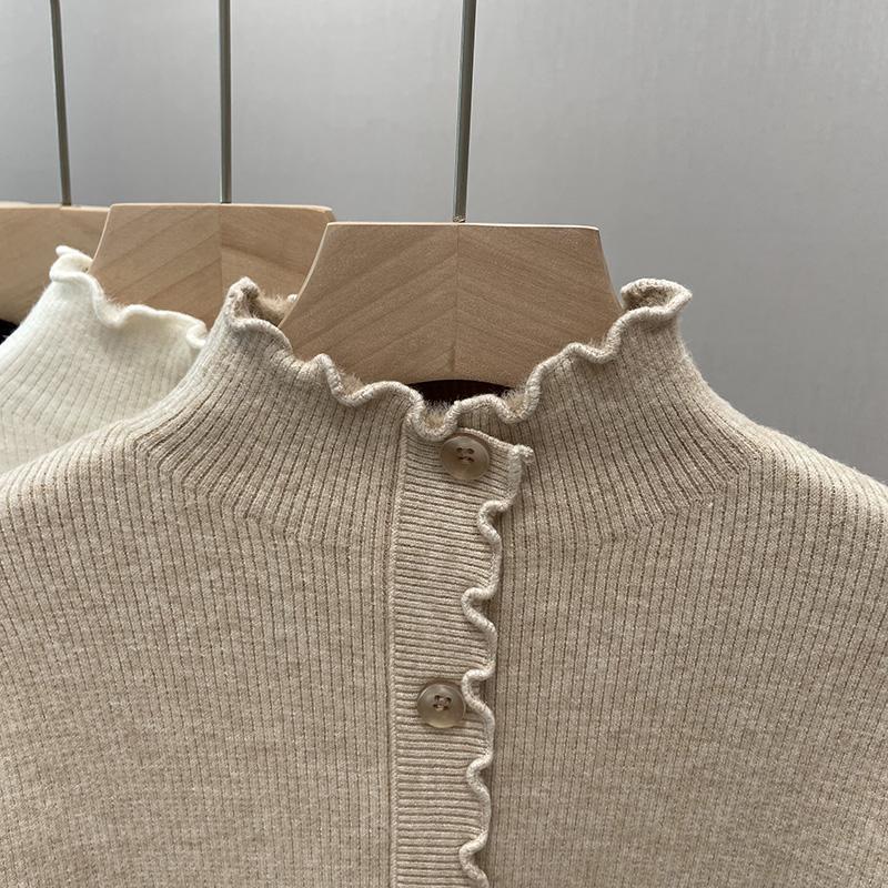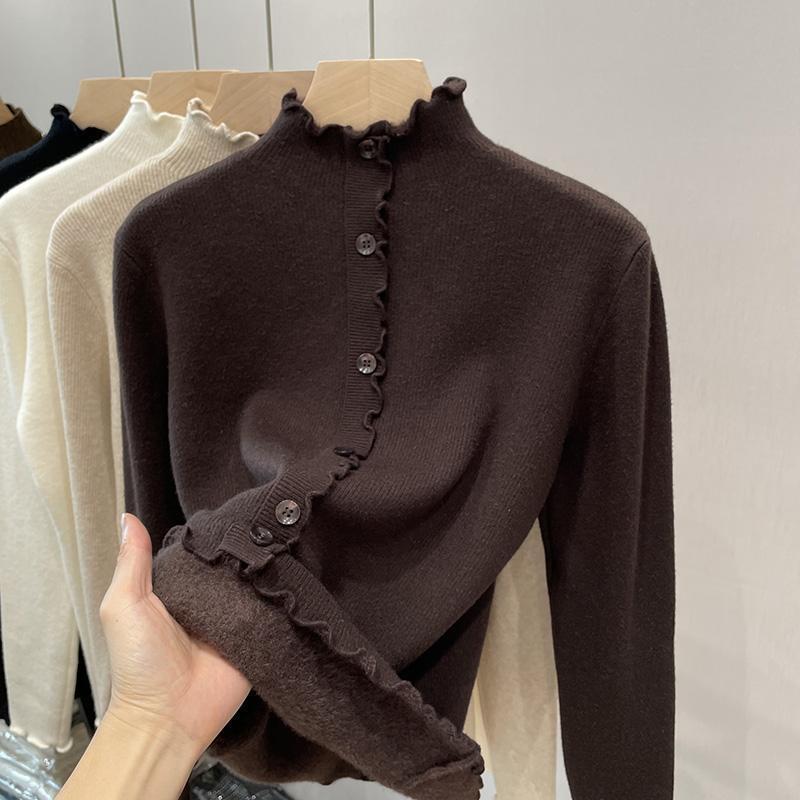 귀 테두리가있는 두꺼운 스웨터 여자 원피스 벨벳 가을 및 겨울 뉴 기모 하프 터틀넥 내베이스 셔츠 올 매치 탑스토어 가기