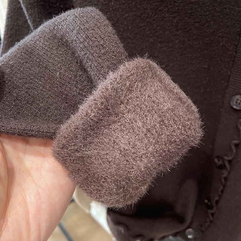 귀 테두리가있는 두꺼운 스웨터 여자 원피스 벨벳 가을 및 겨울 뉴 기모 하프 터틀넥 내베이스 셔츠 올 매치 탑