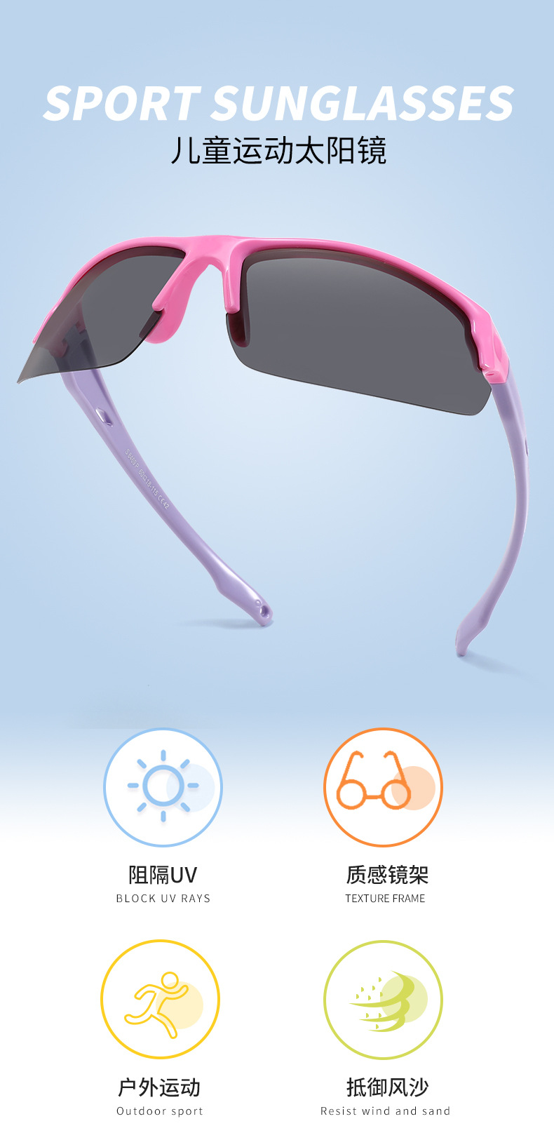 3~12세 어린이를 위한 야외 자외선 차단 및 자외선 차단 편광 어린이 사이클링 패션 선글라스 S8469스토어 가기