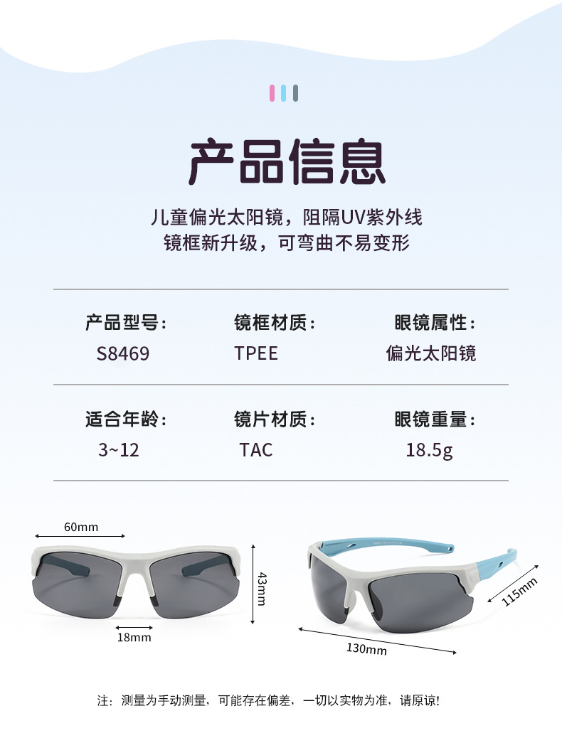 3~12세 어린이를 위한 야외 자외선 차단 및 자외선 차단 편광 어린이 사이클링 패션 선글라스 S8469