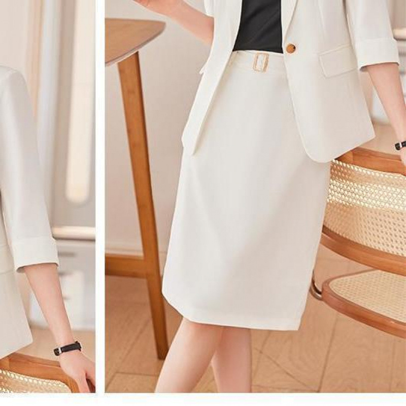 • 흰색 정장 + 흰색 미디 스커트