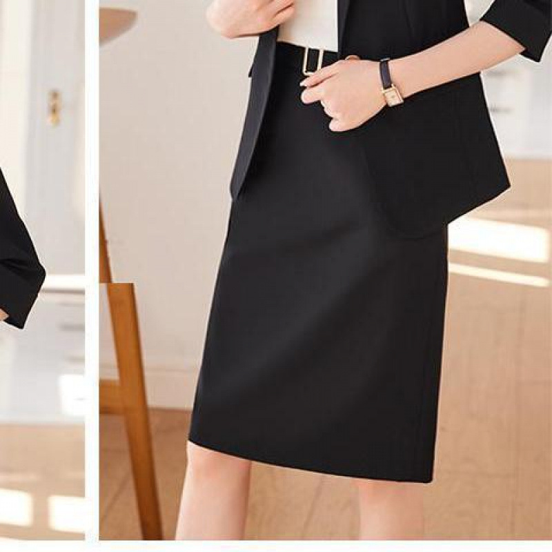 • 검은색 양복 + 검은색 미디 스커트