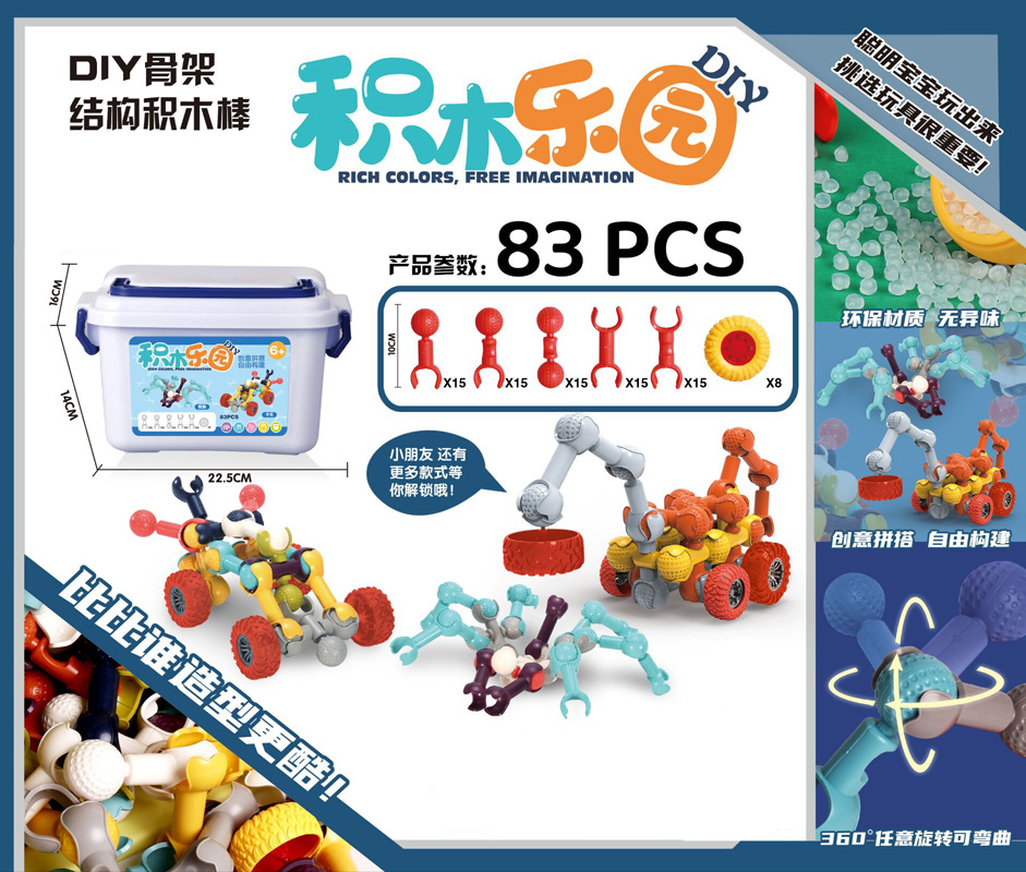 국경 간 어린이 다양한 해골 공동 건물 블록 다기능 대형 입자 DIY 조립 된 교육 완구스토어 가기