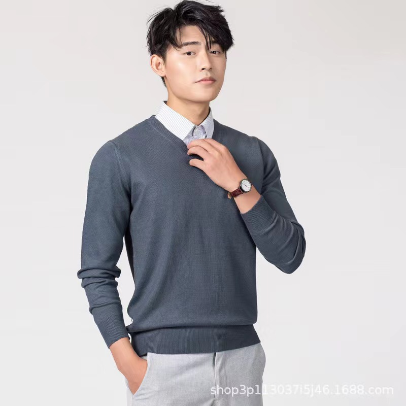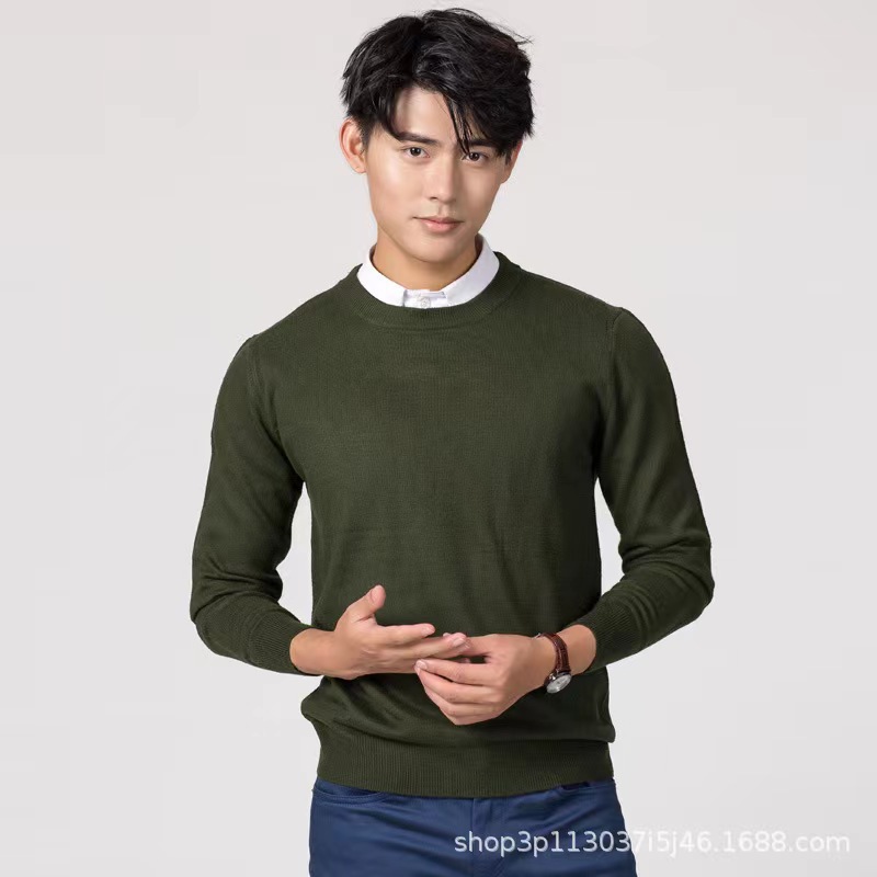 2024 국경 가을/겨울 새로운 한국 남자 크루 넥 플러스 사이즈 울 스웨터 니트 느슨한 솔리드 컬러 남성 스웨터베이스