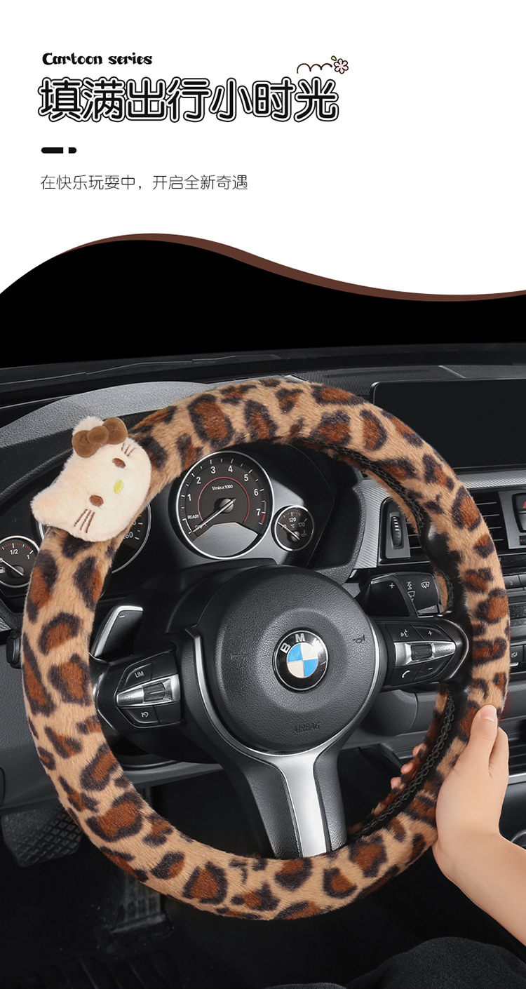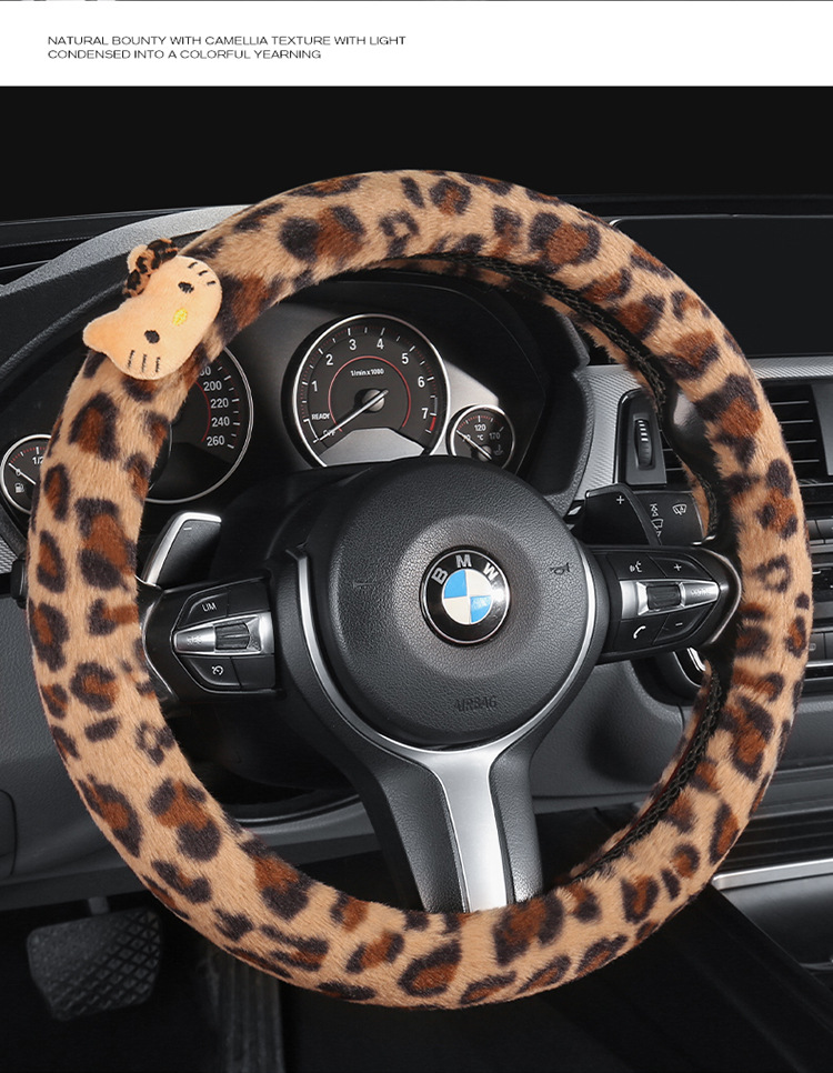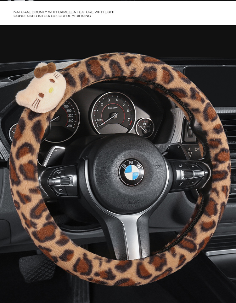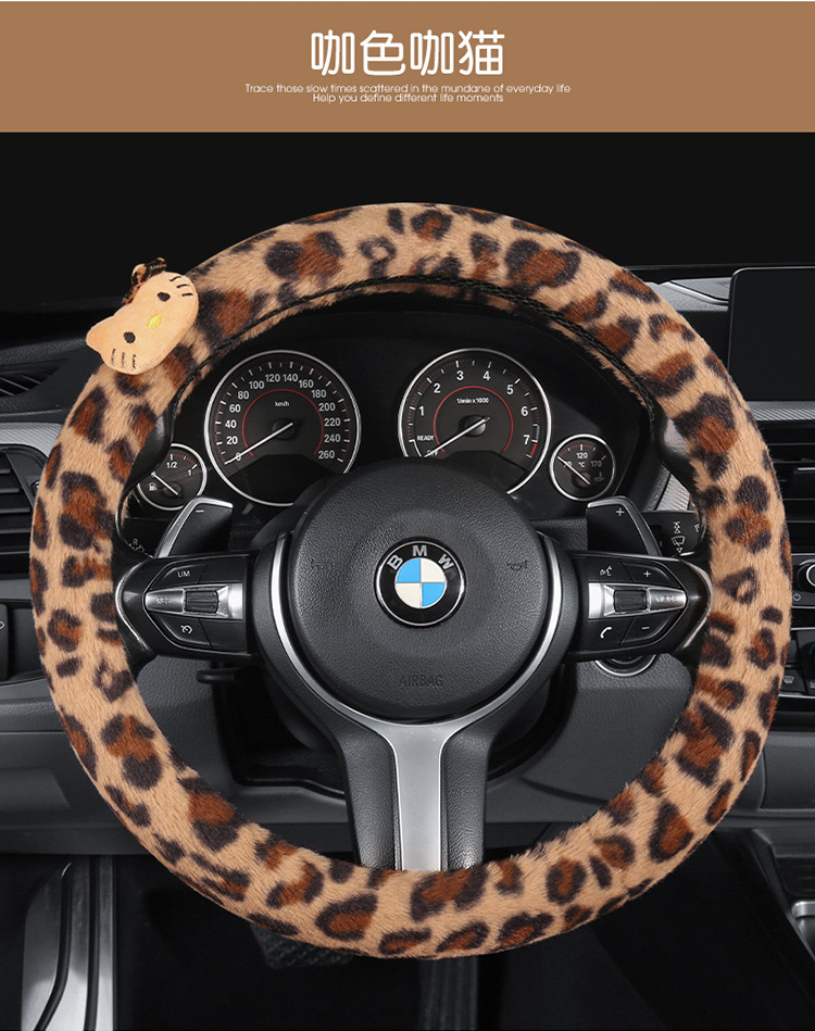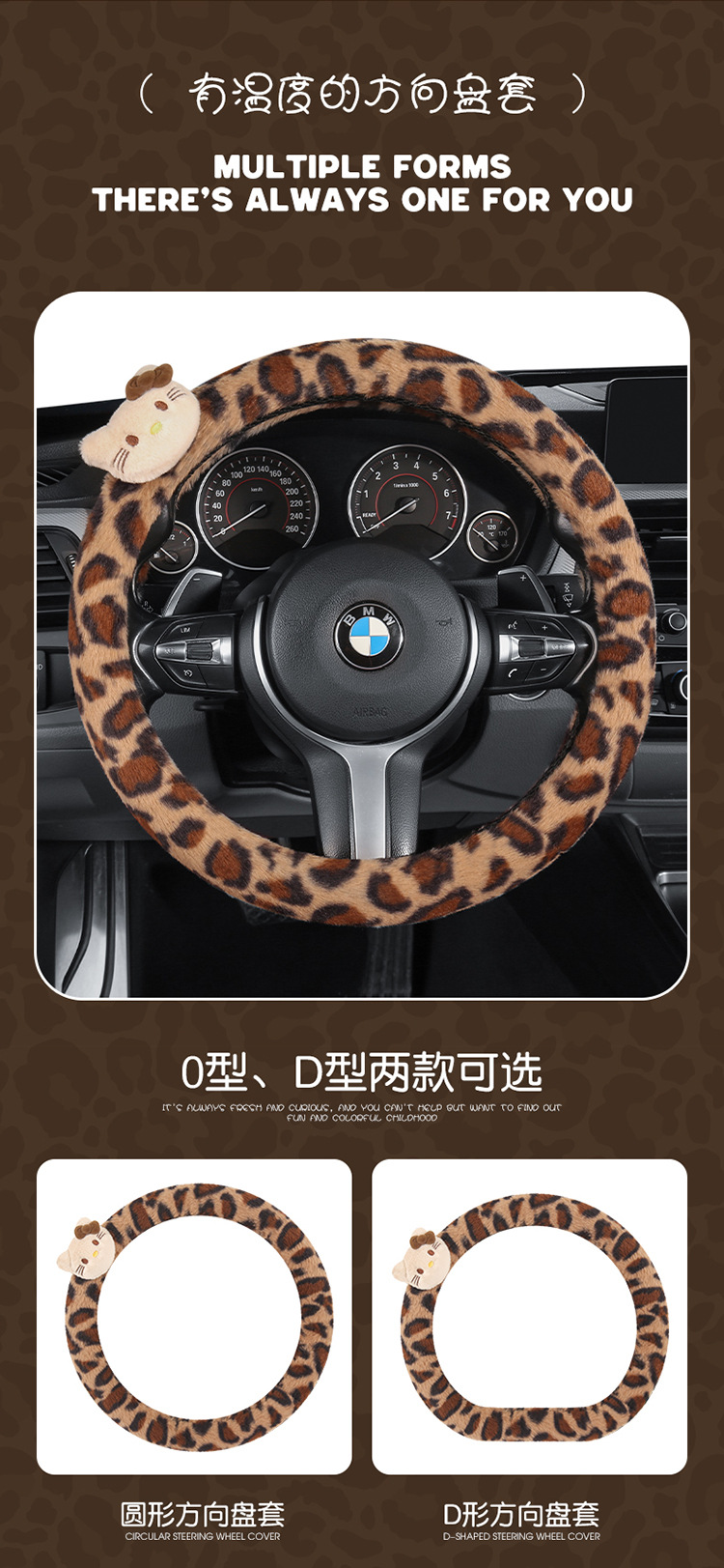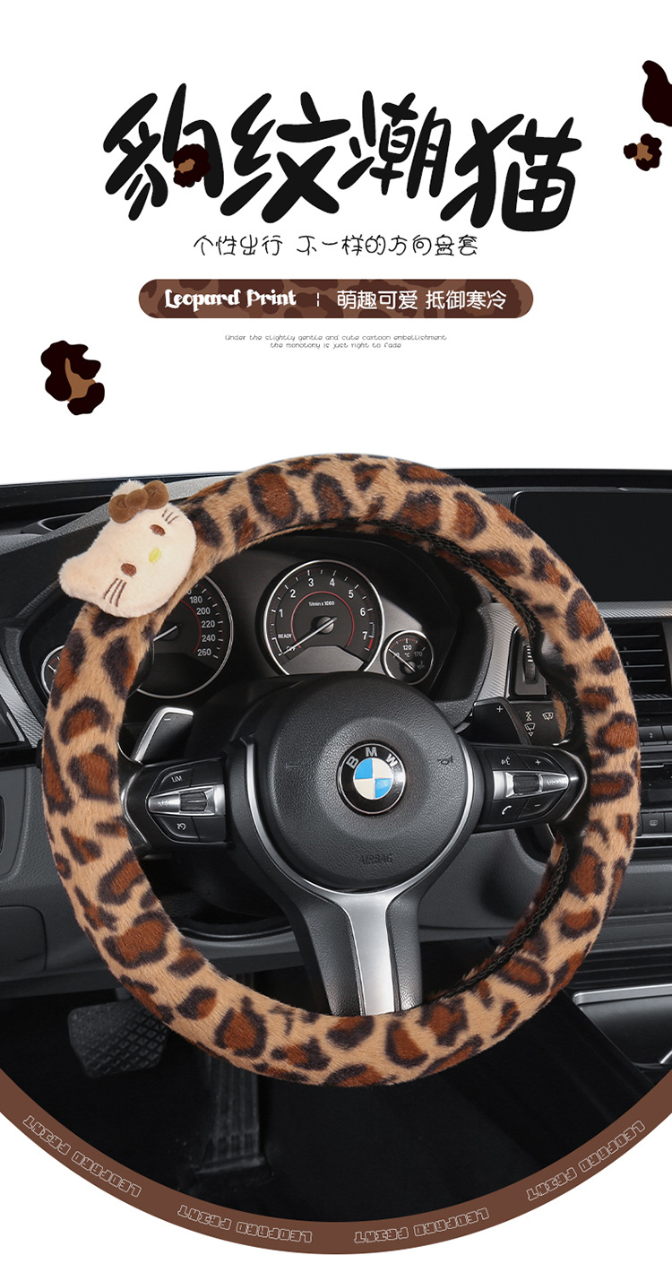 24 년 새로운 레오파드 무늬 플러시 따뜻한 겨울 자동차 스티어링 휠 커버 자동차 액세서리 자동차 액세서리 공장 도매스토어 가기