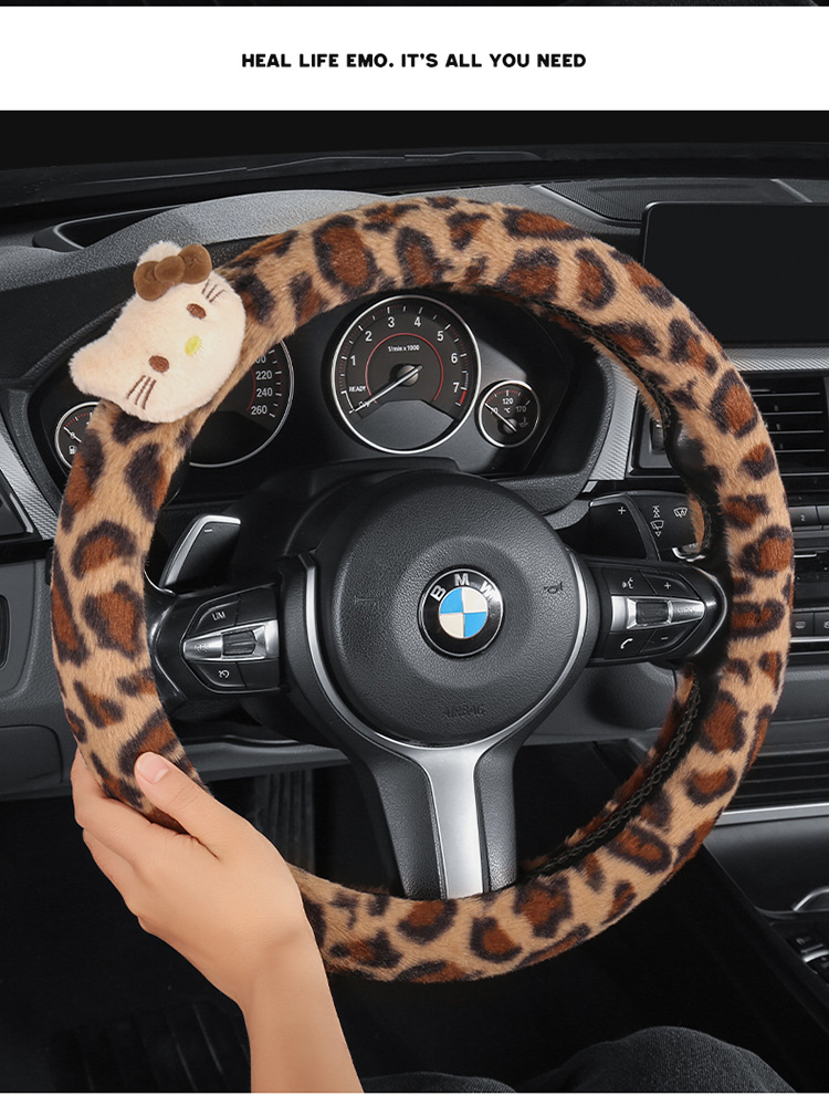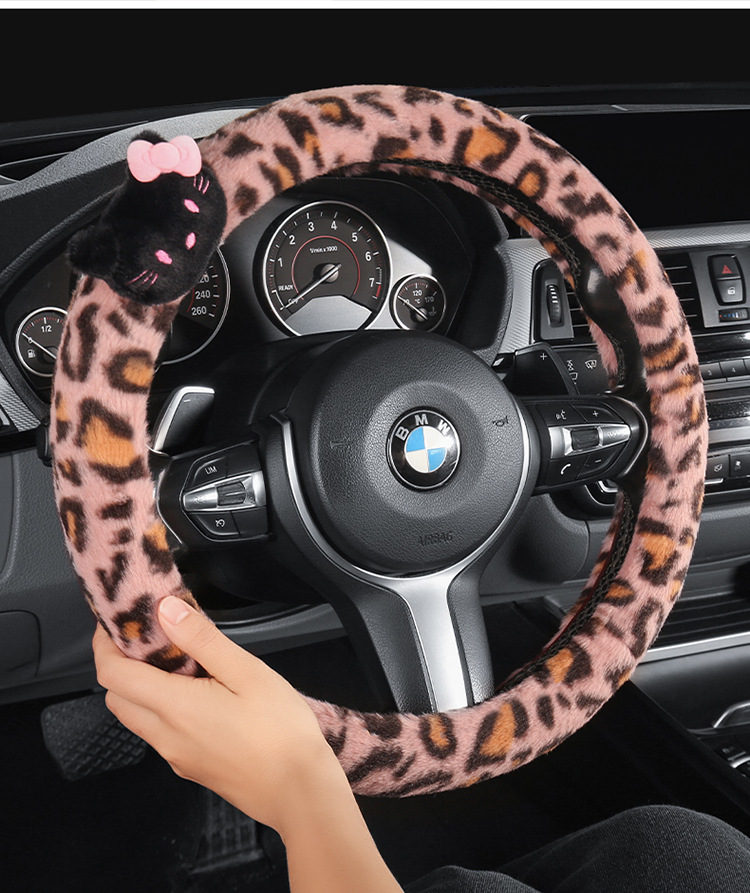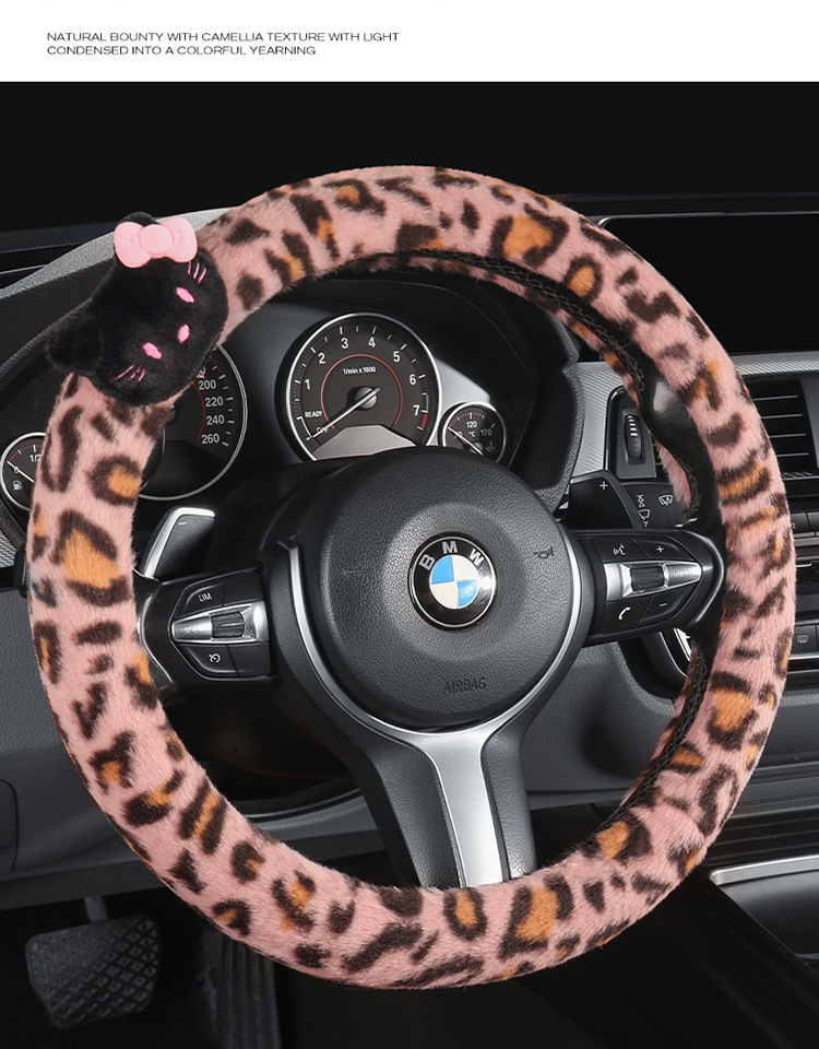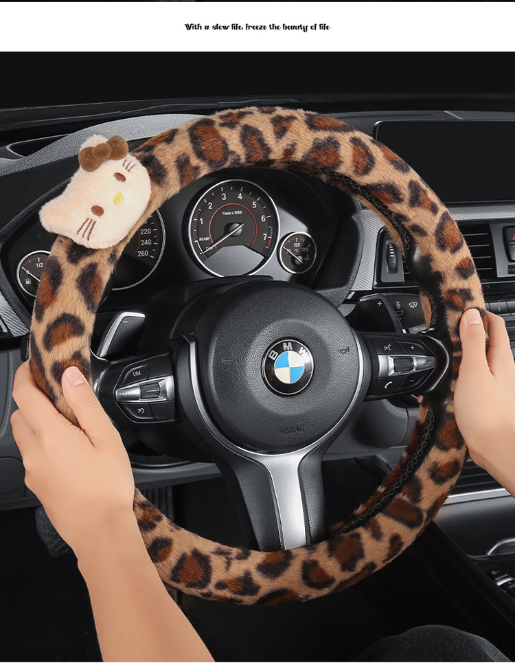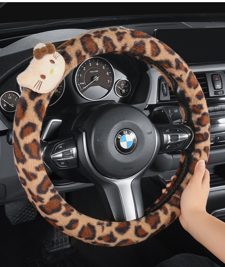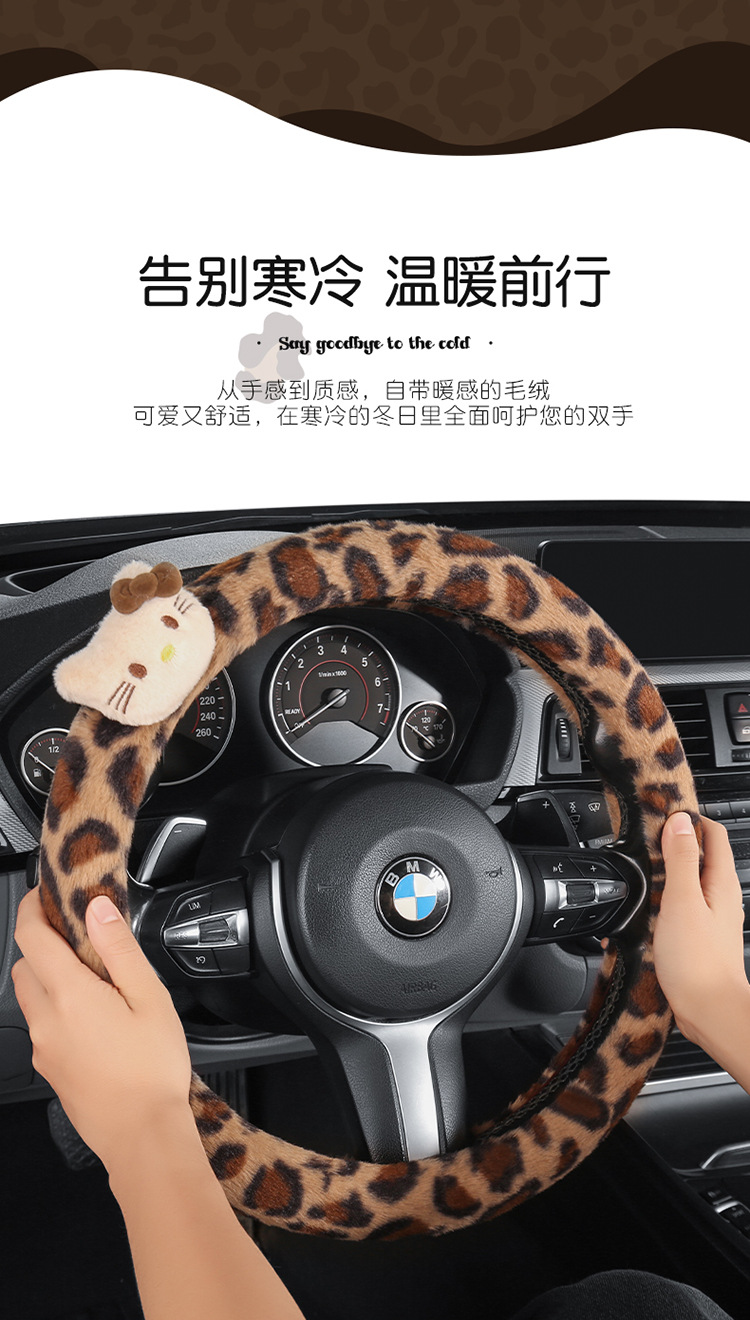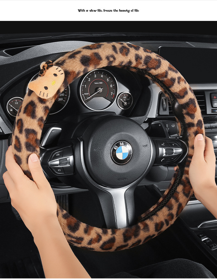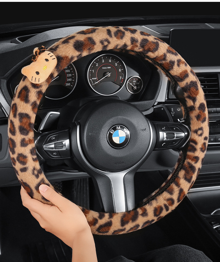 24 년 새로운 레오파드 무늬 플러시 따뜻한 겨울 자동차 스티어링 휠 커버 자동차 액세서리 자동차 액세서리 공장 도매스토어 가기